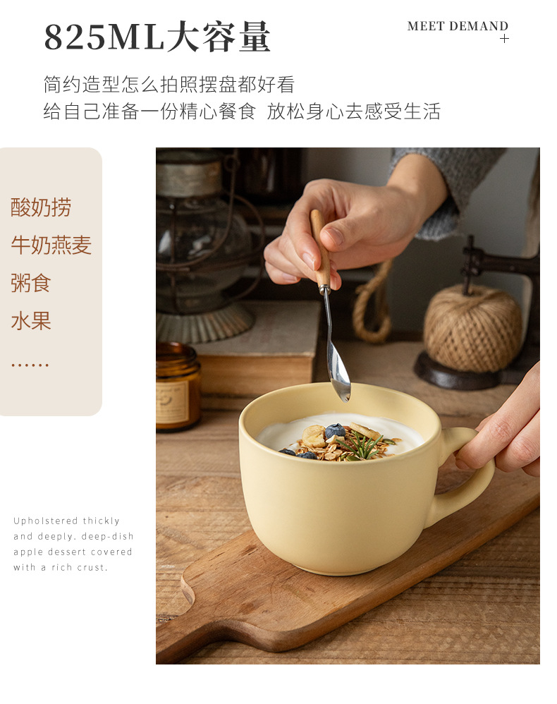 Taza de avena para desayuno de gran capacidad de 825ml Taza de regalo de evento de apertura Taza de cerámica de estilo crema al por mayor
