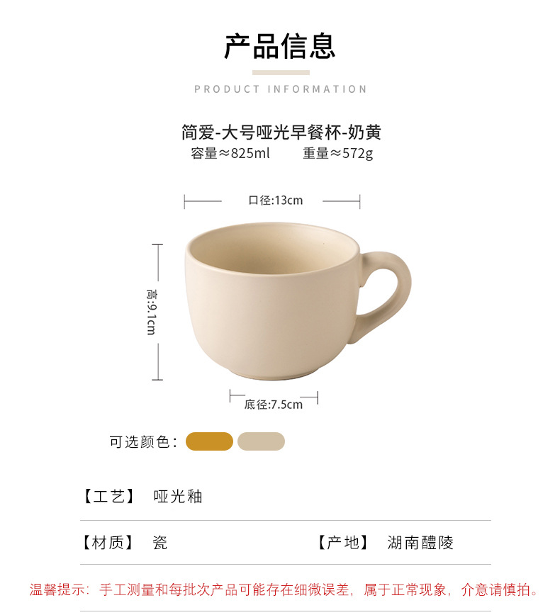 | color | Jane Eye-Taza de desayuno mate grande-Taza de color mixto,Jane Eyre-Taza de desayuno mate grande-Yema de huevo,Jane Eyre-Taza de desayuno mate grande-natillas |