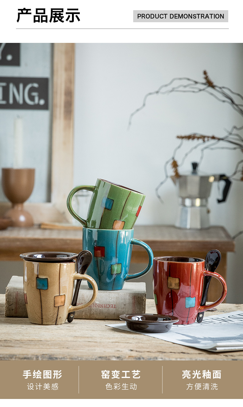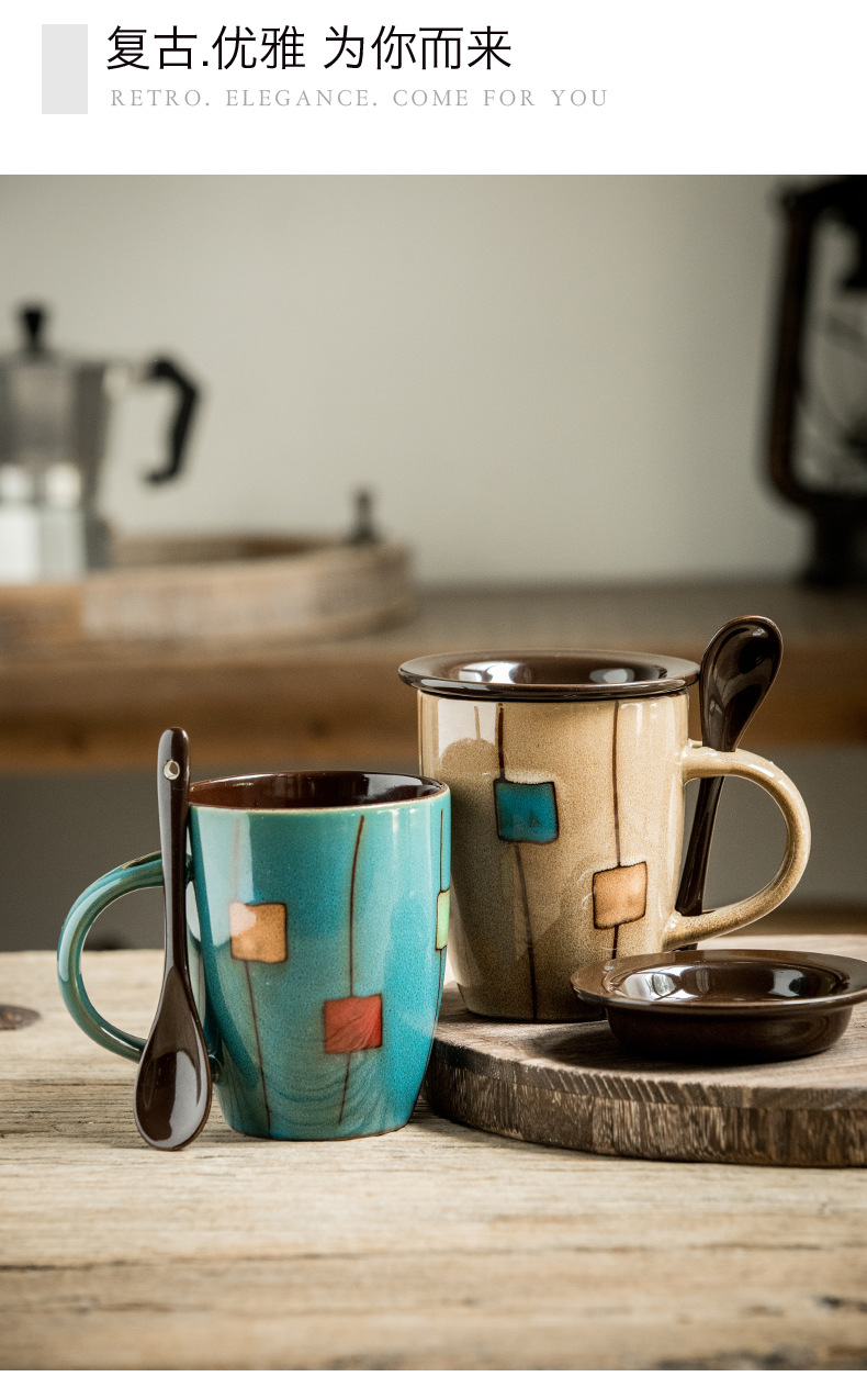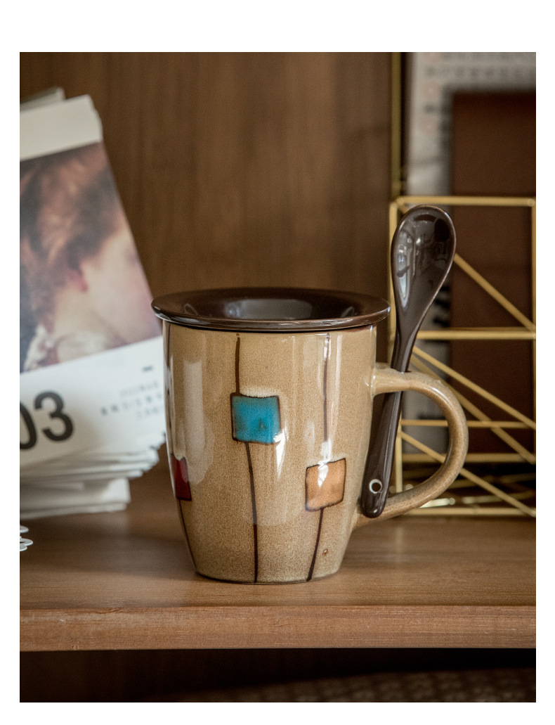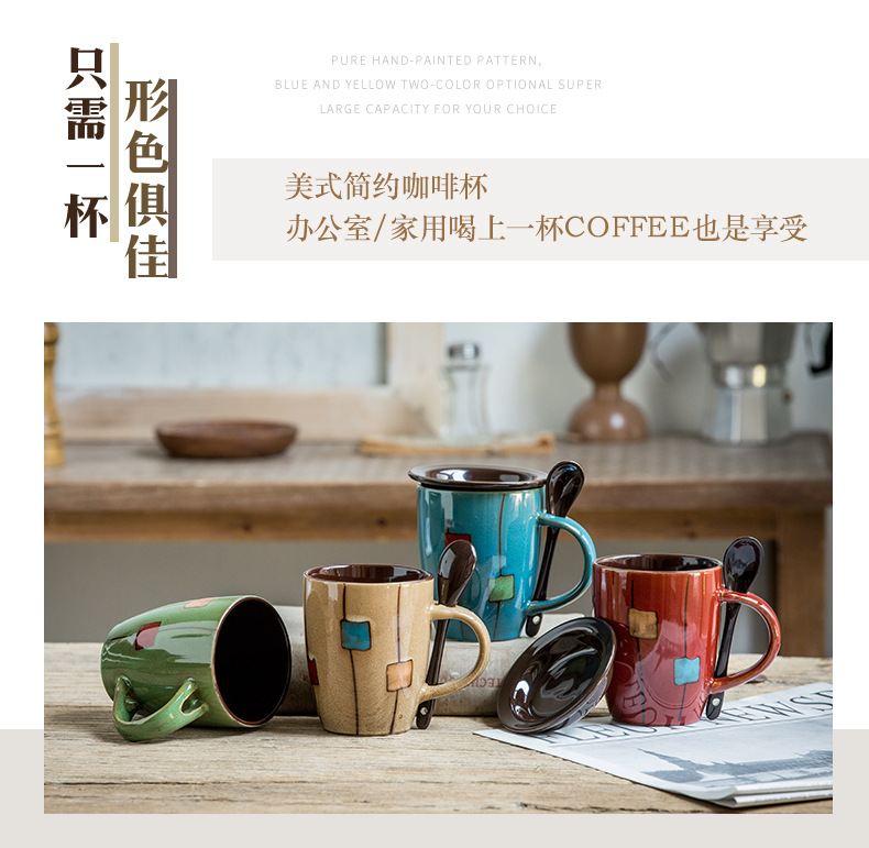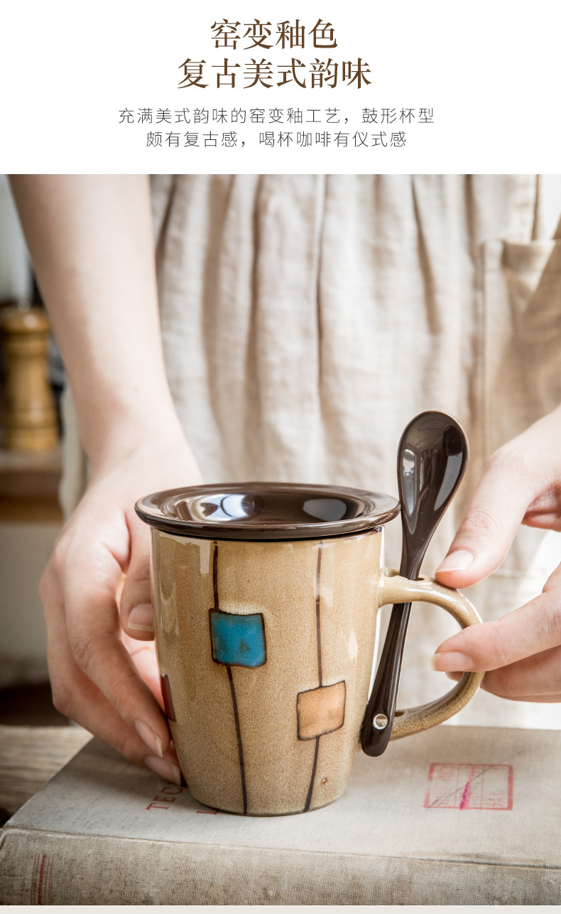 Vintage horno taza de café con tapa cuchara personalizada Taza de cerámica Oficina taza de agua regalo del hogar taza de tambor