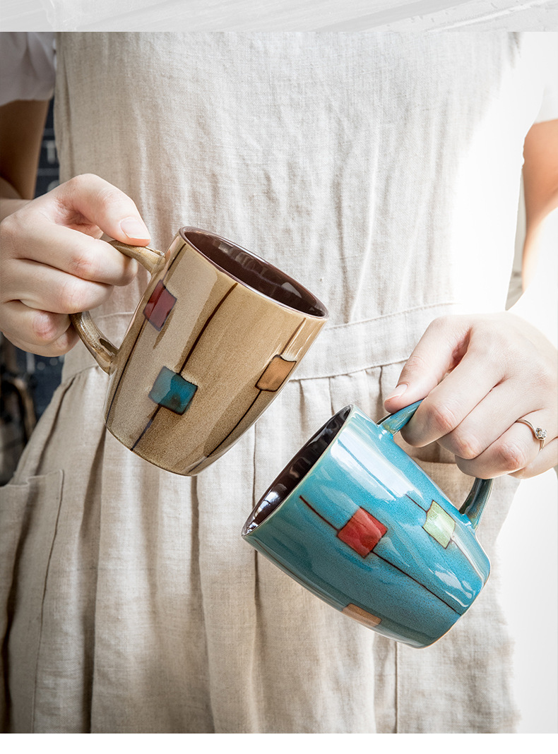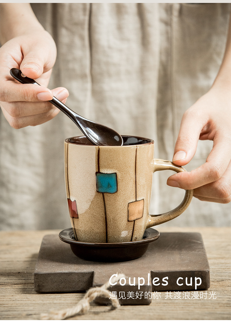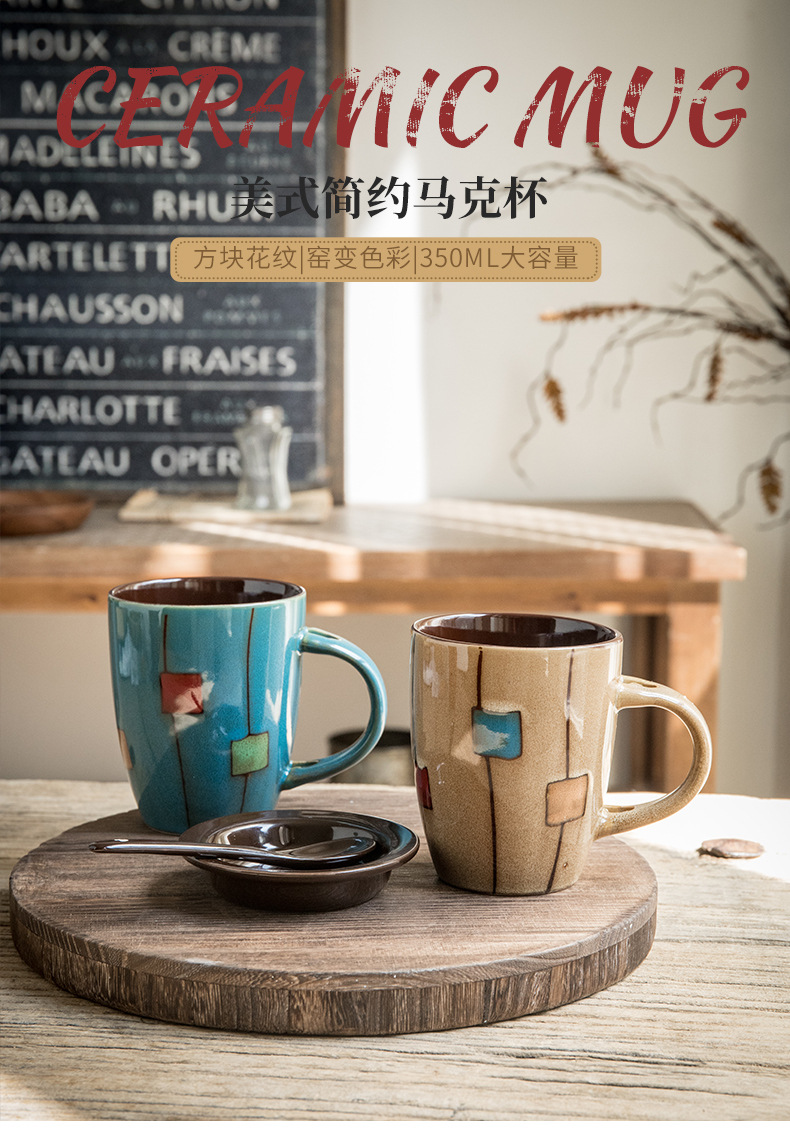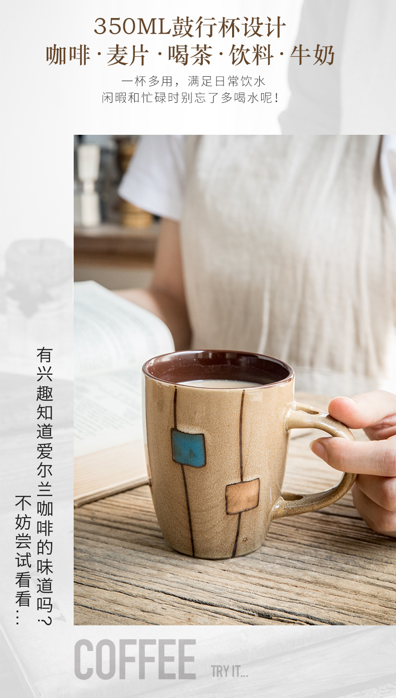 Vintage horno taza de café con tapa cuchara personalizada Taza de cerámica Oficina taza de agua regalo del hogar taza de tambor