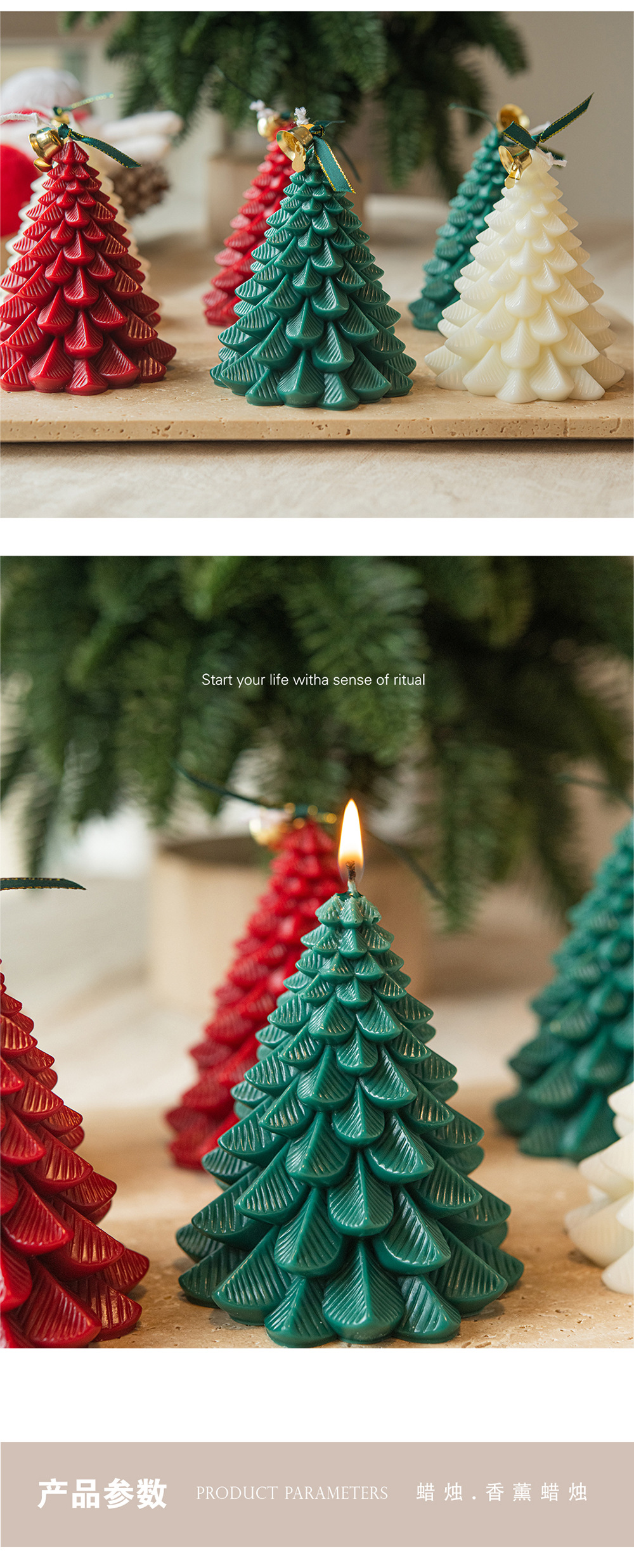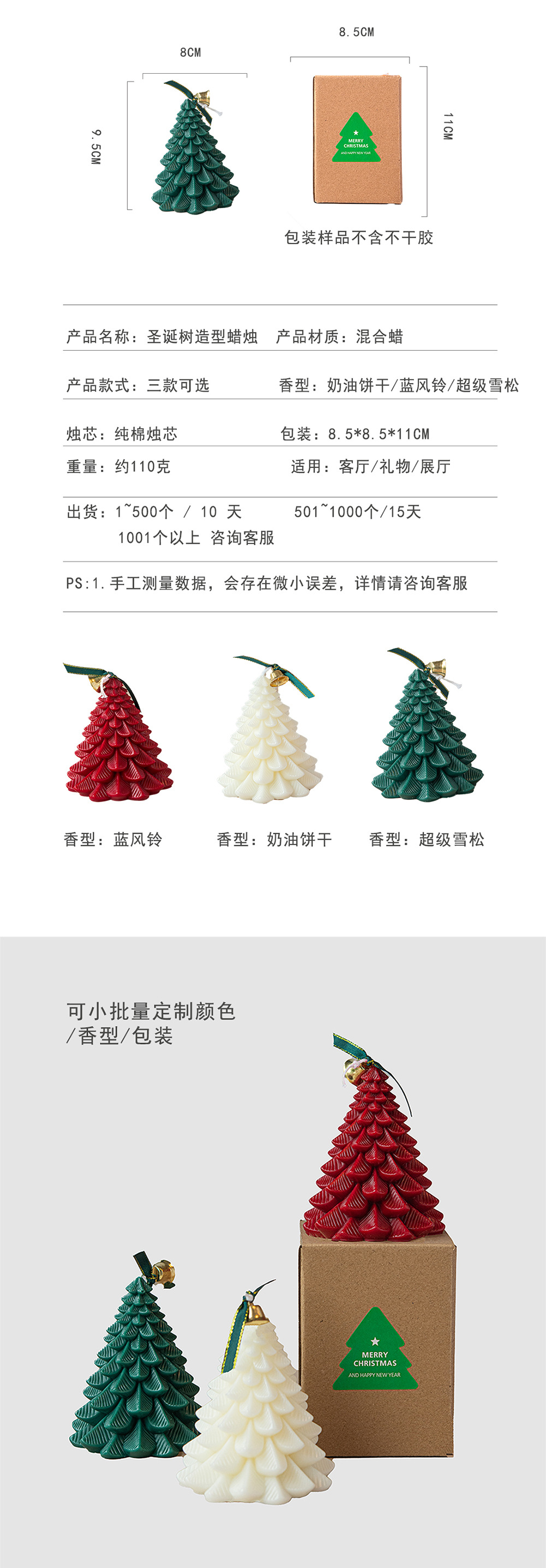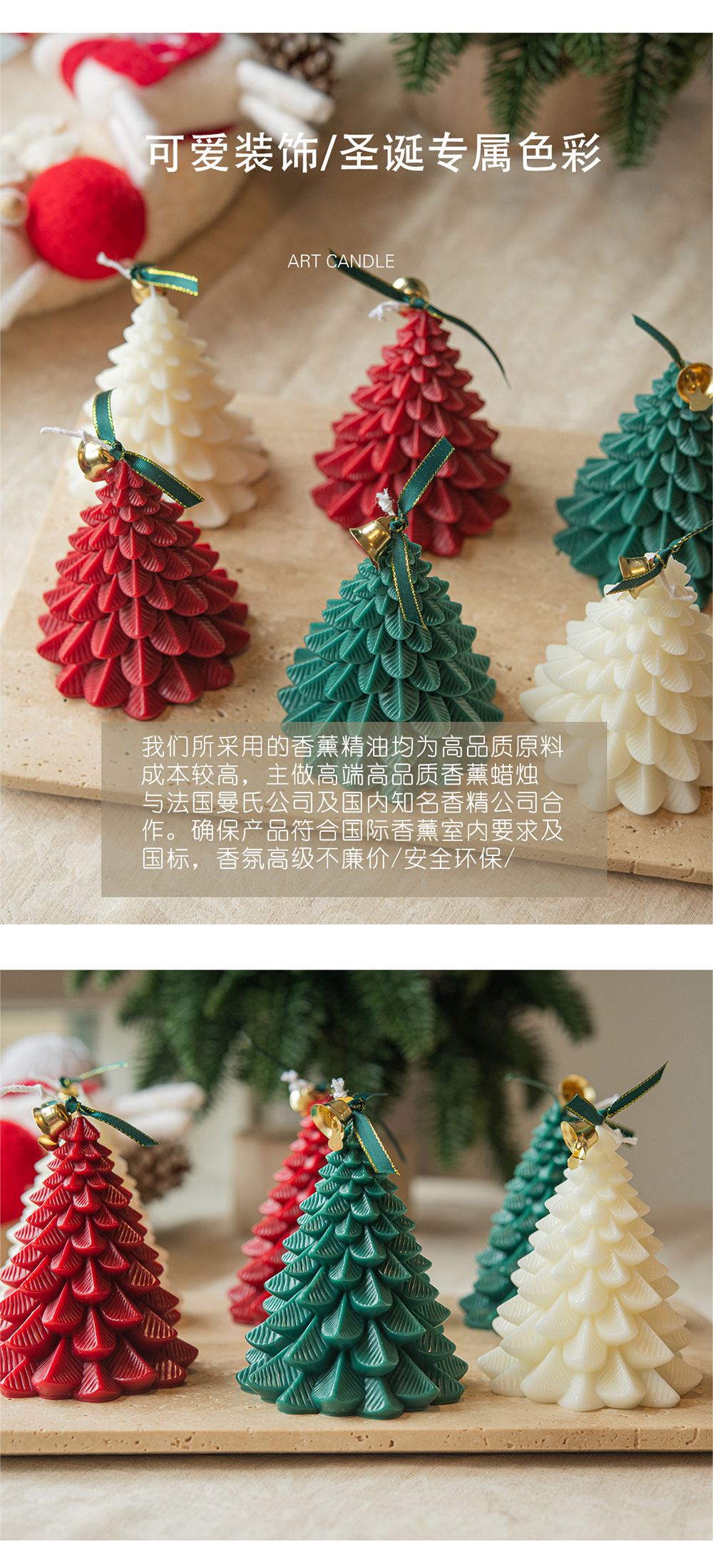 Forma de árbol de Navidad vela aromaterapia rojo blanco verde regalo al por mayor venta caliente regalo de mano decoración hecha a mano libre de humo cera