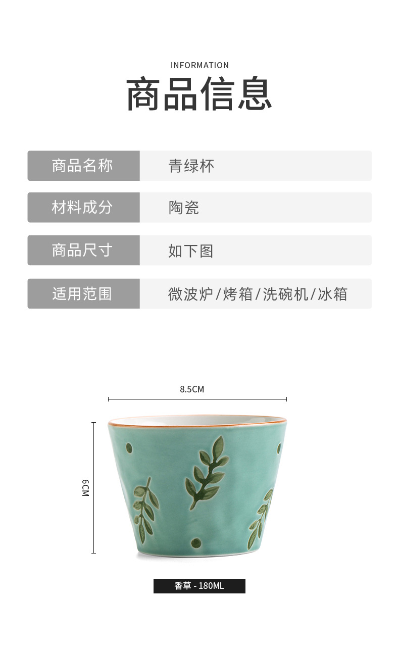 | Colores | Taza verde-Fresa,Vaso verde-vainilla,Taza verde-cereza,Taza verde-Flor amarilla,Copa verde-flor de cerezo,Copa verde-Clover |