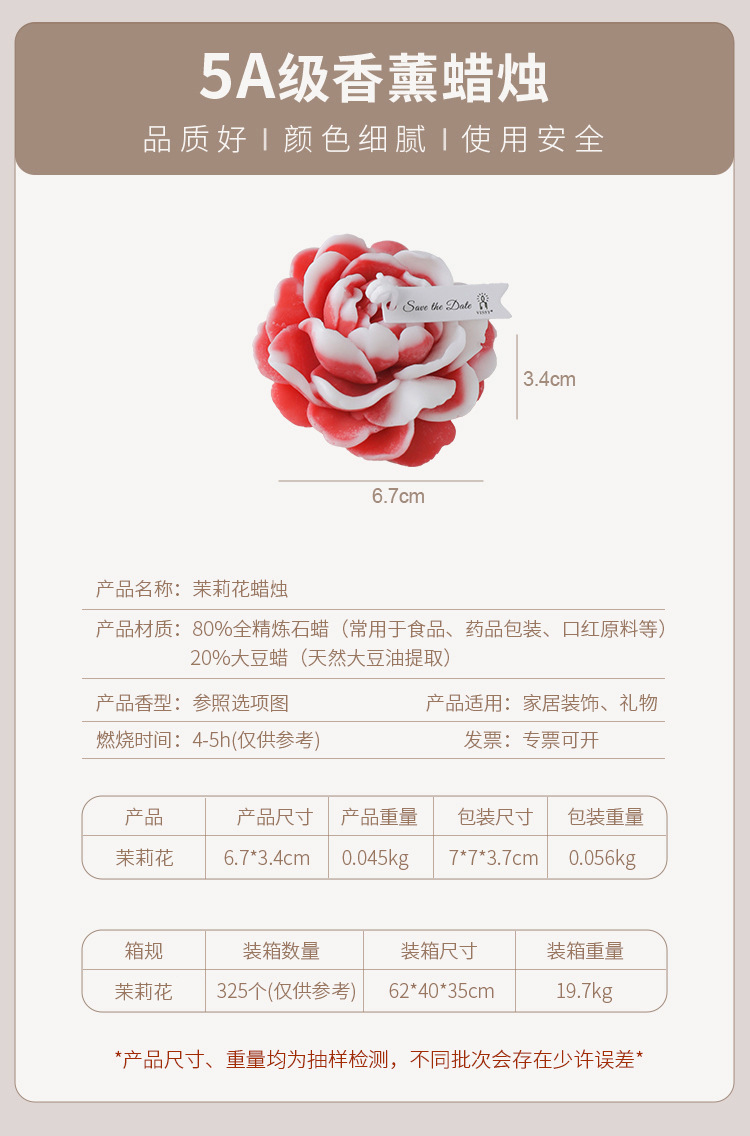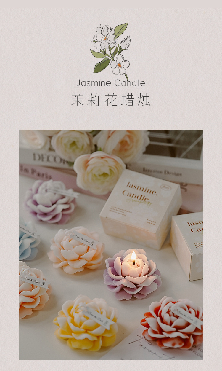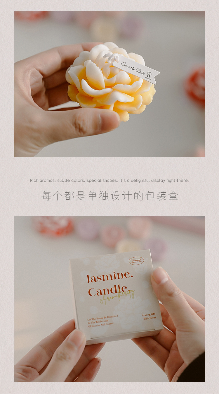 Vela de aromaterapia de jazmín Día de la madre Regalos pequeños Regalos de regalo de fragancia creativa Vela de modelado