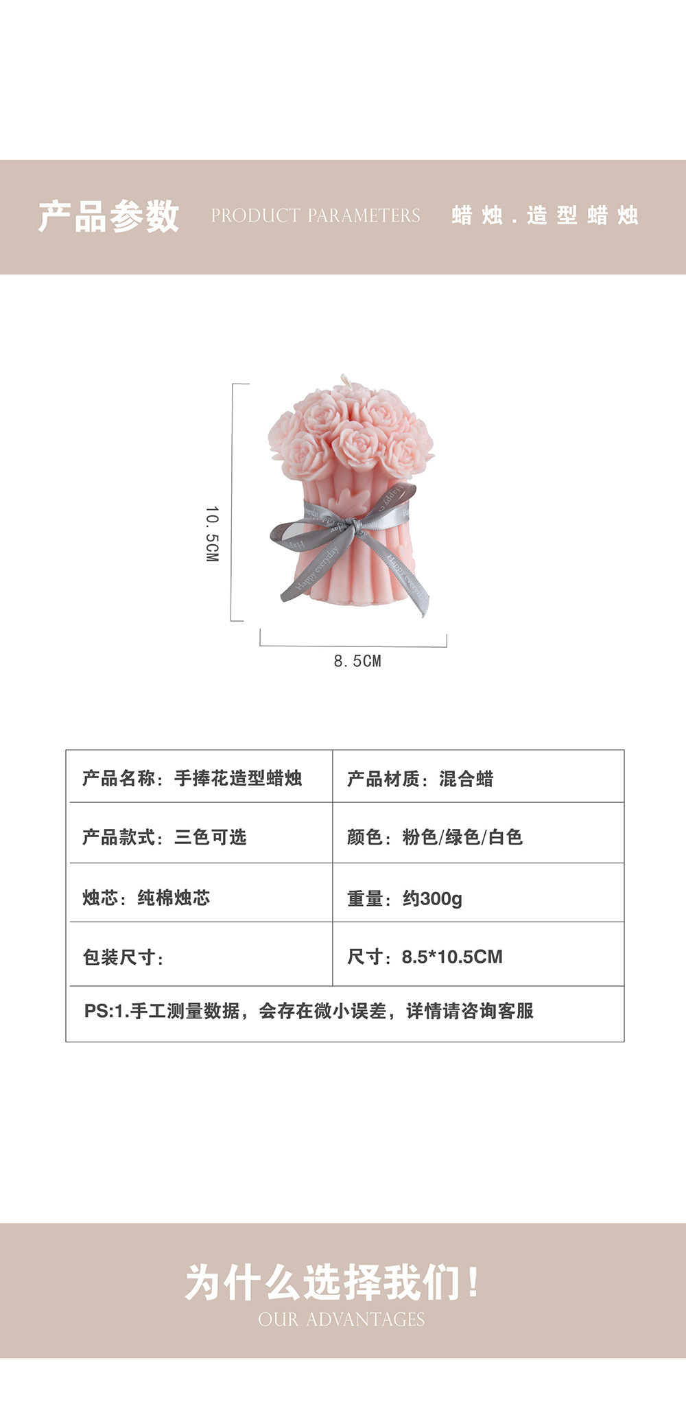 | Color | Rosa sin fragancia,Verde sin fragancia,Blanco sin fragancia,Rosa con fragancia,Verde con fragancia,Blanco con fragancia |