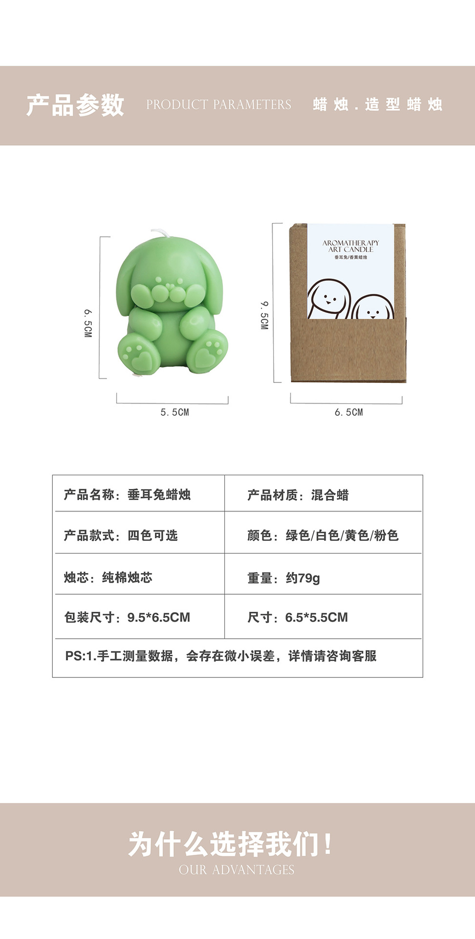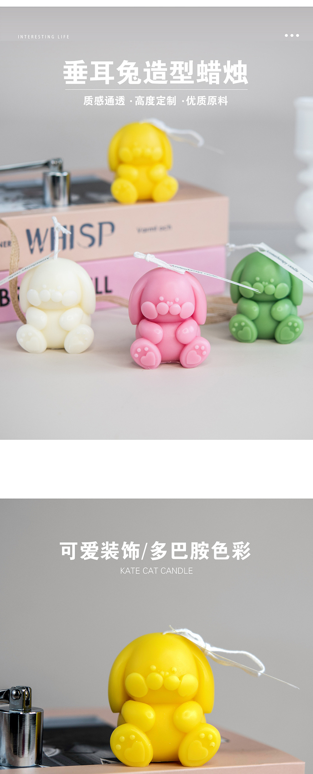 Diversión de los niños lindos oído forma de conejo vela mano regalo de los niños decoración del hogar decoración venta caliente al por mayor