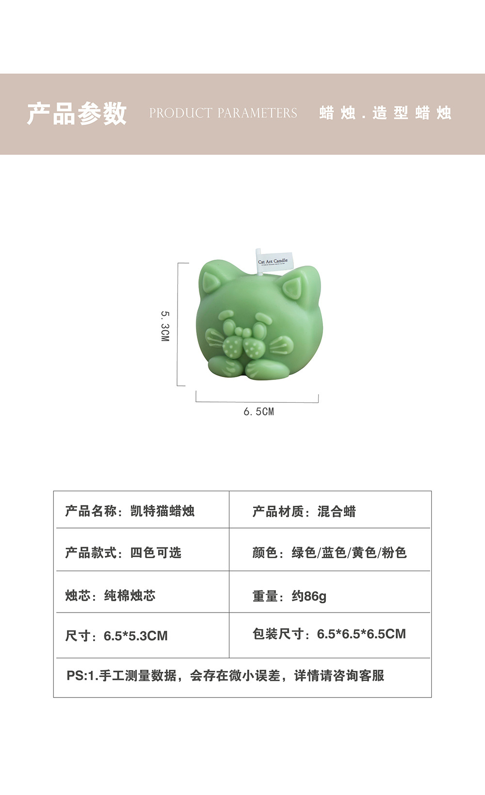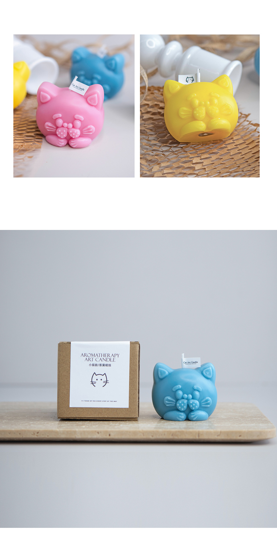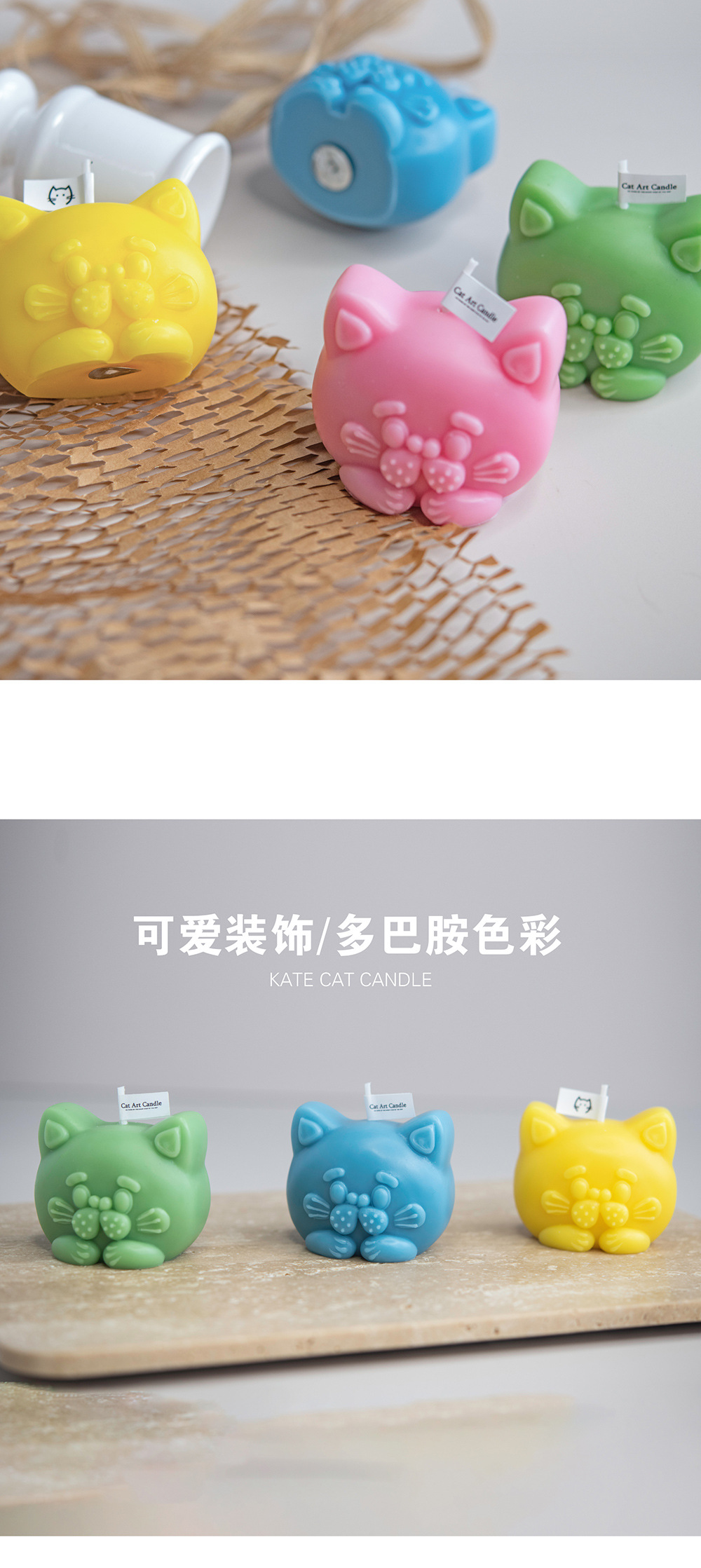 Venta caliente kate en forma de gato vela aromaterapia decoración del hogar regalo de la mano de los niños regalo de cumpleaños al por mayor rojo blanco azul verde