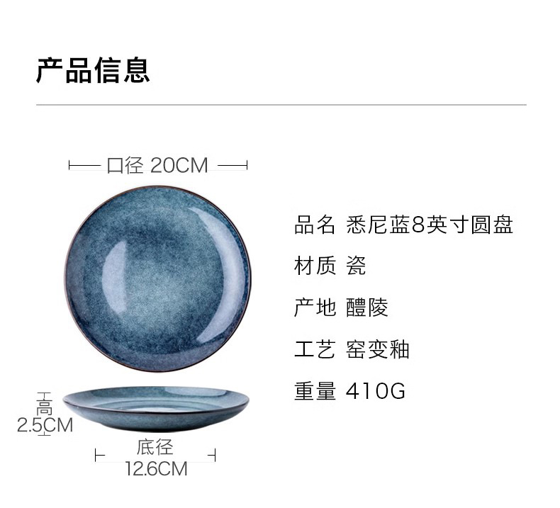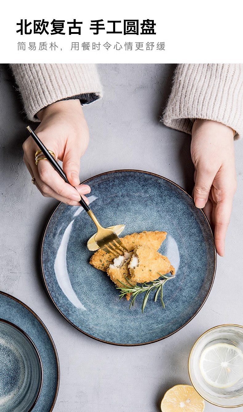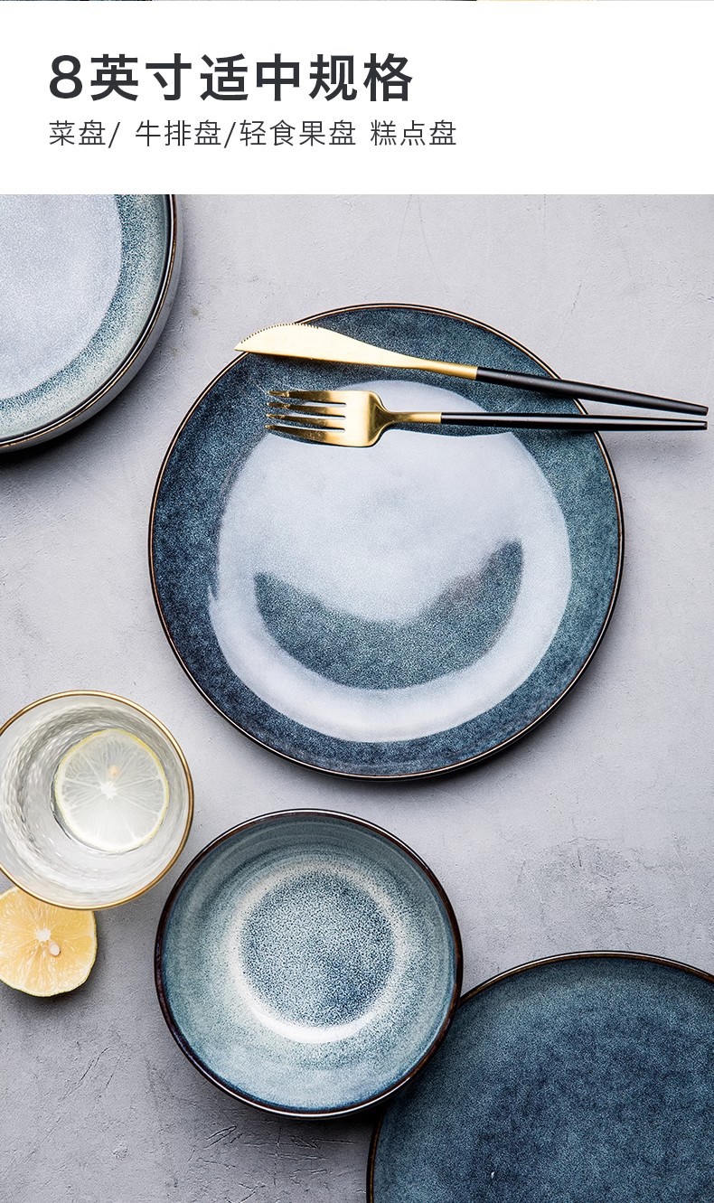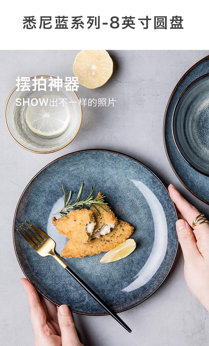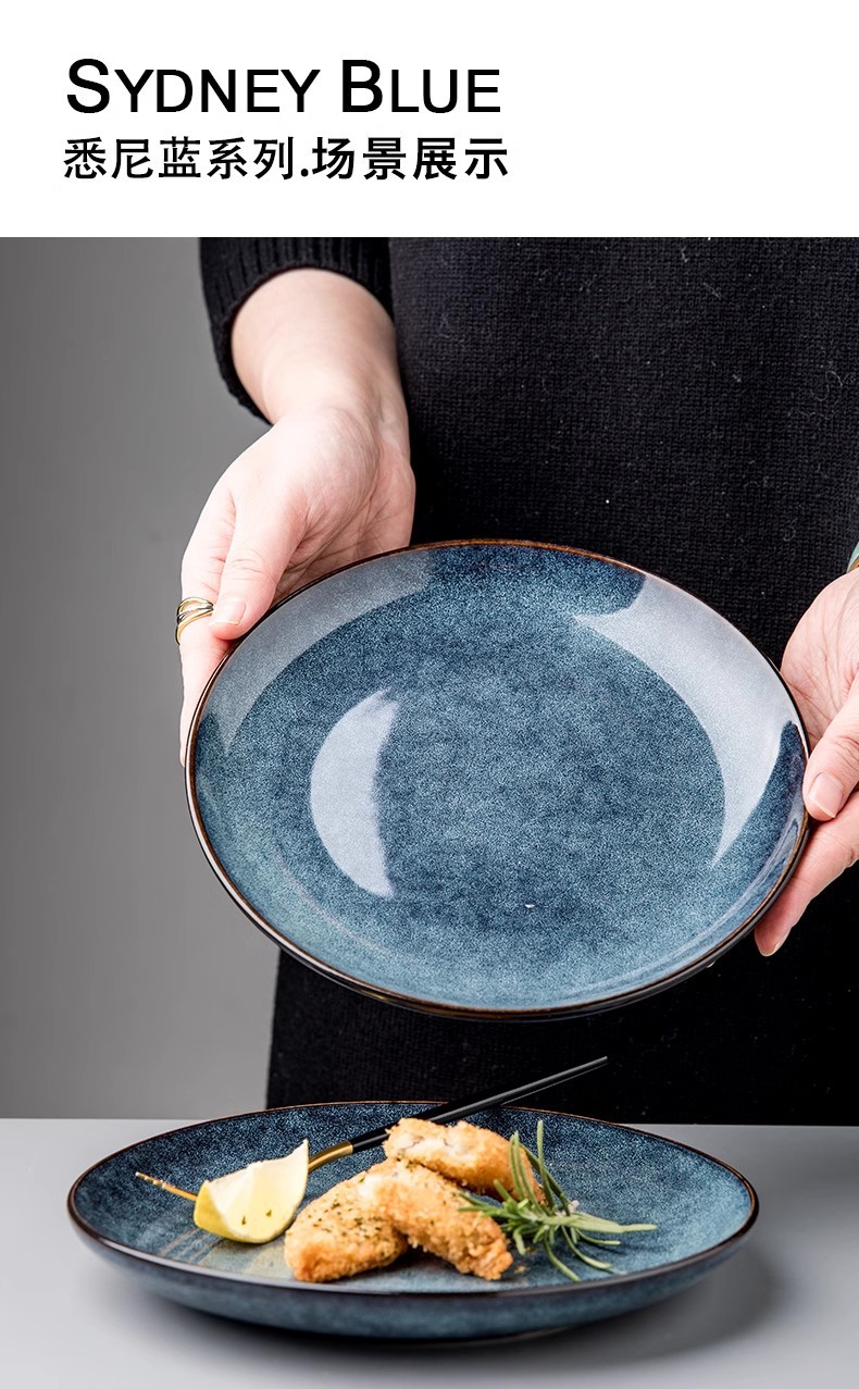 Plato azul de Sydney, plato de cerámica plana, plato de platos superficiales, plato de filete retro, plato de comida occidental, exportación transfronteriza