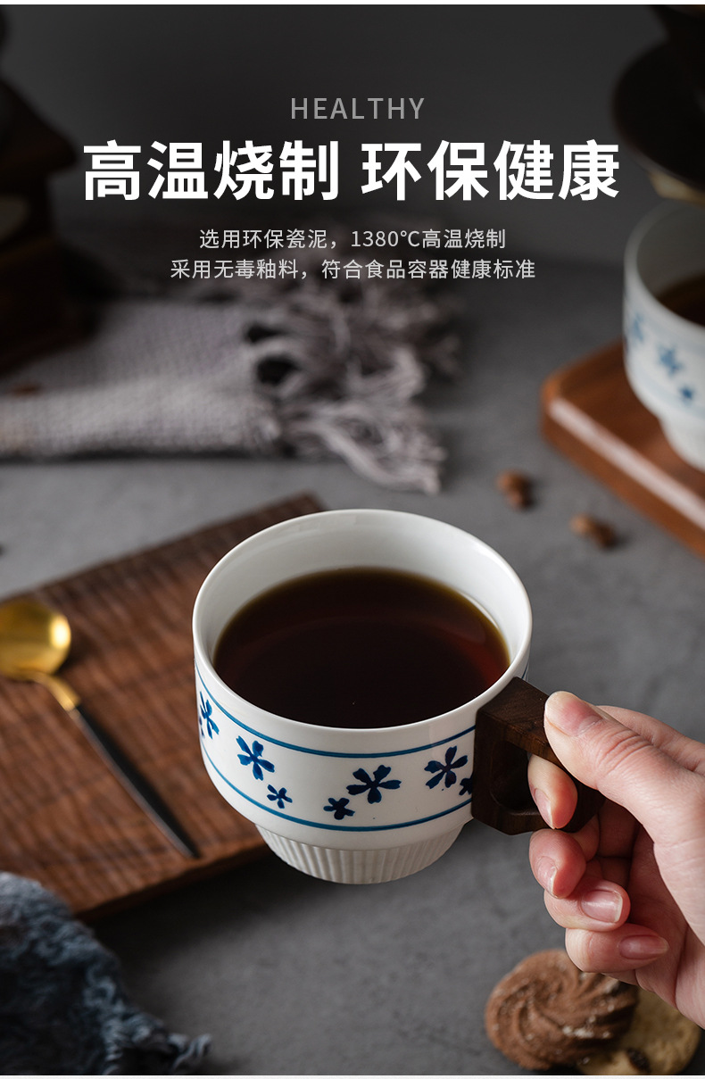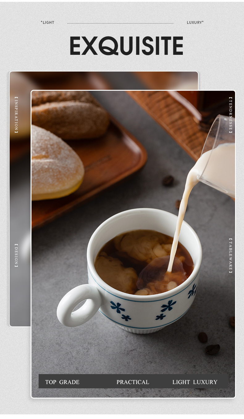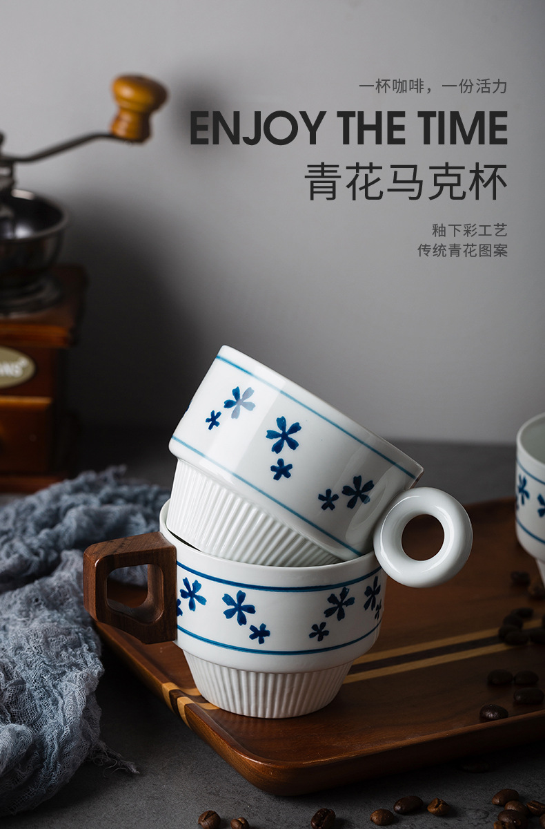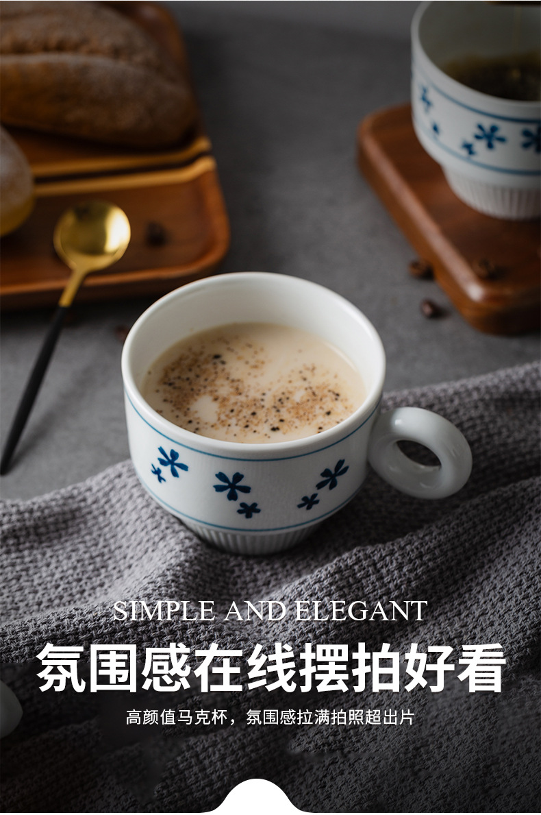 Taza antigua azul y blanco Cerámica japonesa Orejas colgantes retro Desayuno americano Taza de café Oficina masculina y femenina de alto valor
