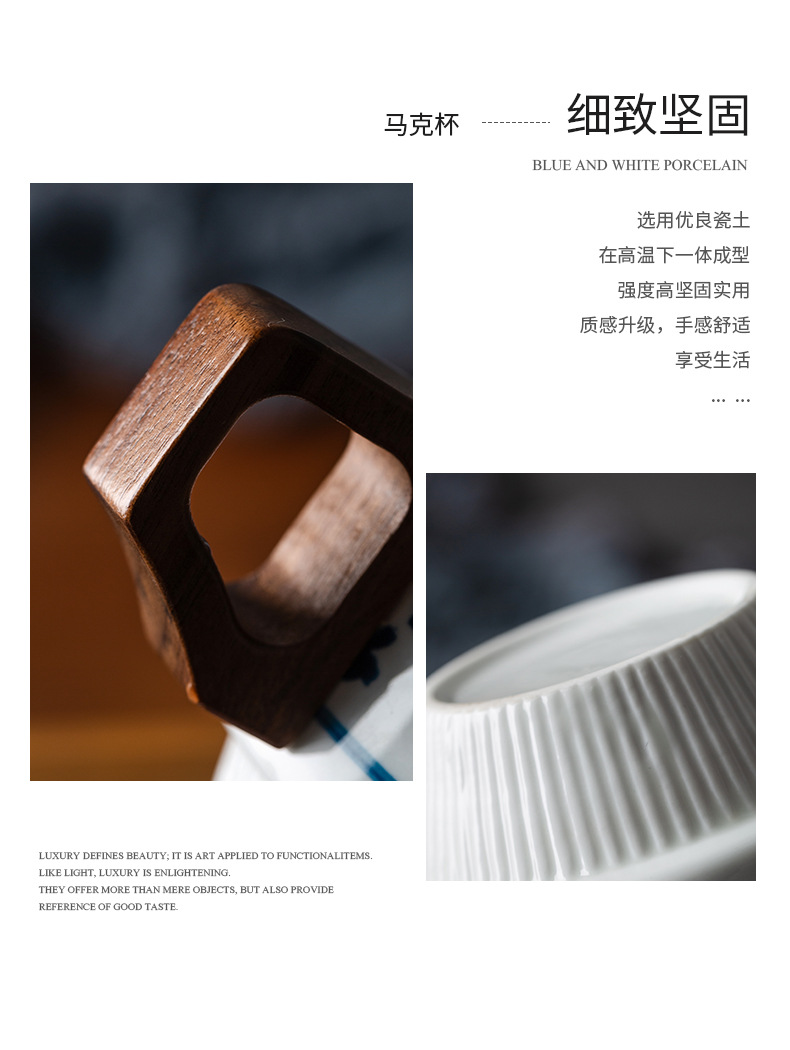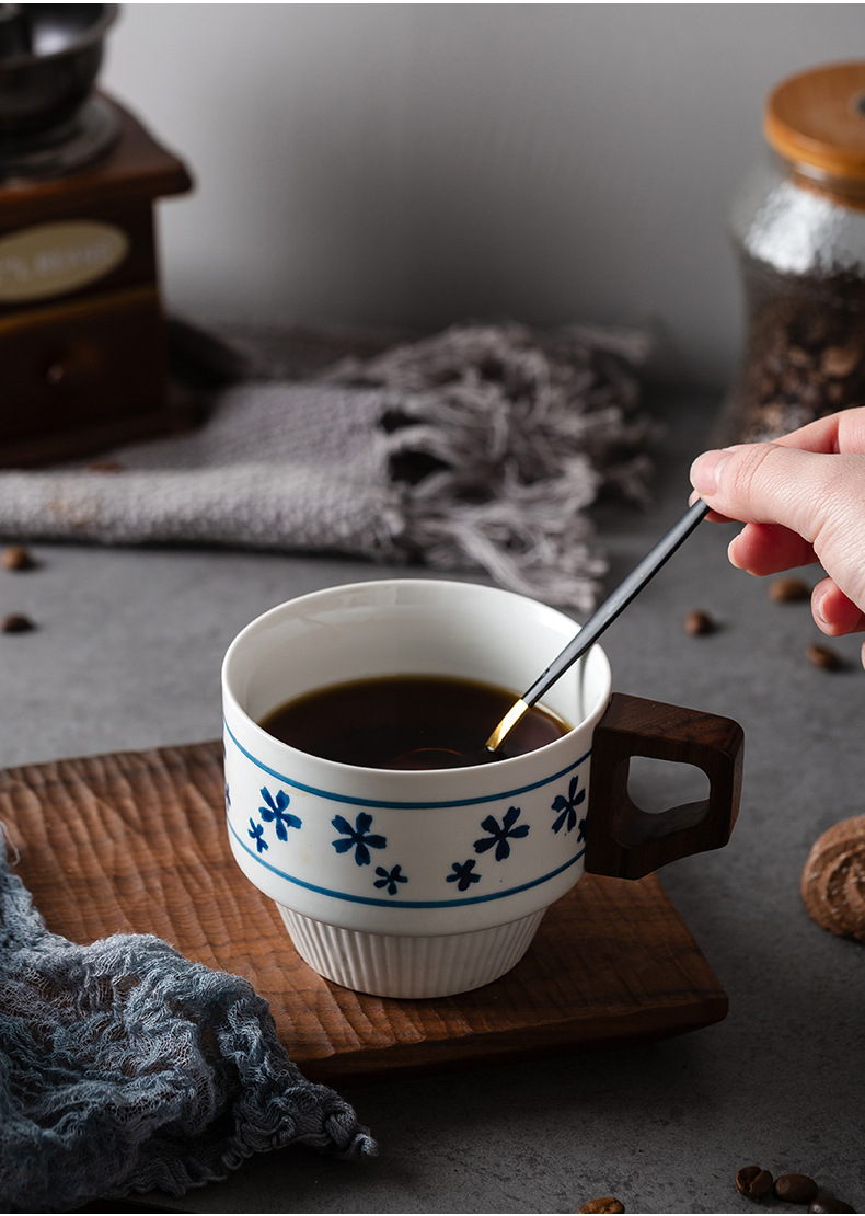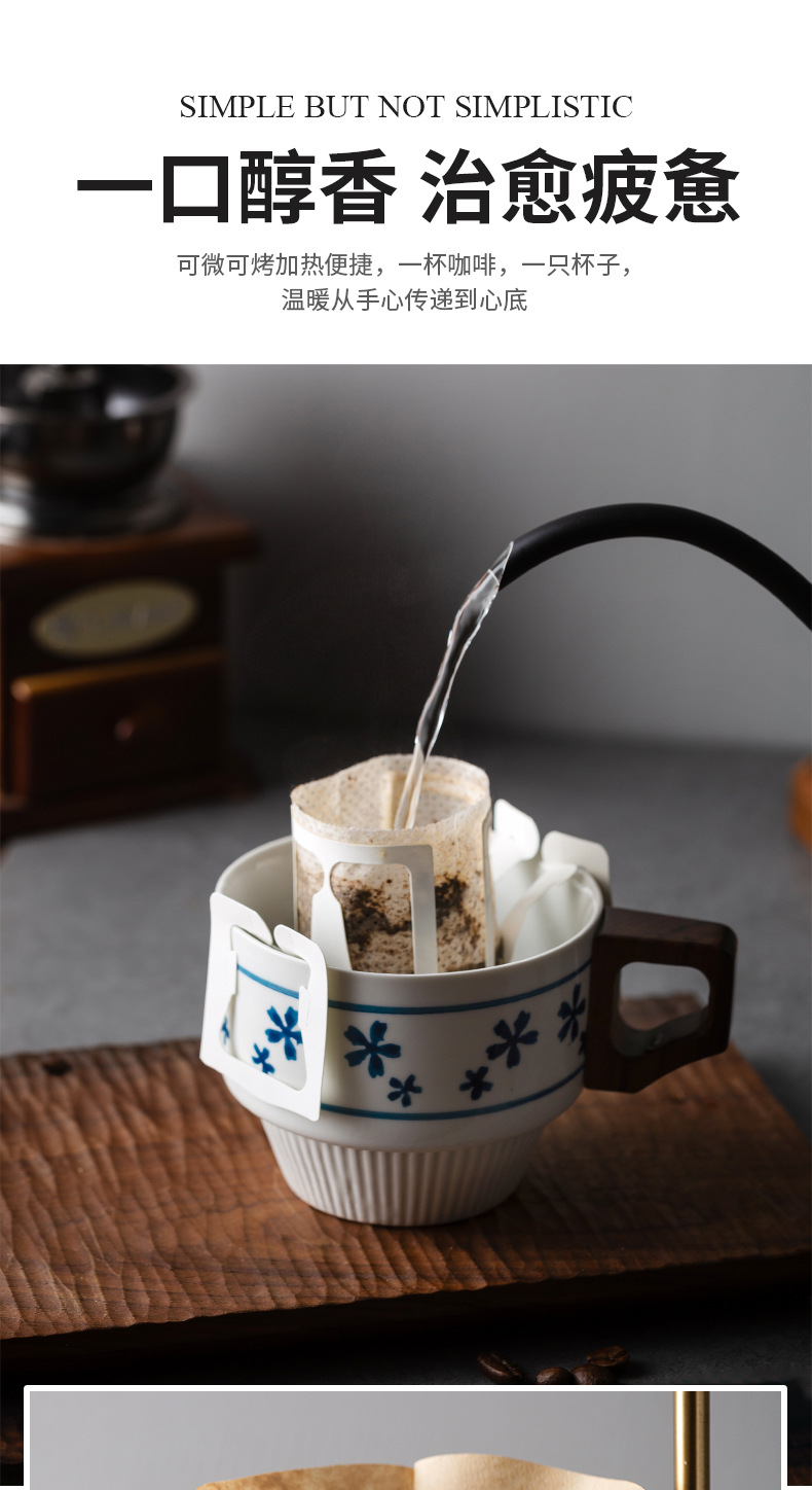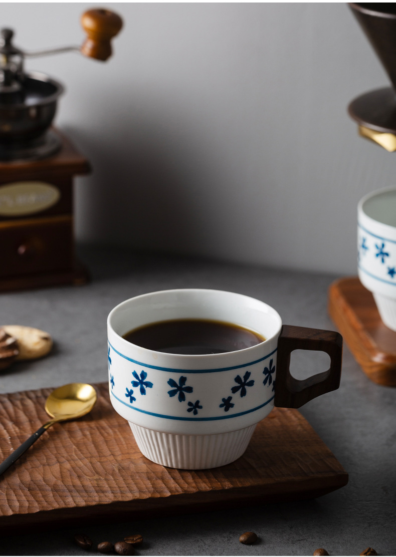 Taza antigua azul y blanco Cerámica japonesa Orejas colgantes retro Desayuno americano Taza de café Oficina masculina y femenina de alto valor