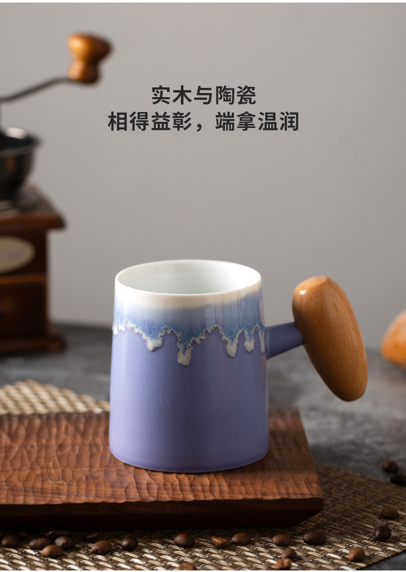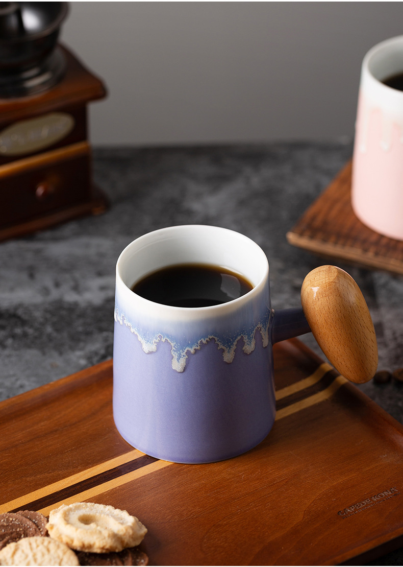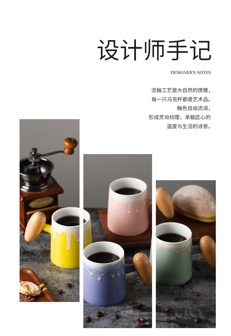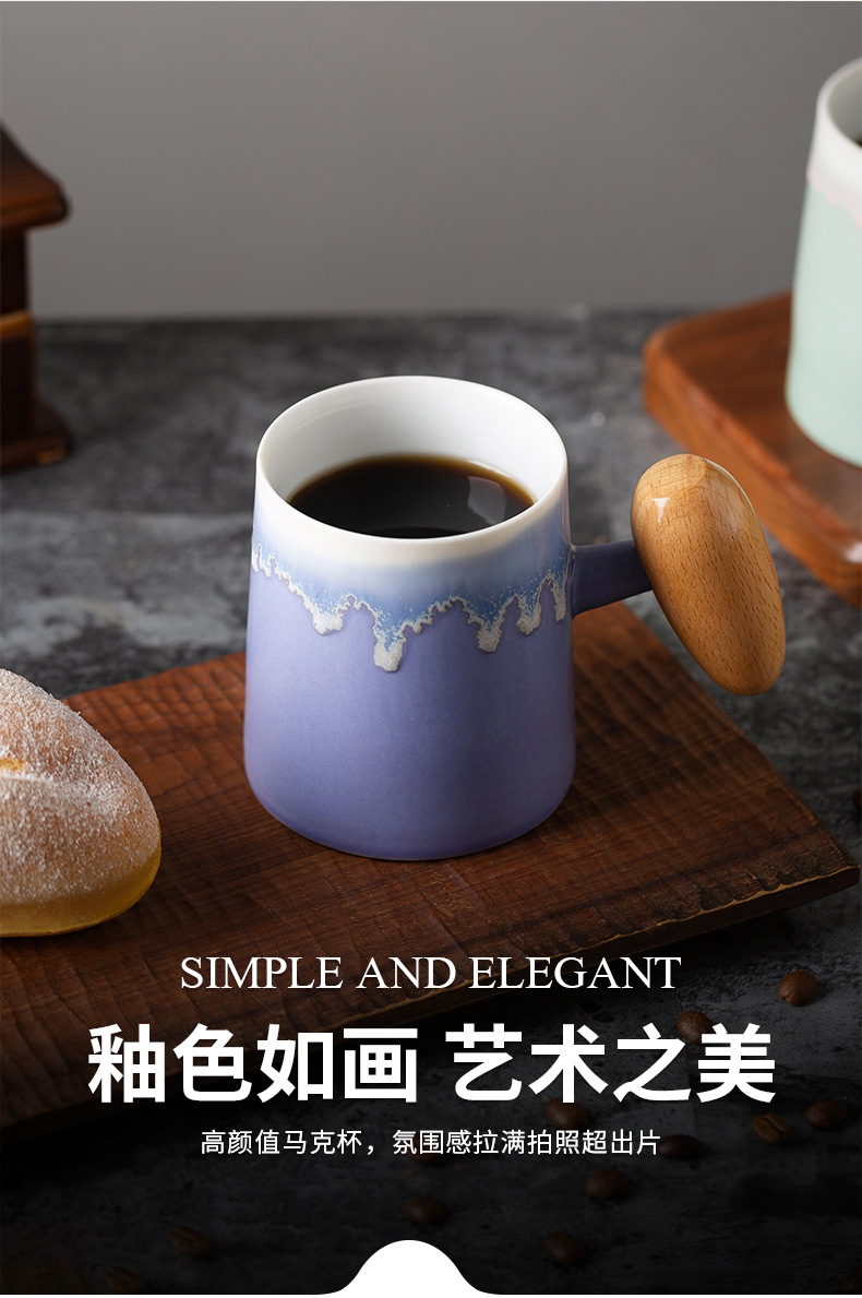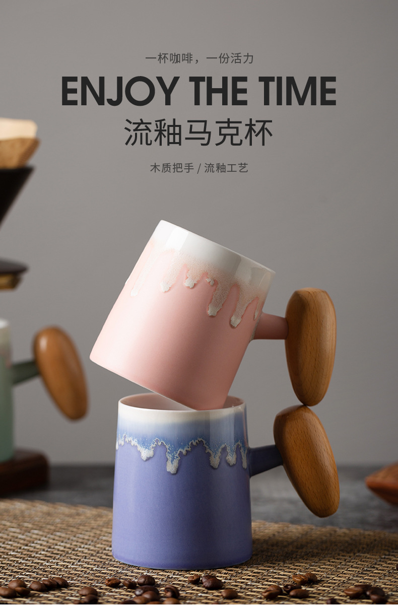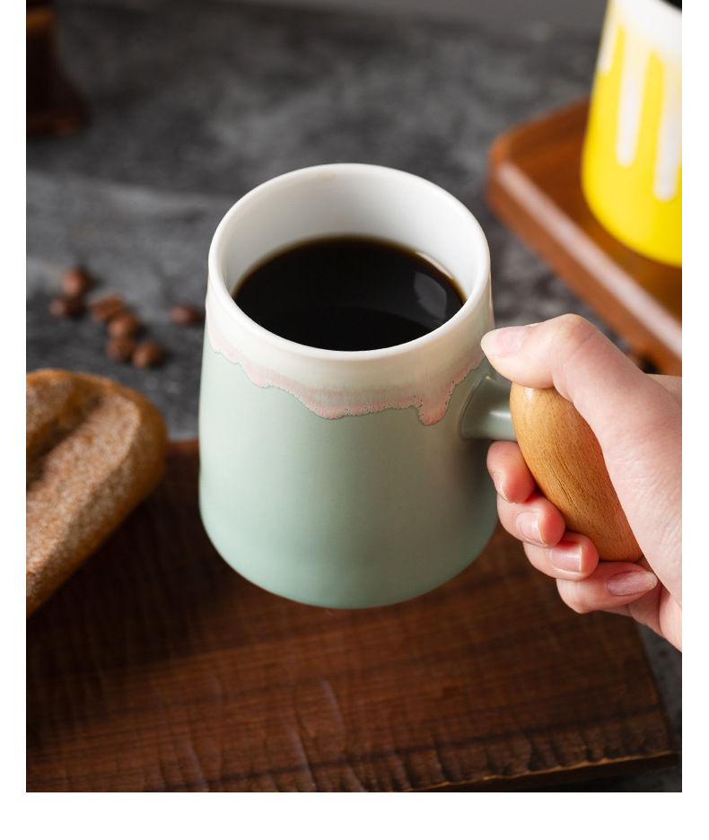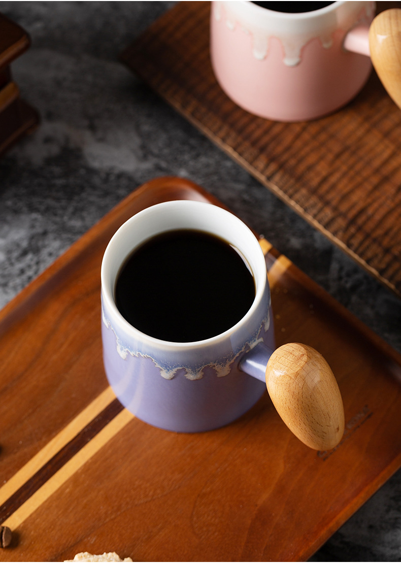 Taza de café con asa de madera retro minimalista nórdico, microondas de cerámica, taza de desayuno, taza de leche, taza, par de tazas