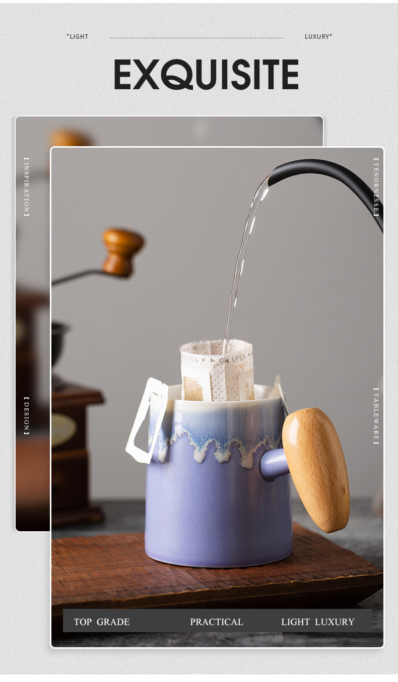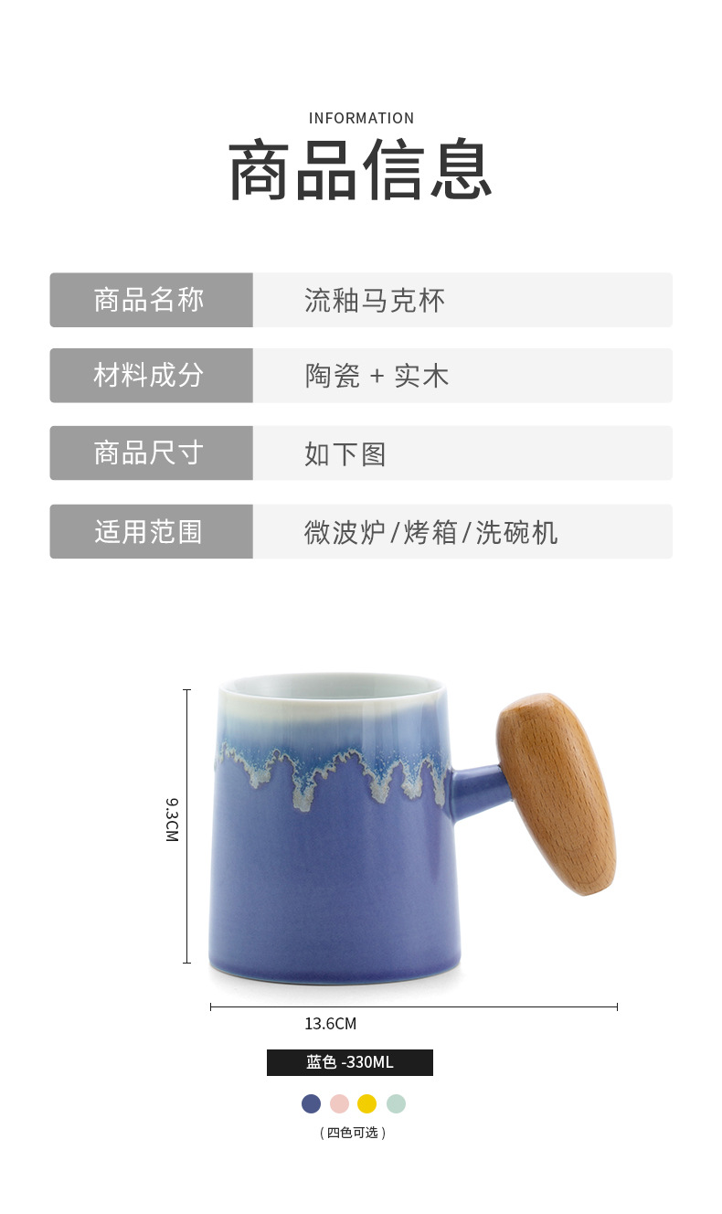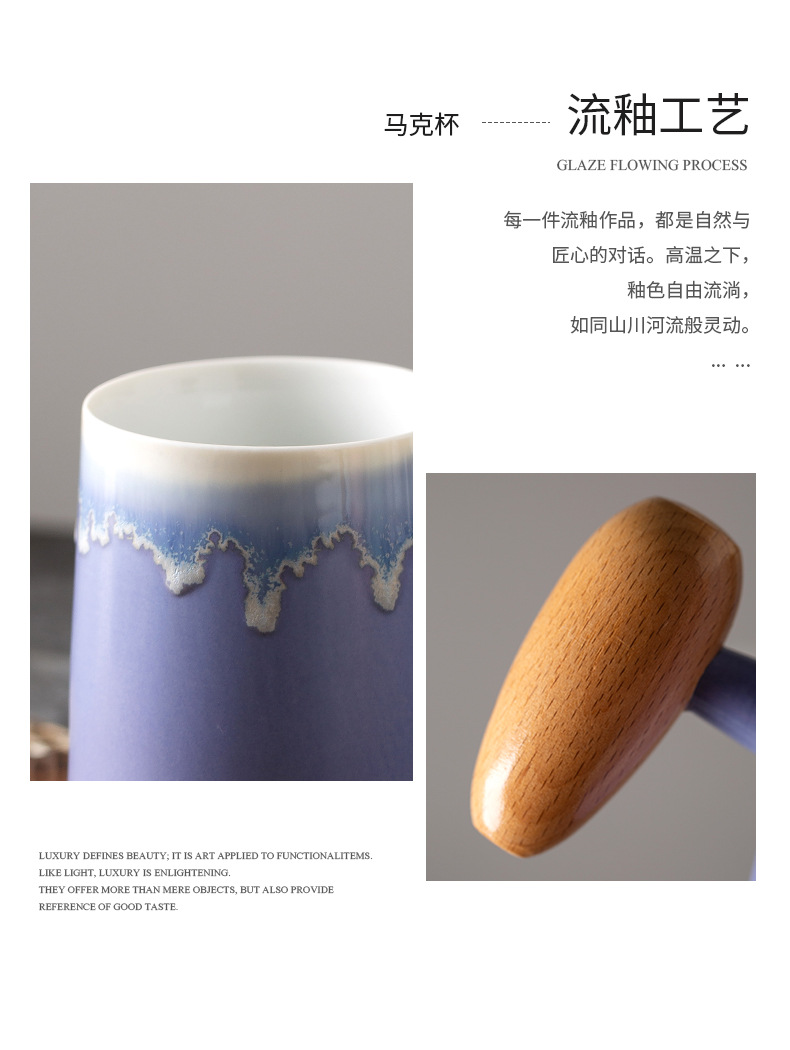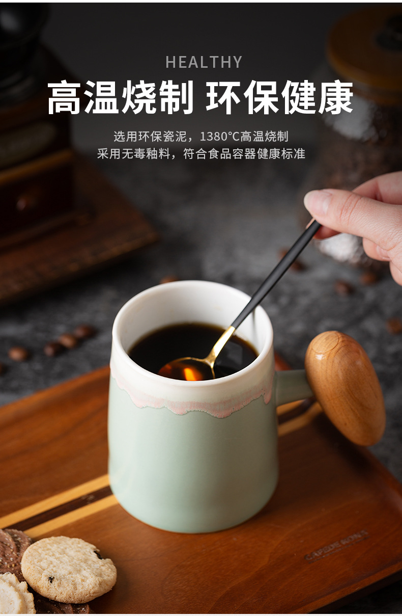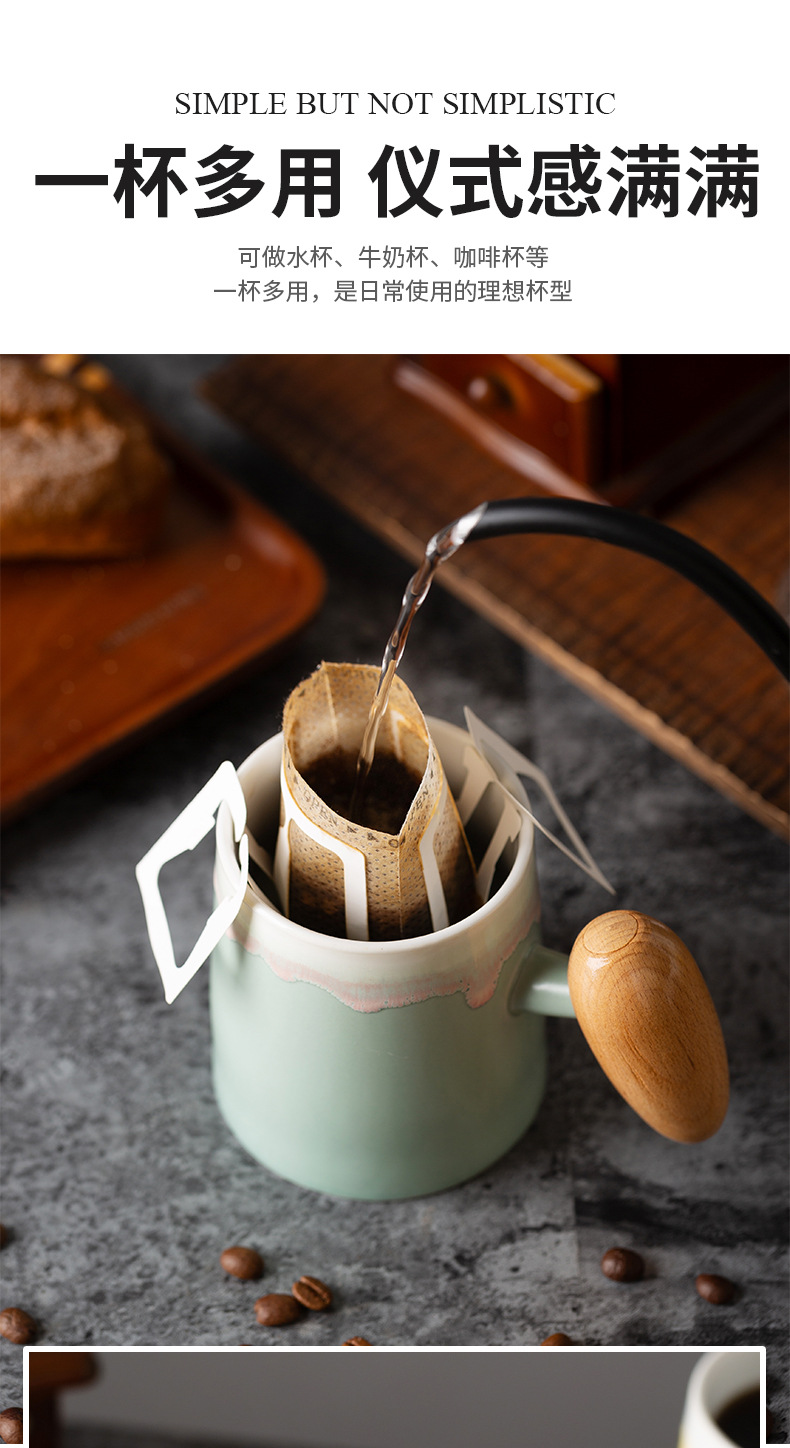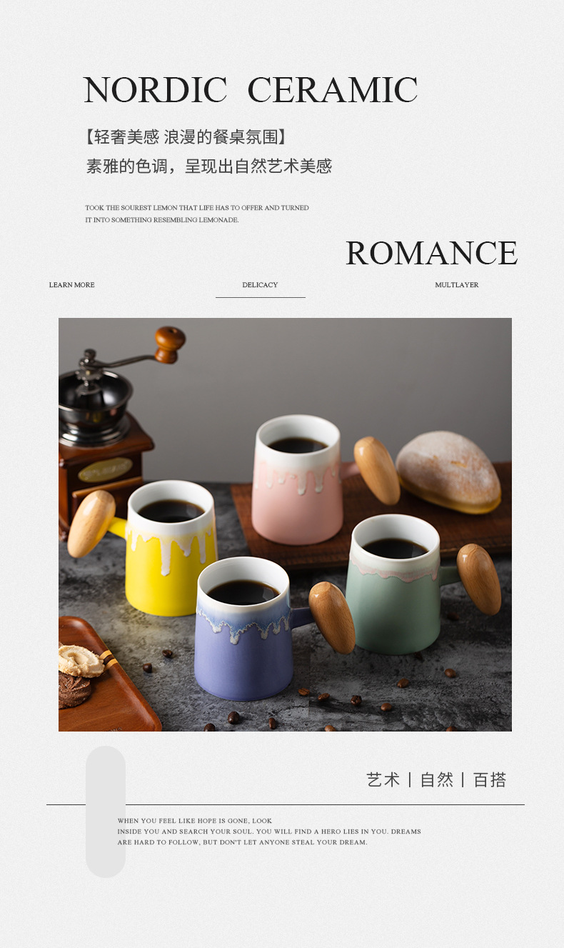 Taza de café con asa de madera retro minimalista nórdico, microondas de cerámica, taza de desayuno, taza de leche, taza, par de tazas