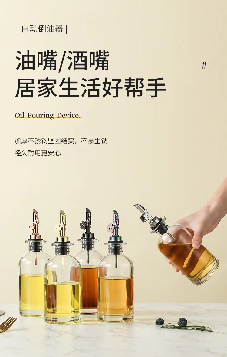 Creativo 304 de acero inoxidable de apertura automática y cierre de la máquina de vertido de aceite tapón de la botella de vino salsa vinagre tapón de la botella Enengrasador boquilla