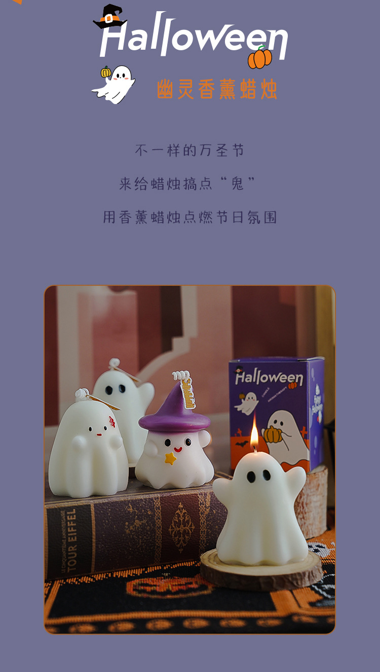 Velas de Halloween fantasmas aromáticas atmósfera sensación de regalo de mano vela creativa transfronteriza hecha a mano perfume cera de modelado