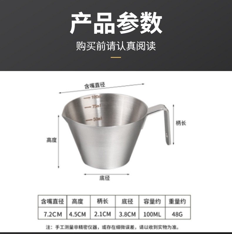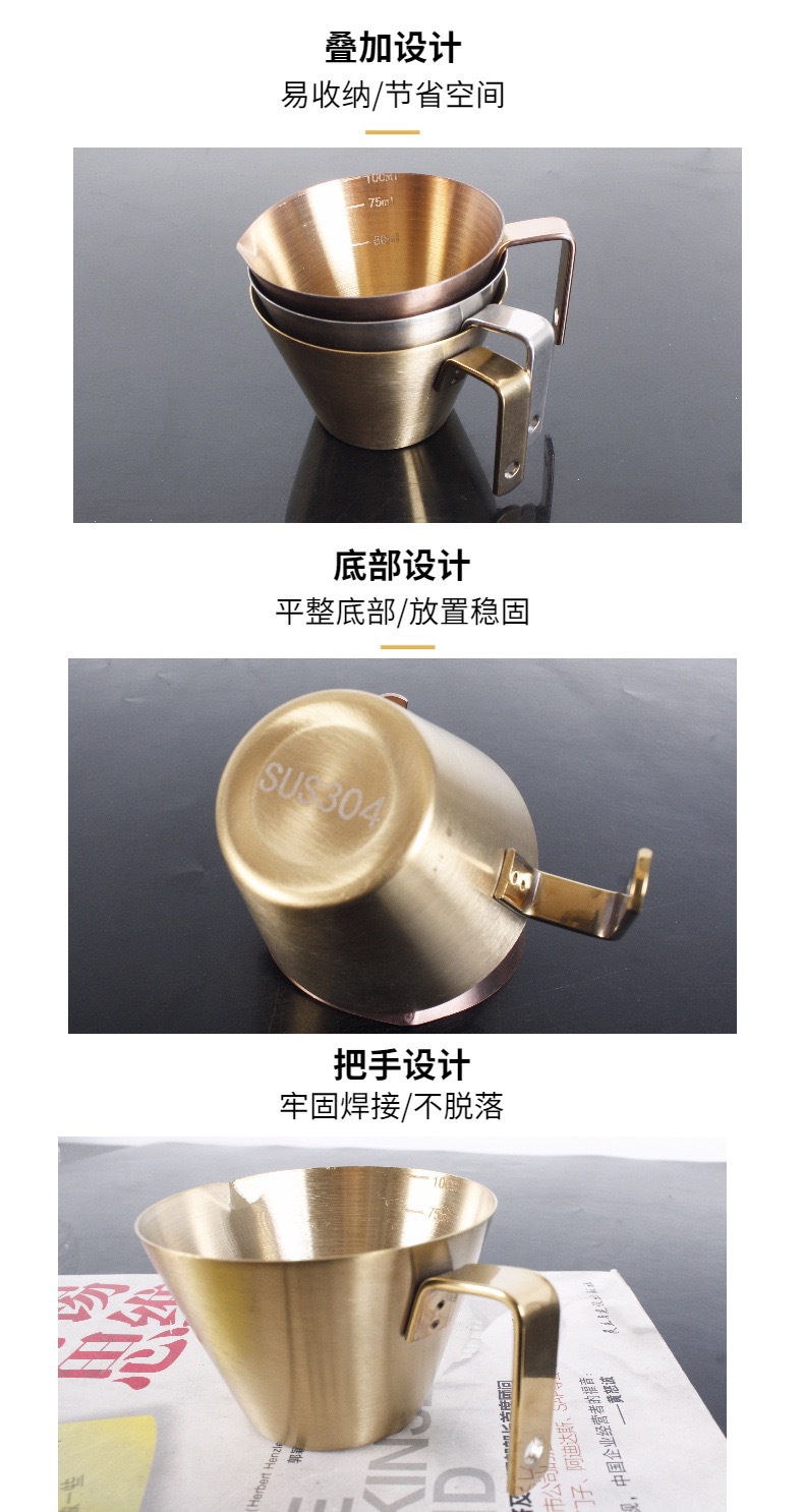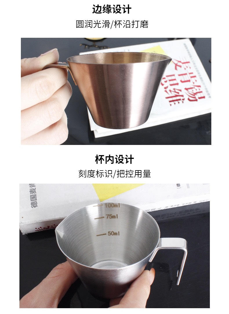 Taza de extracción de café de acero inoxidable 304 transfronteriza con escala Taza de espresso italiana Taza de onza de 100ml