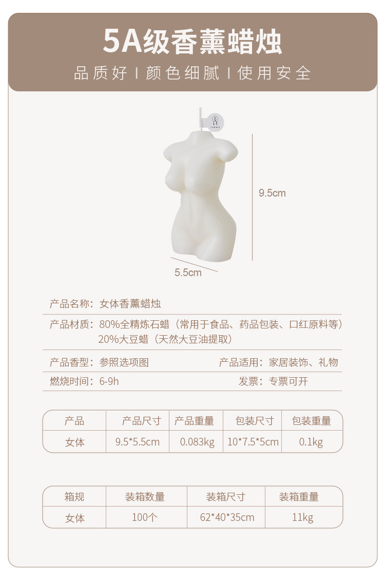 Cuerpo de mujer creativo Regalo de alta gama Escena de fragancia Decoración Decoración Estilo hecho a mano Velas de aromaterapia transfronterizas al por mayor