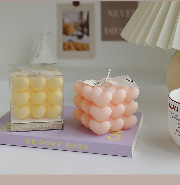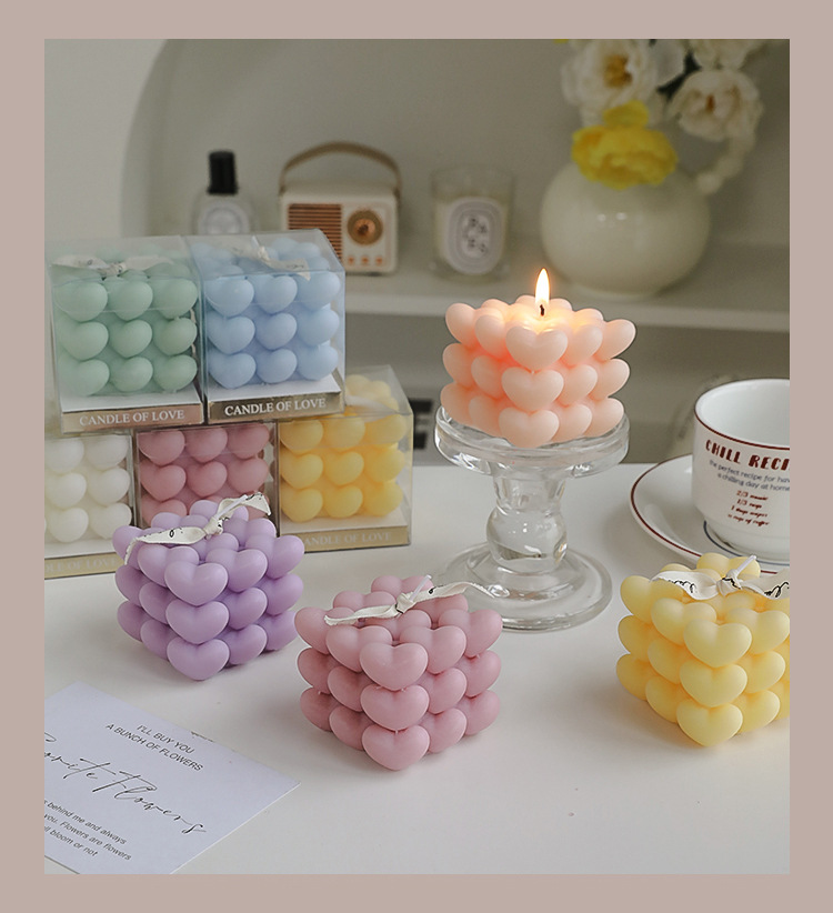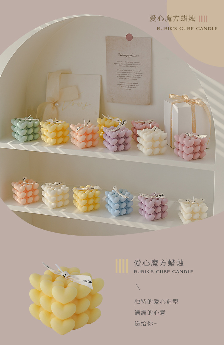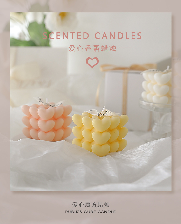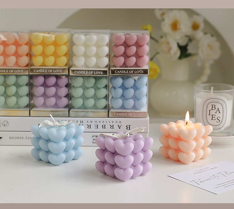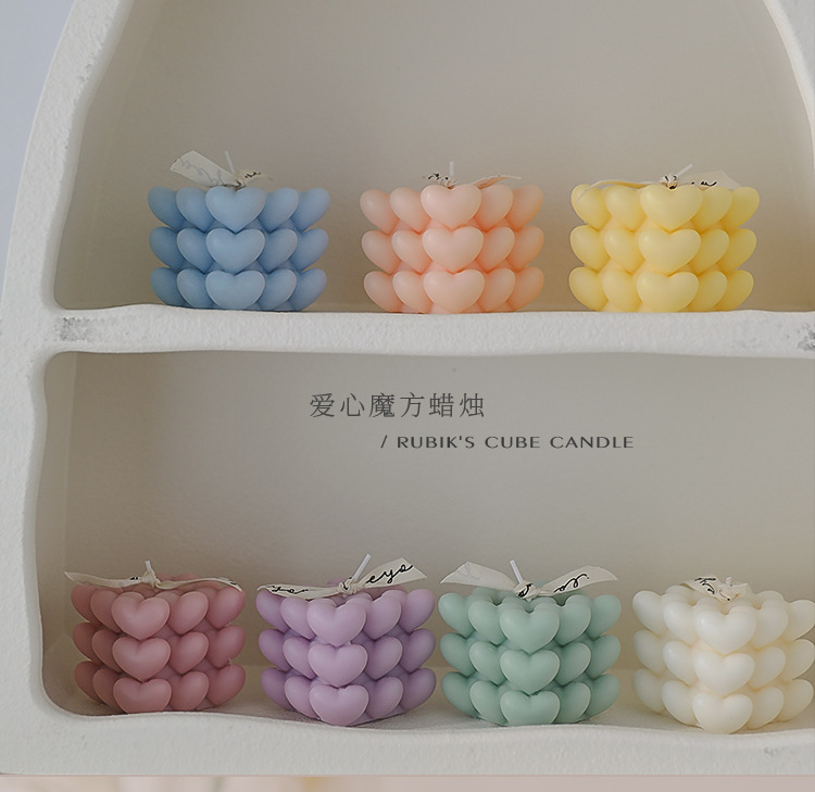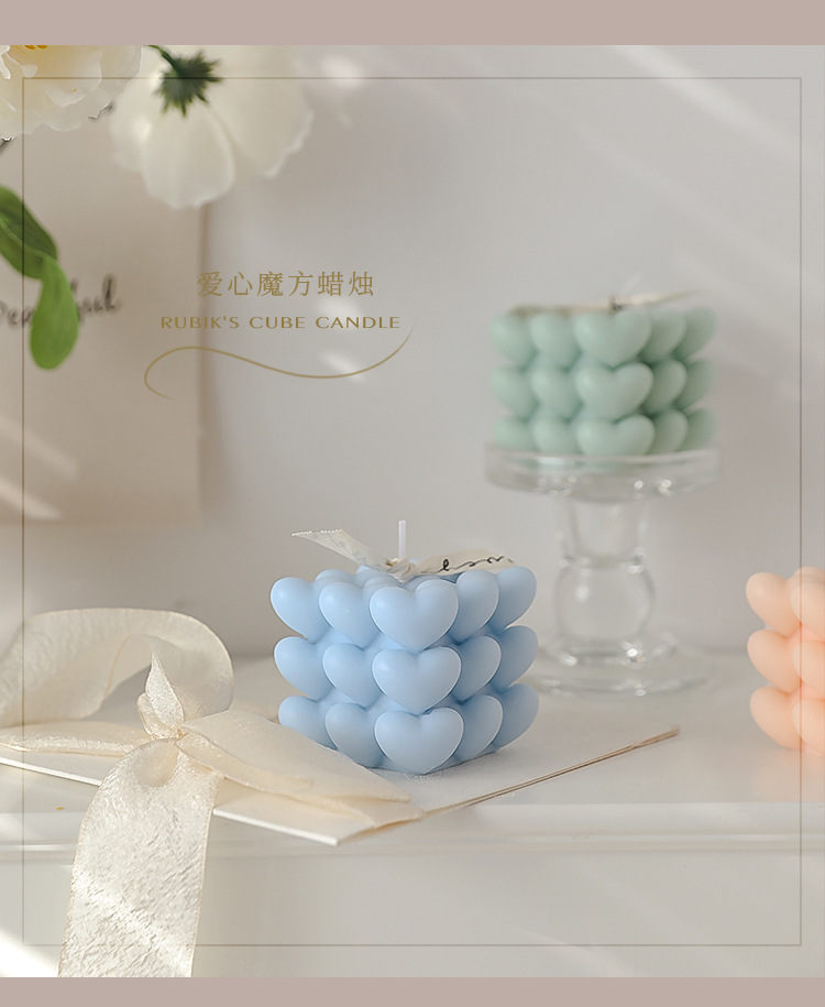 Día de San Valentín de Qixi, pequeño regalo en forma de corazón, vela de incienso de cubo Rubik, atmósfera hecha a mano, aroma de regalo de mano, vela de amor.