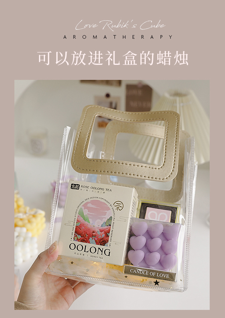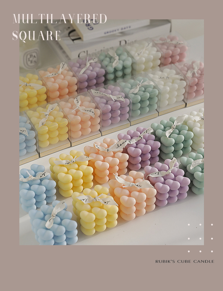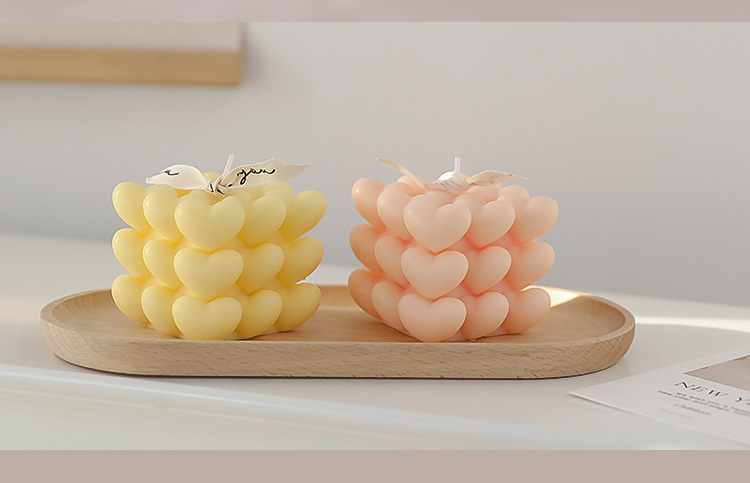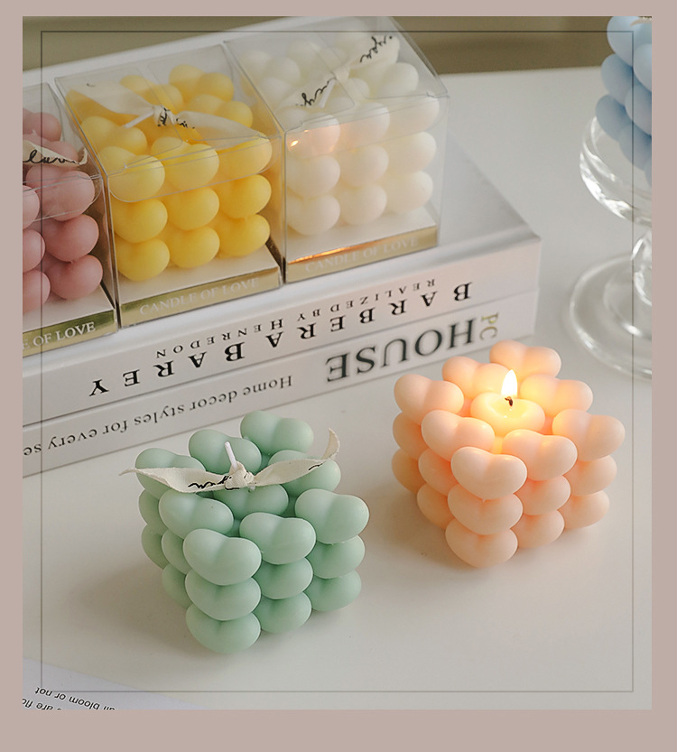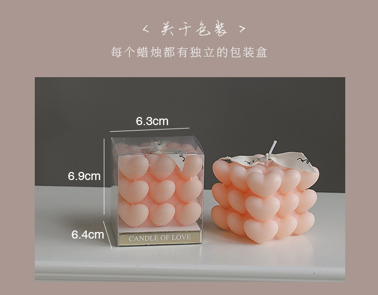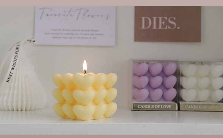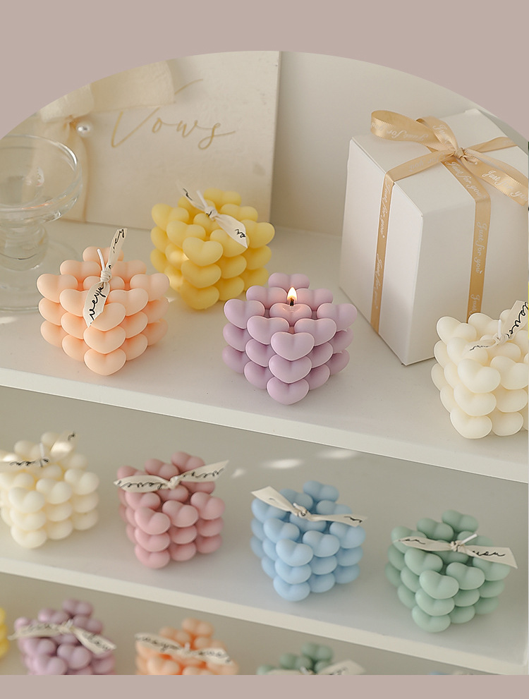 Día de San Valentín de Qixi, pequeño regalo en forma de corazón, vela de incienso de cubo Rubik, atmósfera hecha a mano, aroma de regalo de mano, vela de amor.