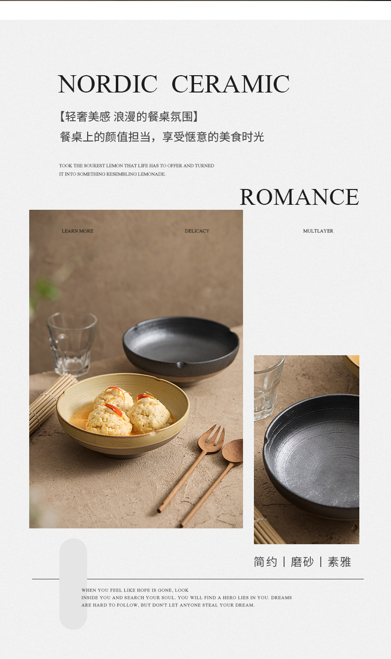 Plato de comida de montaña y río Plato de platos domésticos Plato de platos fríos de cerámica de alta calidad Plato profundo japonés Plato de sopa de comida occidental para el hogar