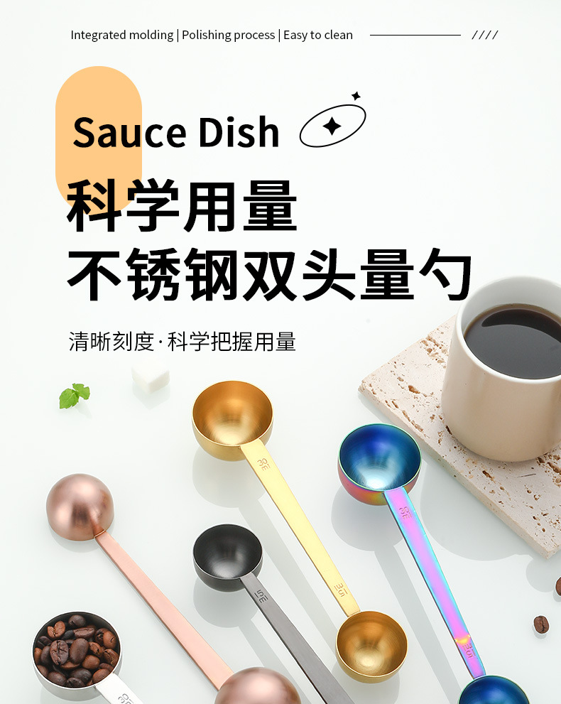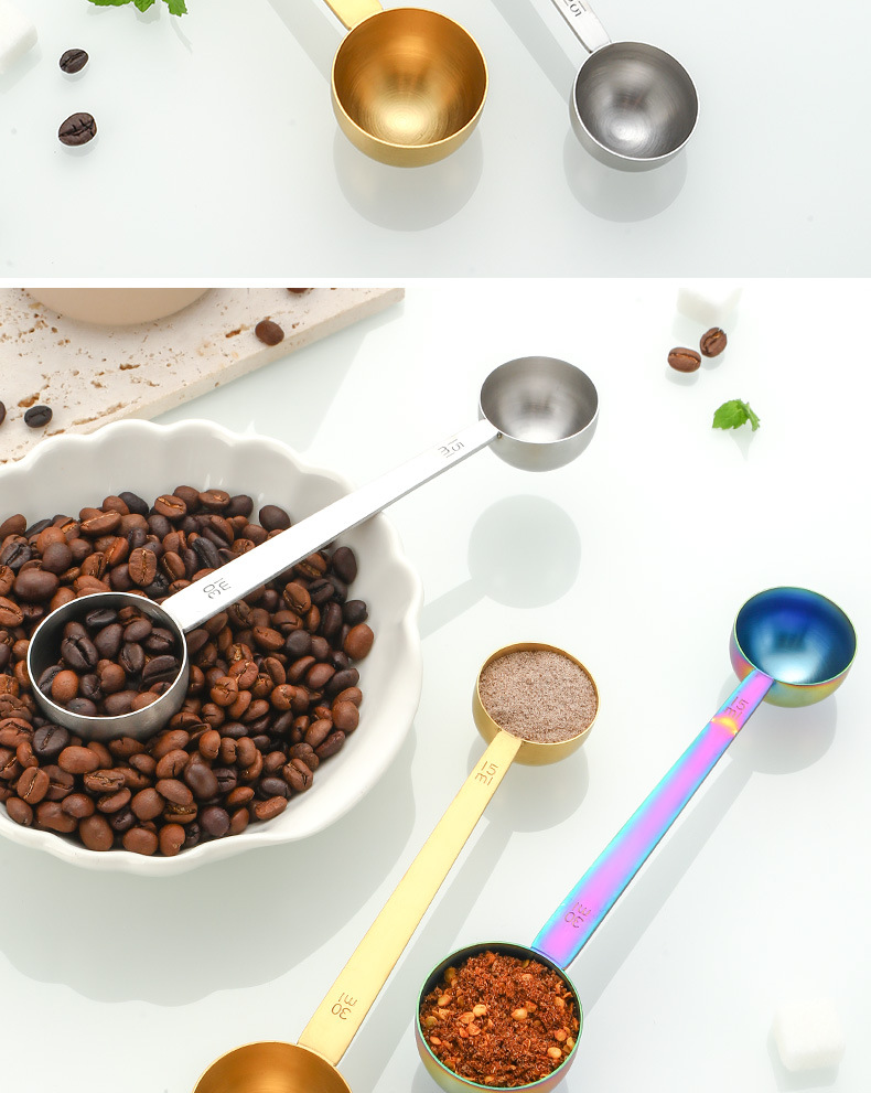 Fabricante de origen Cuchara medidora de doble cabezal de acero inoxidable 304 30ml Herramientas para hornear en el hogar Cuchara medidora de café en polvo Cuchara de condimento