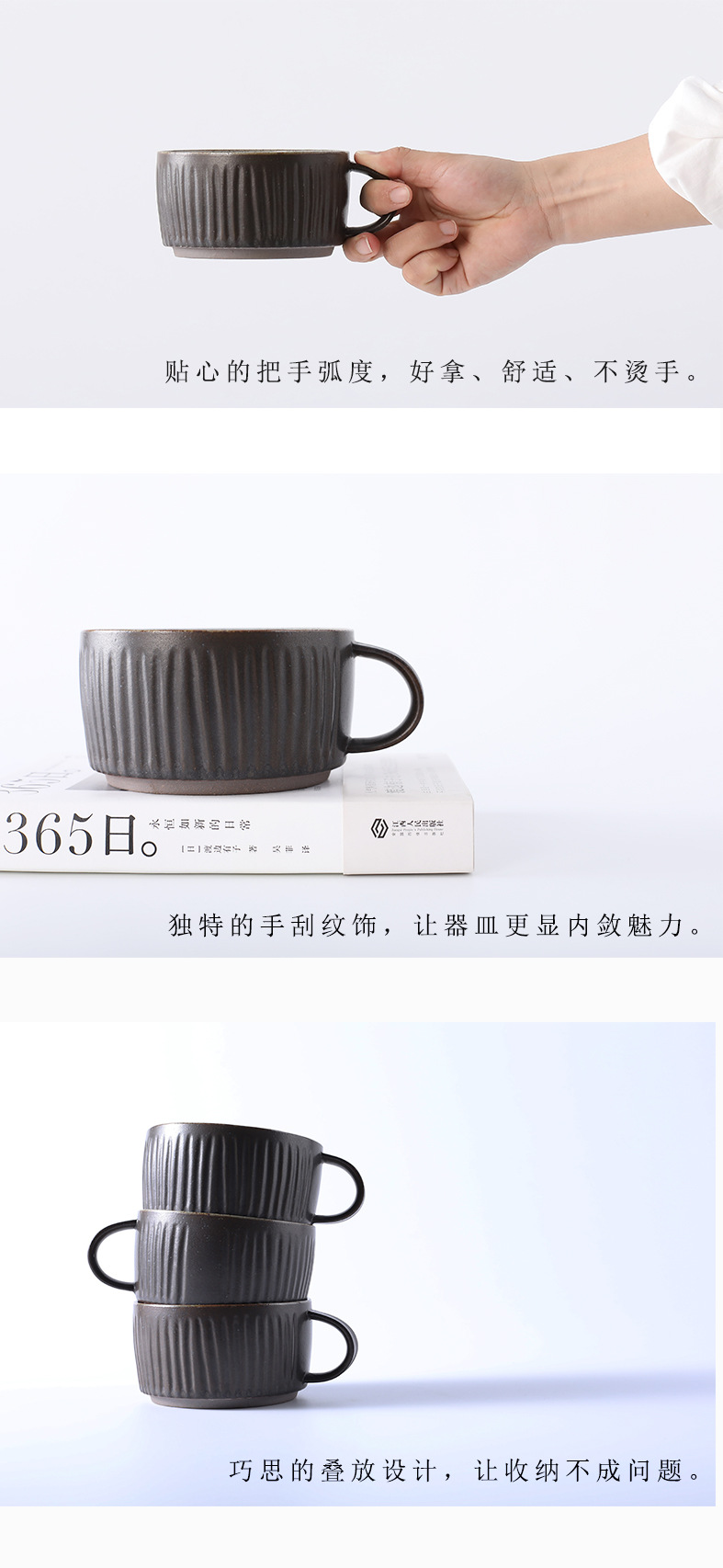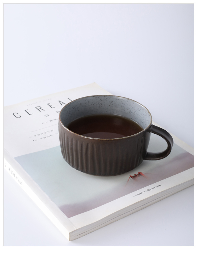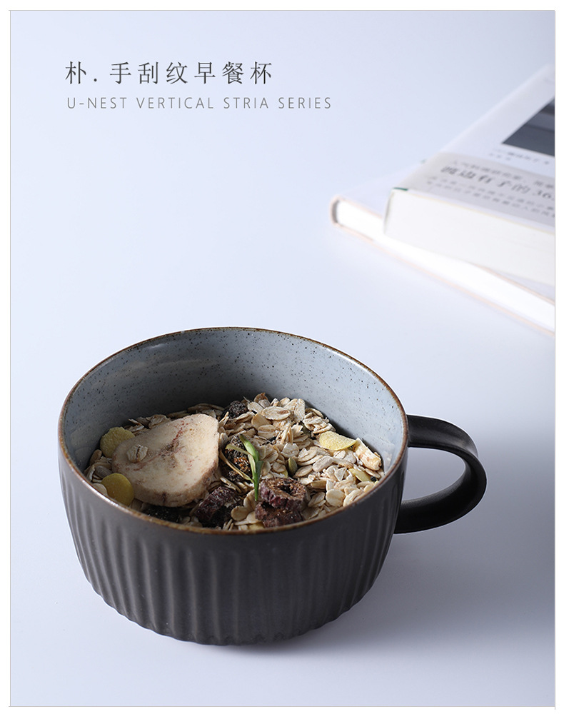 Taza de café simple con rascado de mano, taza de té de avena para el desayuno, taza de cerámica de gran capacidad, taza de agua de alto valor facial
