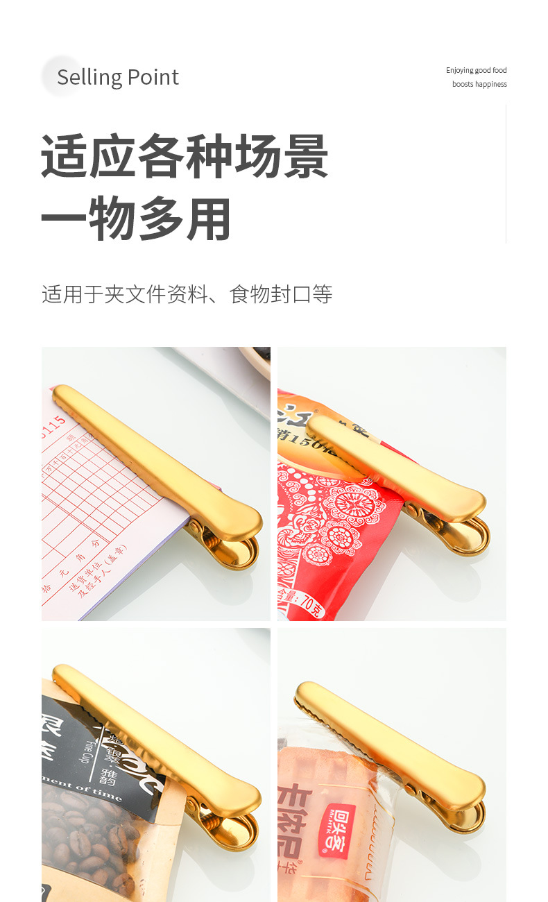 Fabricante de origen pinza de cocodrilo de acero inoxidable pinza de sellado pinza multifuncional a prueba de humedad para bocadillos frescos pinza de bolsa de leche en polvo pinza de sellado