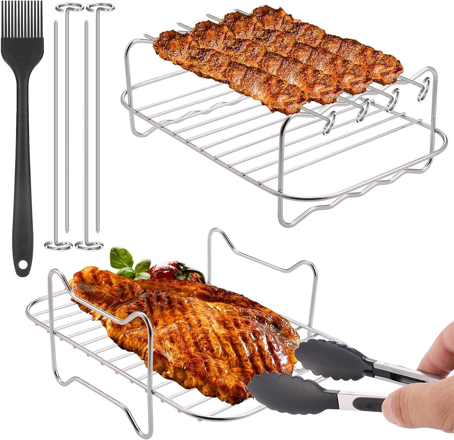 Ventas transfronterizas 201 accesorios de freidora de aire multifuncional rectangular de acero inoxidable parrilla de parrilla doméstica de doble capa marco de vapor