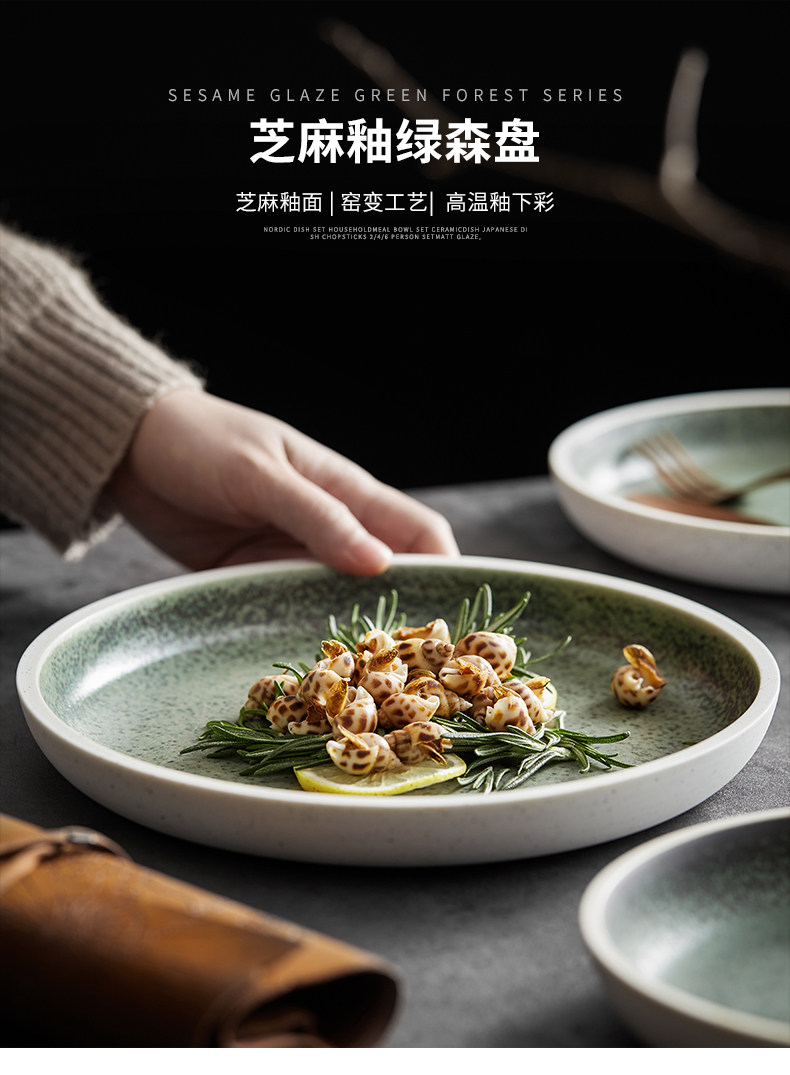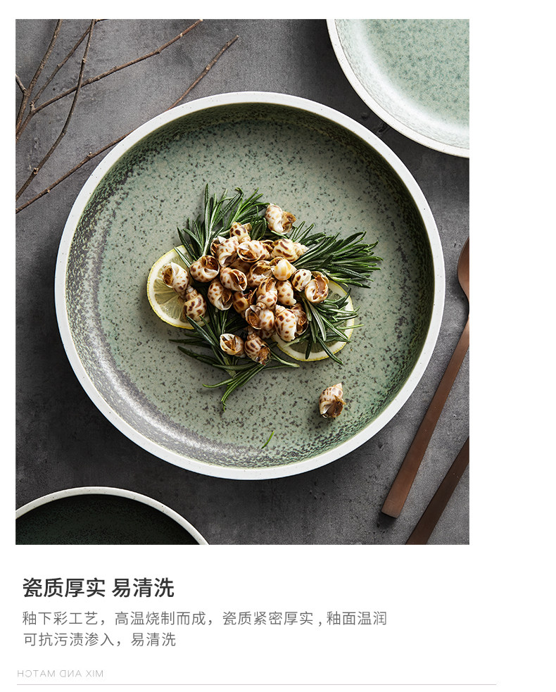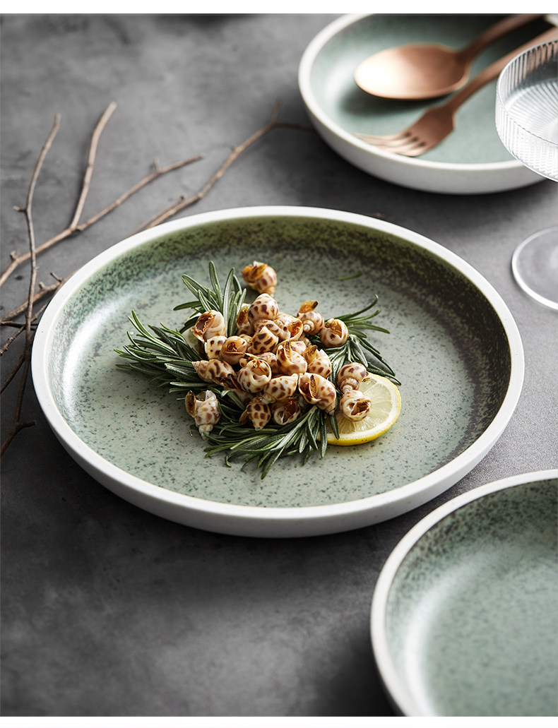 Horno redondo de estilo japonés, plato occidental de cerámica vidriada, plato de verduras profundas, plato frío atractivo, restaurante de hotel, vajilla de restaurante