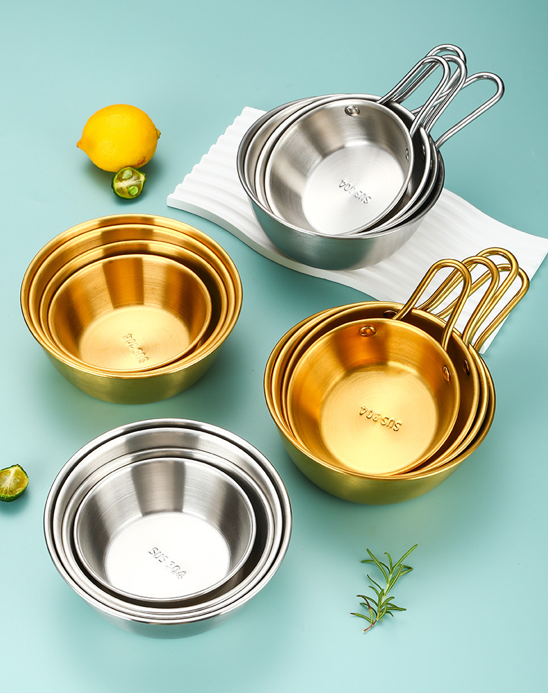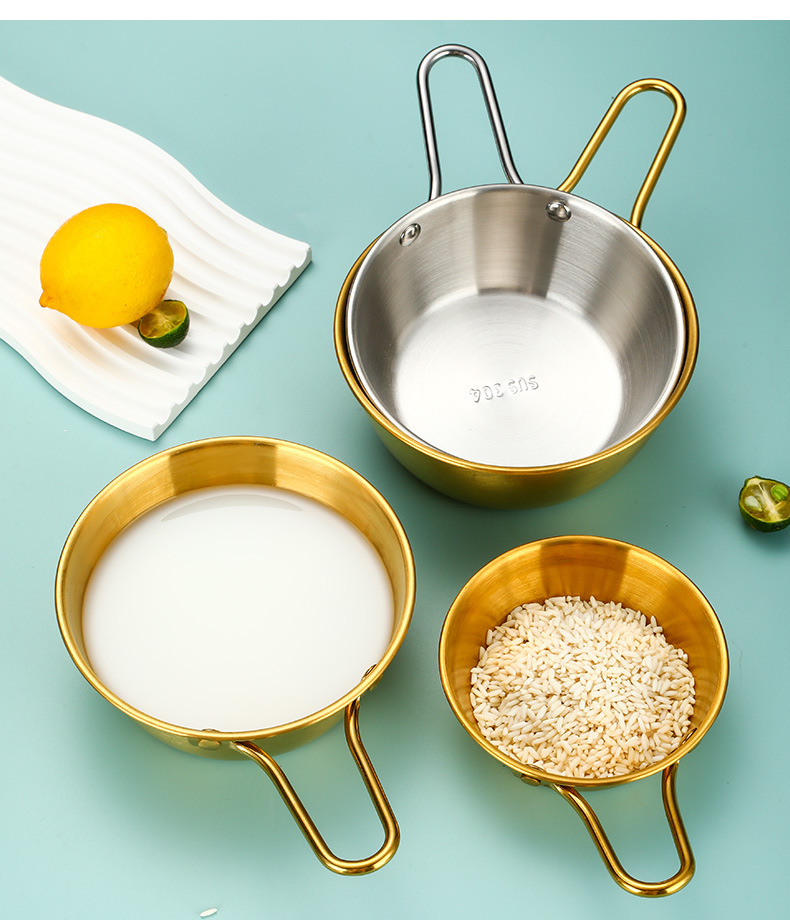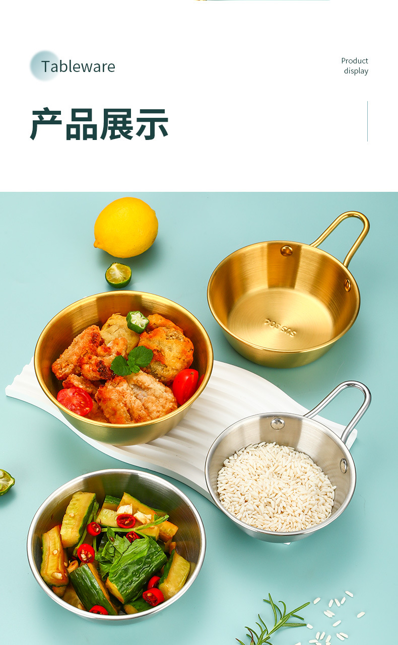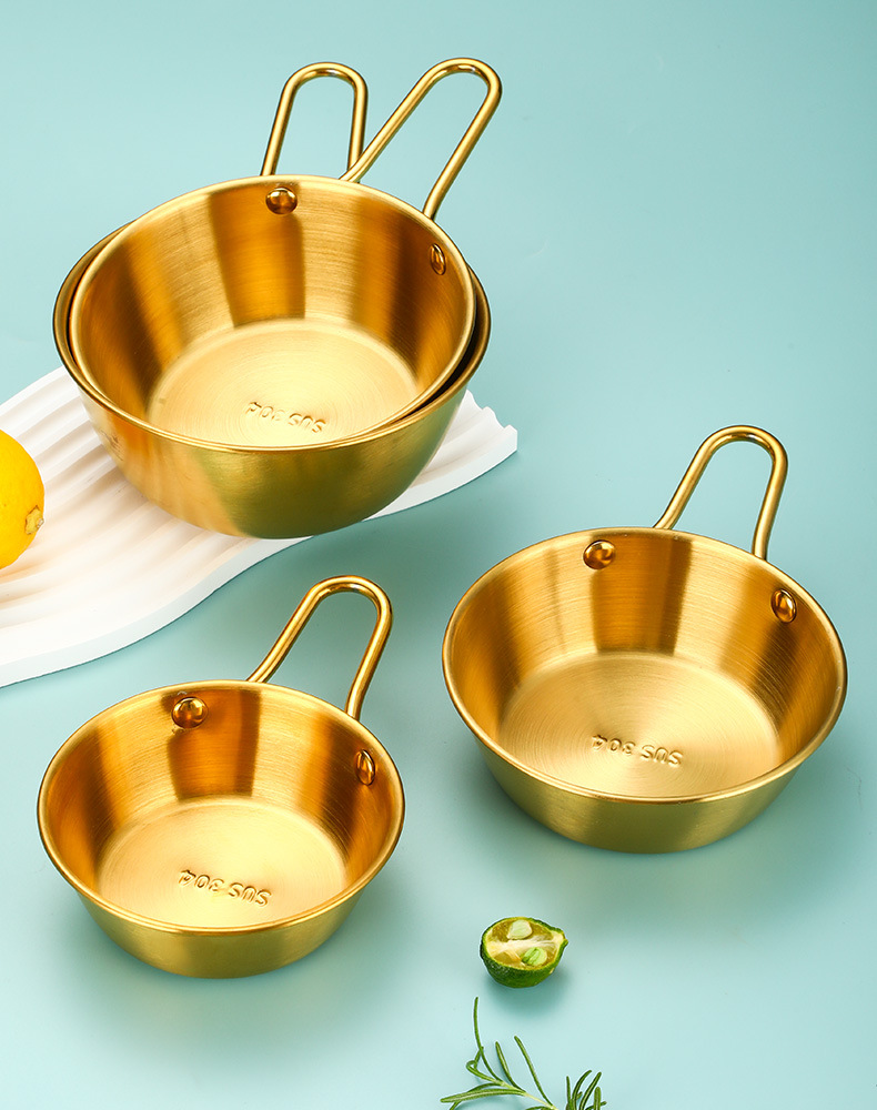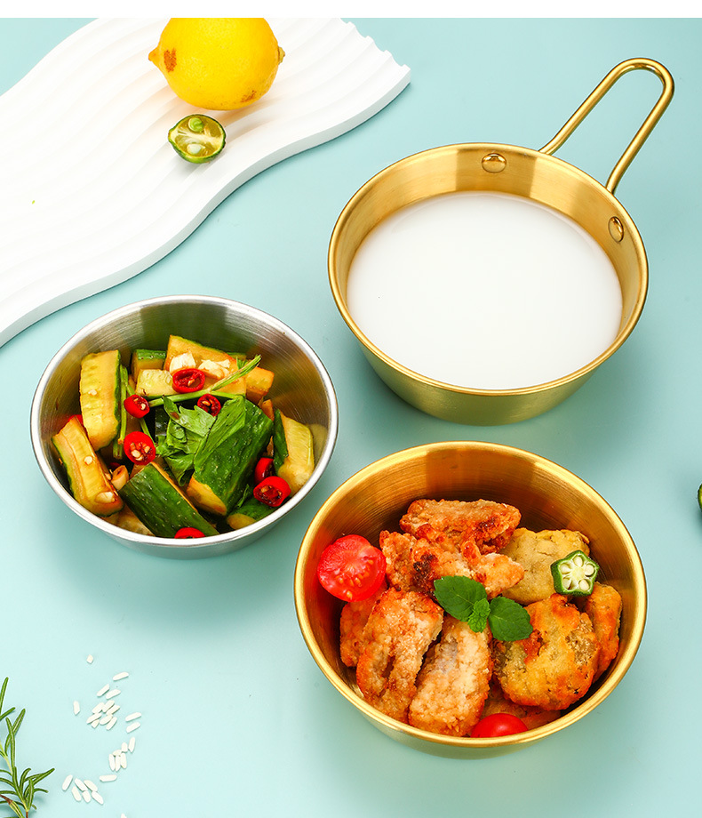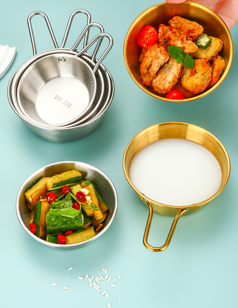 Coreano 304 acero inoxidable arroz vinegar tazón de acero dorado mango de cocina tazón de inmersión tazón de condimento tazón de arroz
