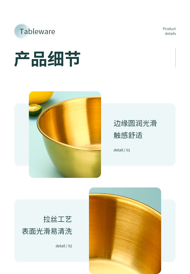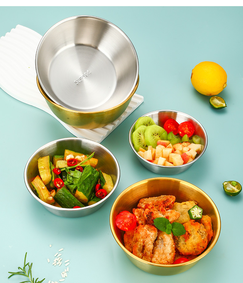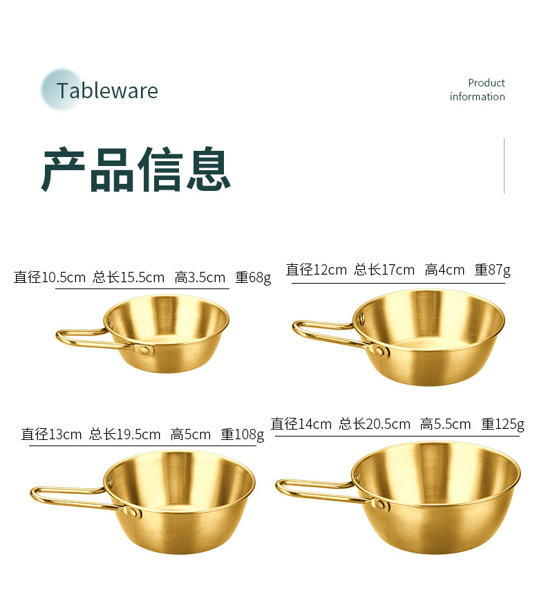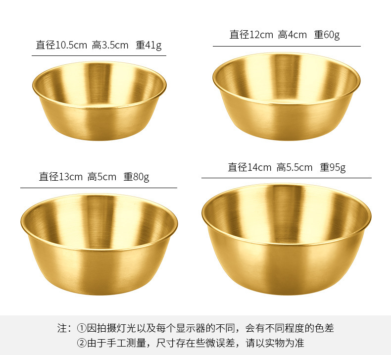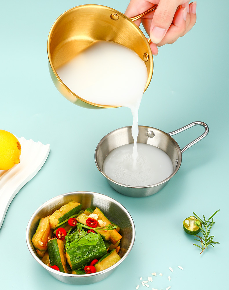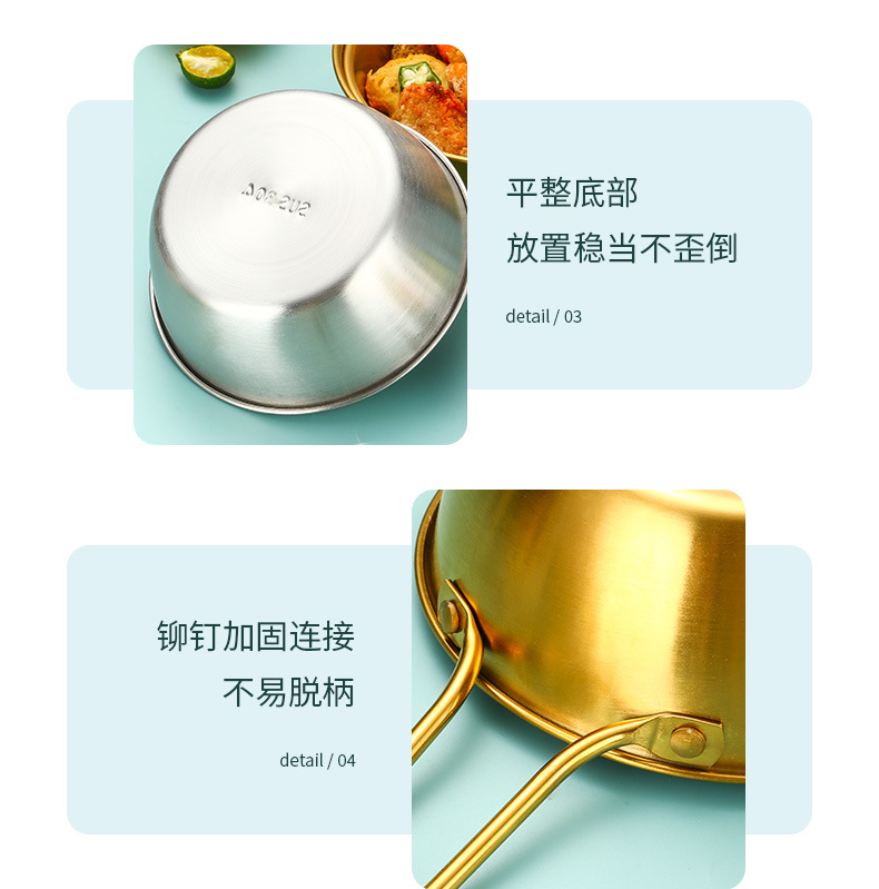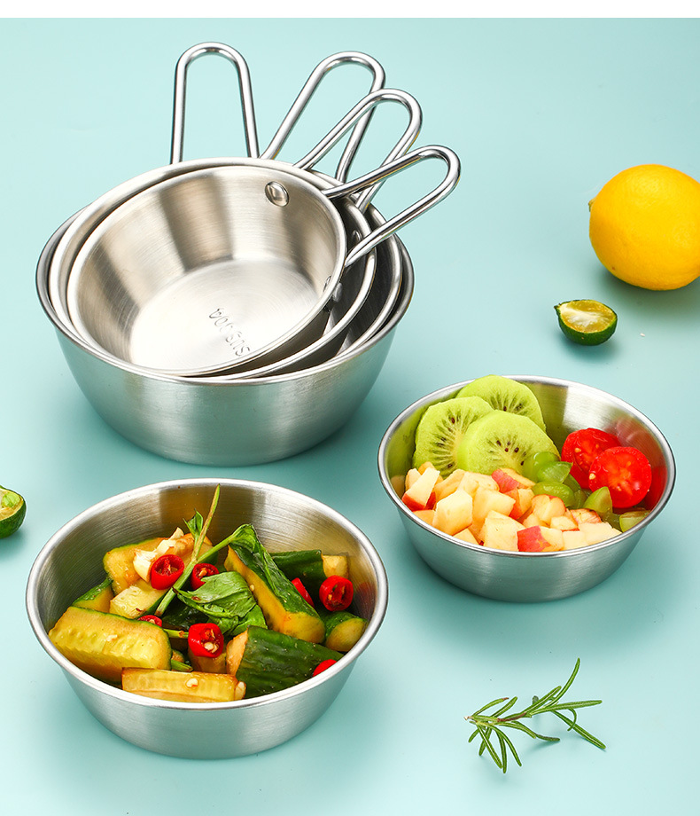 Coreano 304 acero inoxidable arroz vinegar tazón de acero dorado mango de cocina tazón de inmersión tazón de condimento tazón de arroz