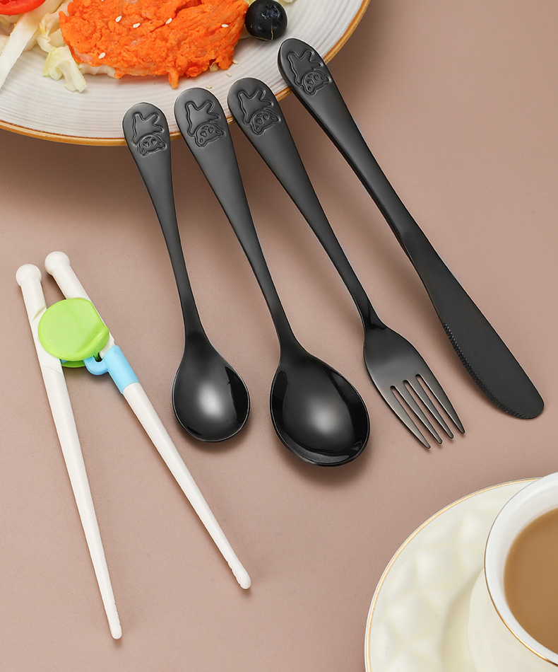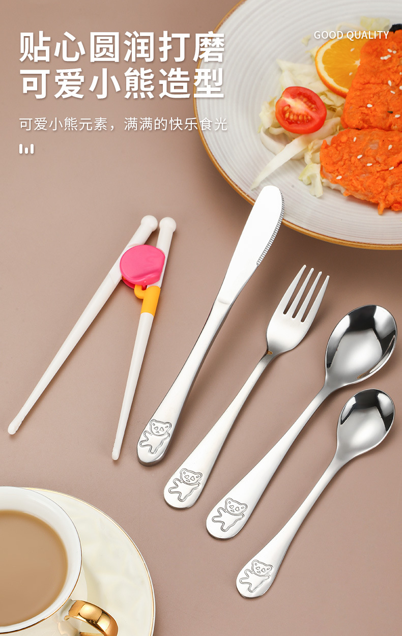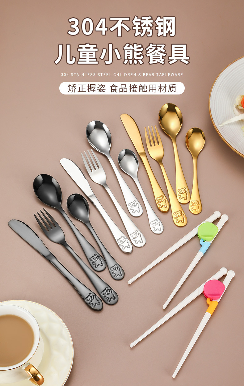 Creativo 304 de acero inoxidable cuchillo para niños, tenedor y cuchara palillos traje de dibujos animados de alto aspecto cuchara de entrenamiento Tenedor Oso vajilla