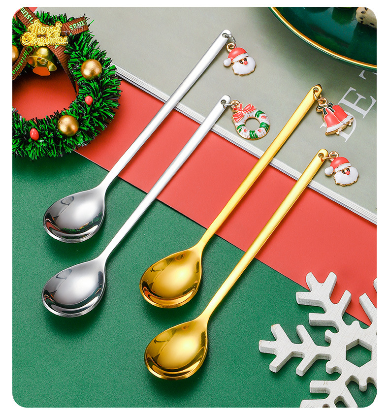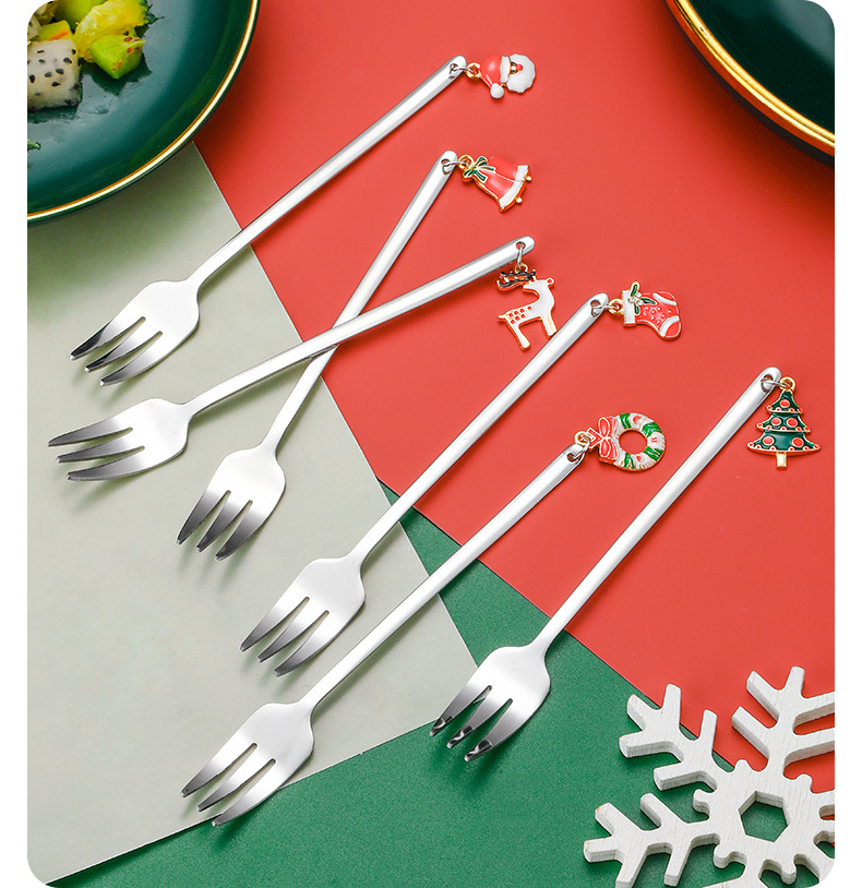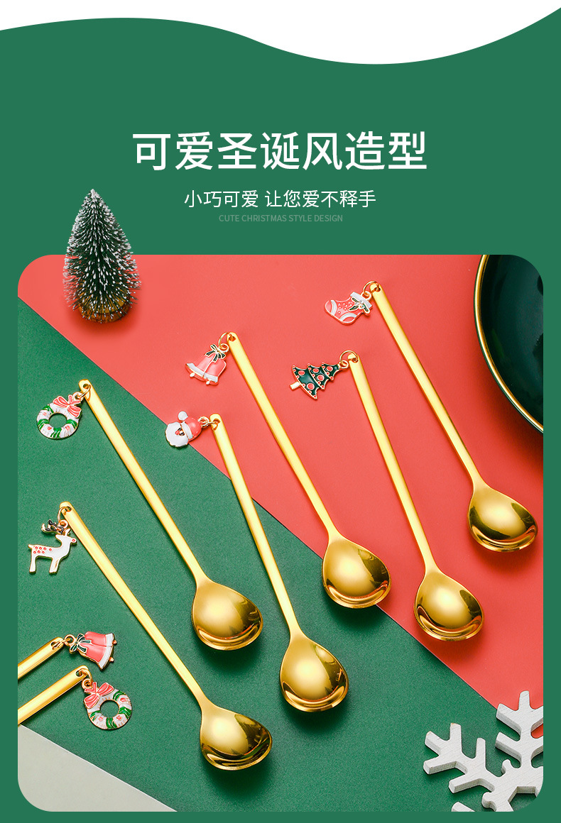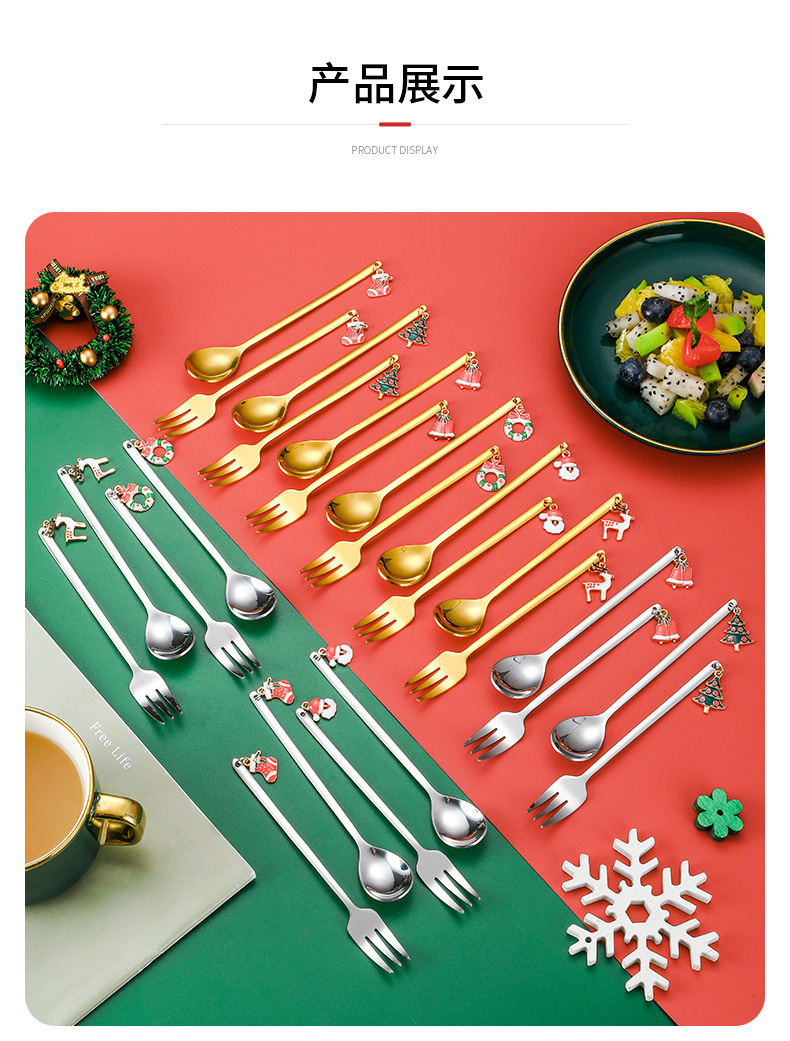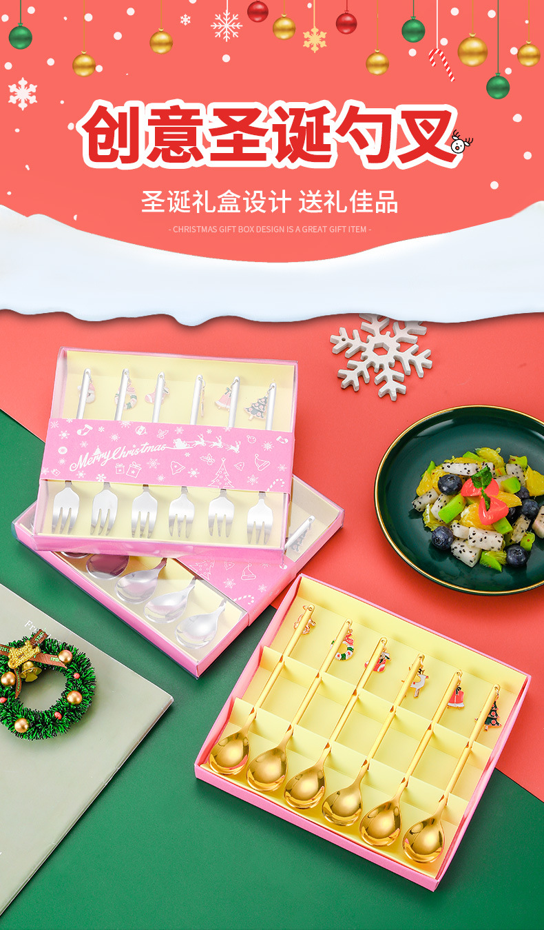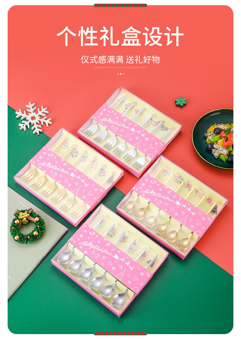 Vajilla de Navidad transfronteriza de dibujos animados cuchara de café cuchara de mezcla cuchara de postre tenedor caja de regalo traje de acero inoxidable cuchara de Navidad