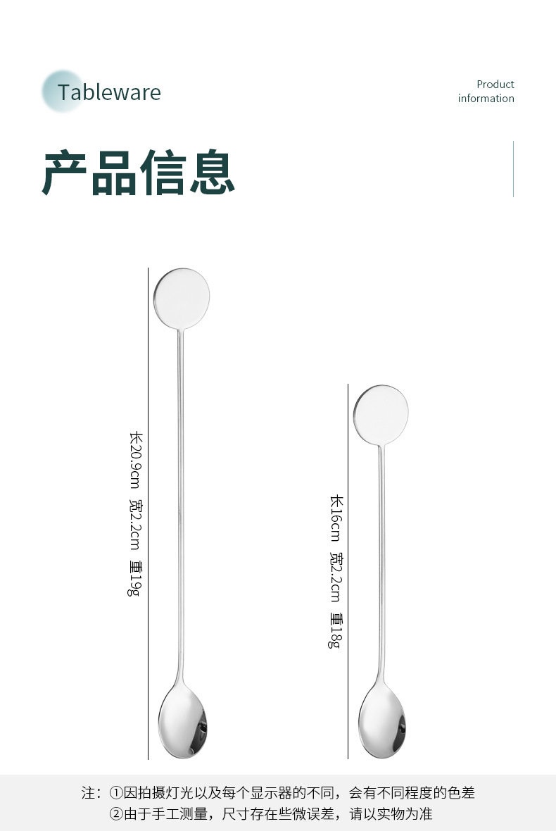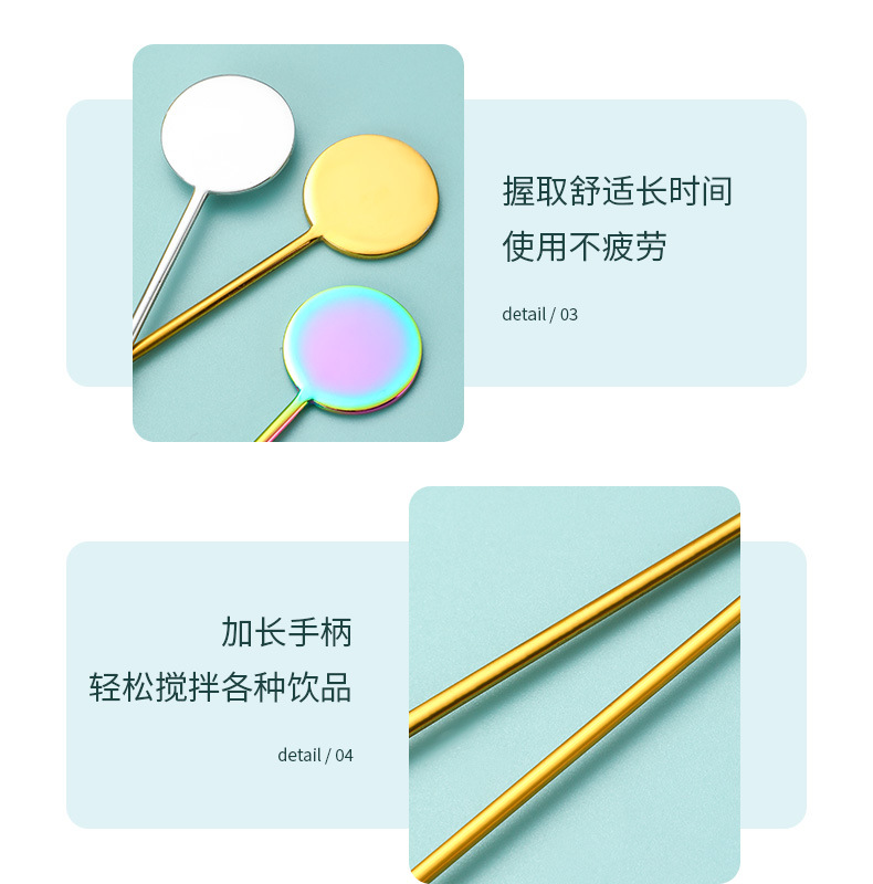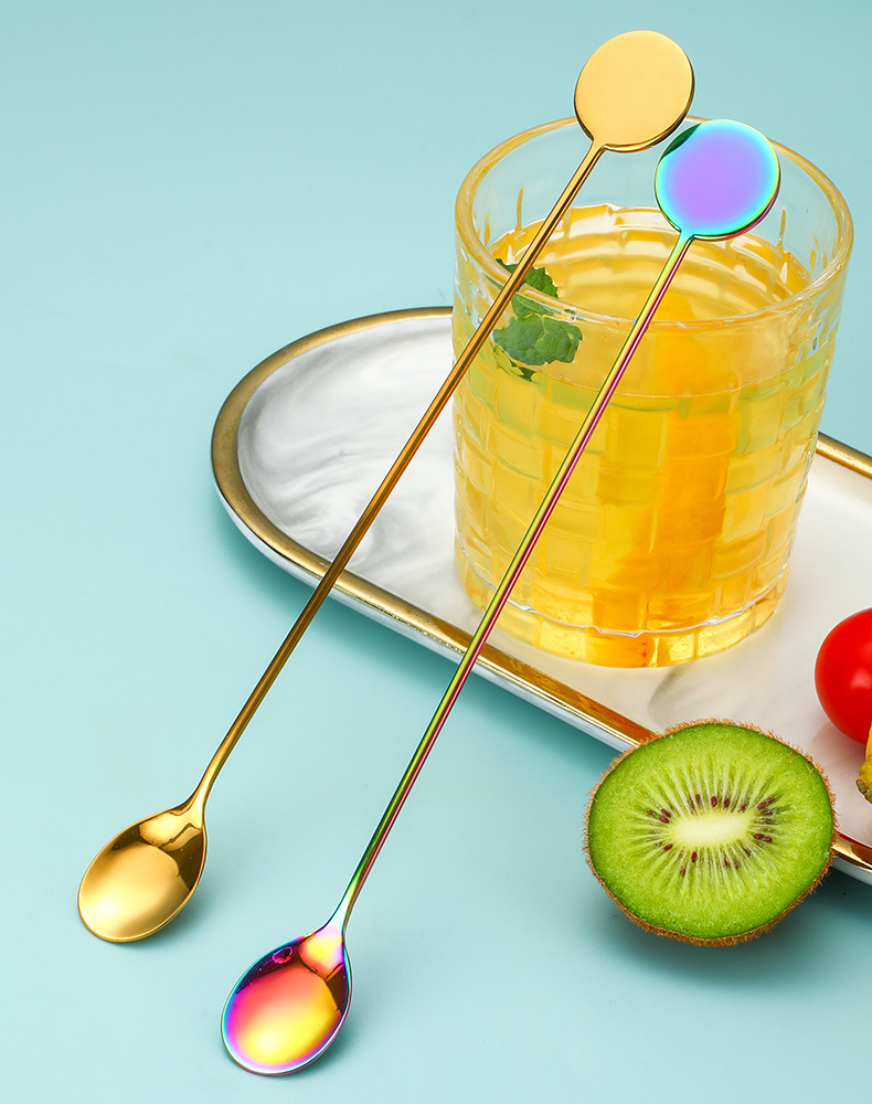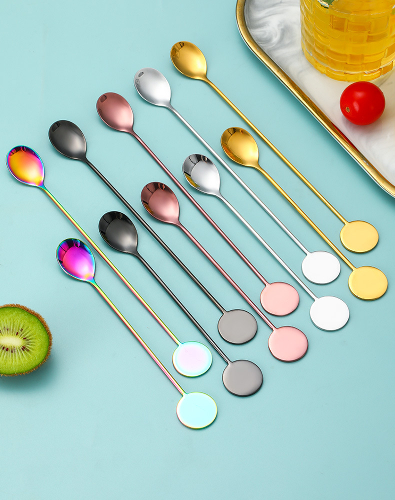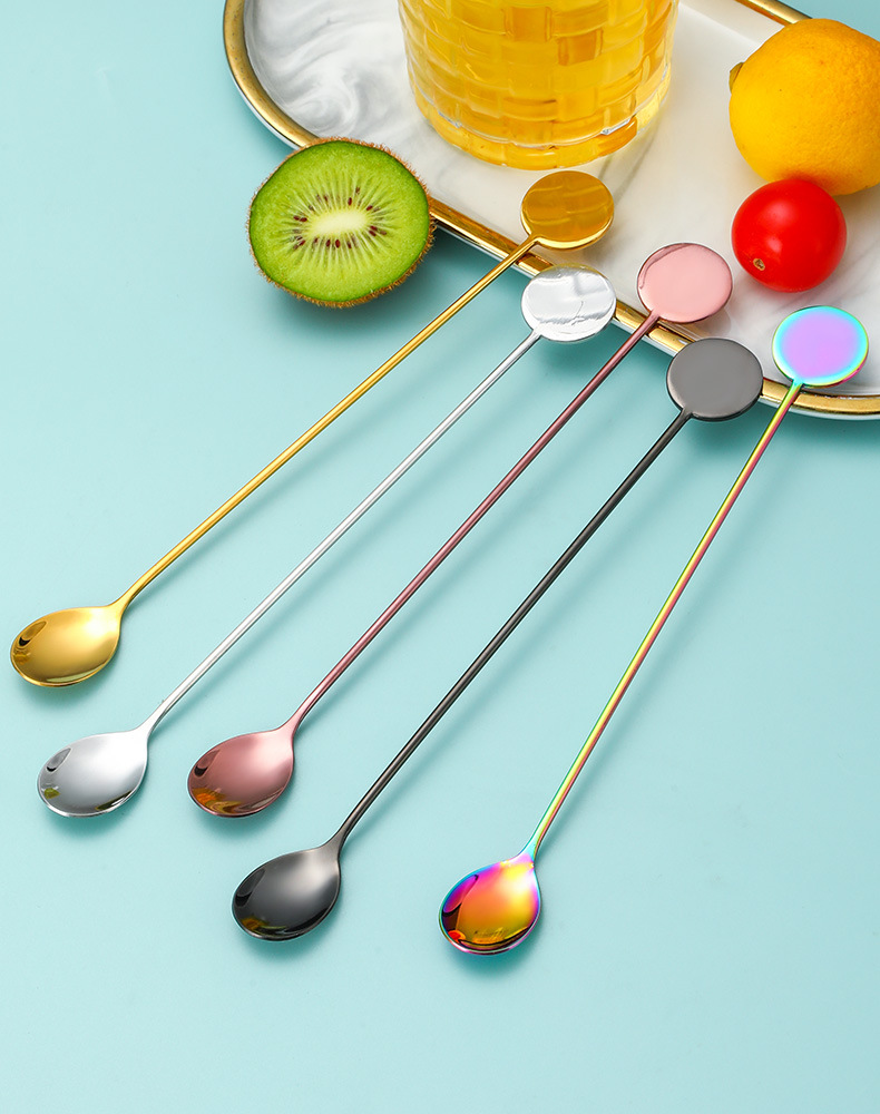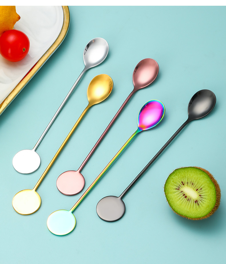 Cross-border 304 marca redonda de acero inoxidable café agitado Cuchara Bar cóctel cuchara de hielo Postres cuchara