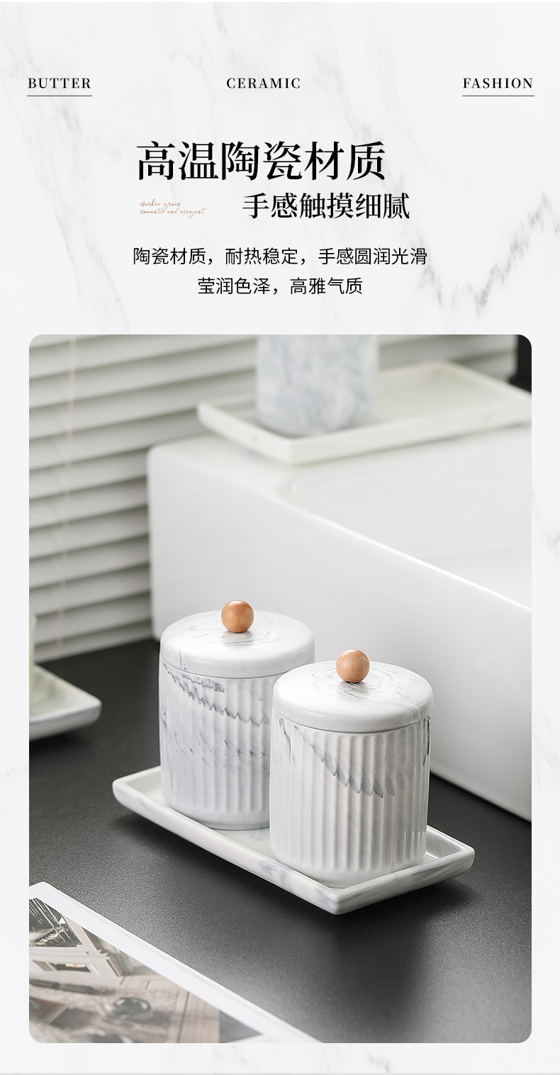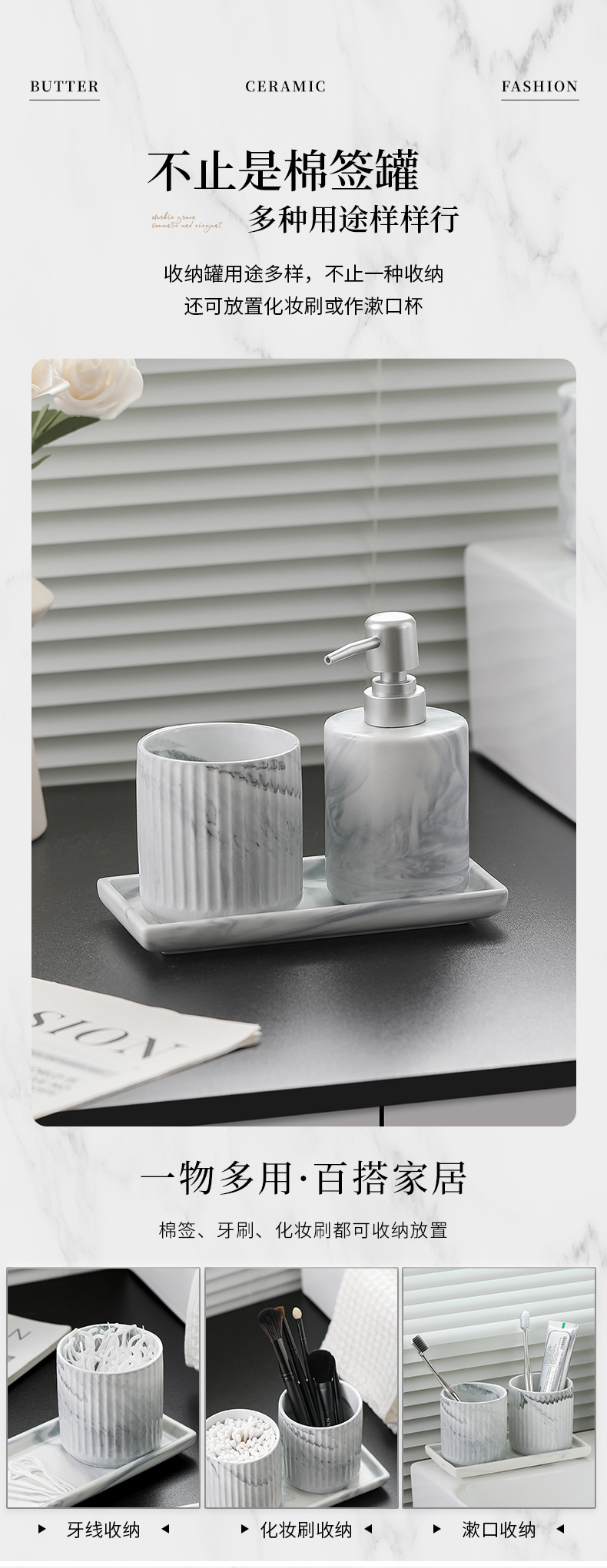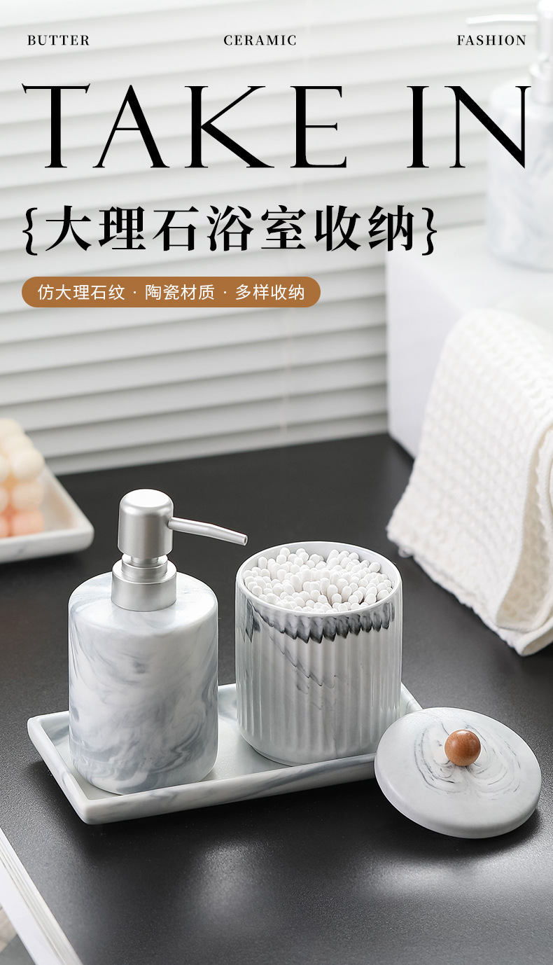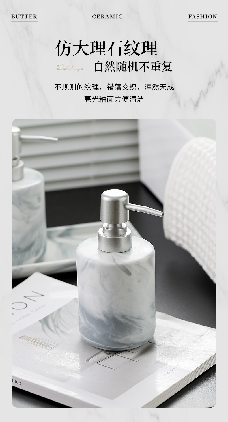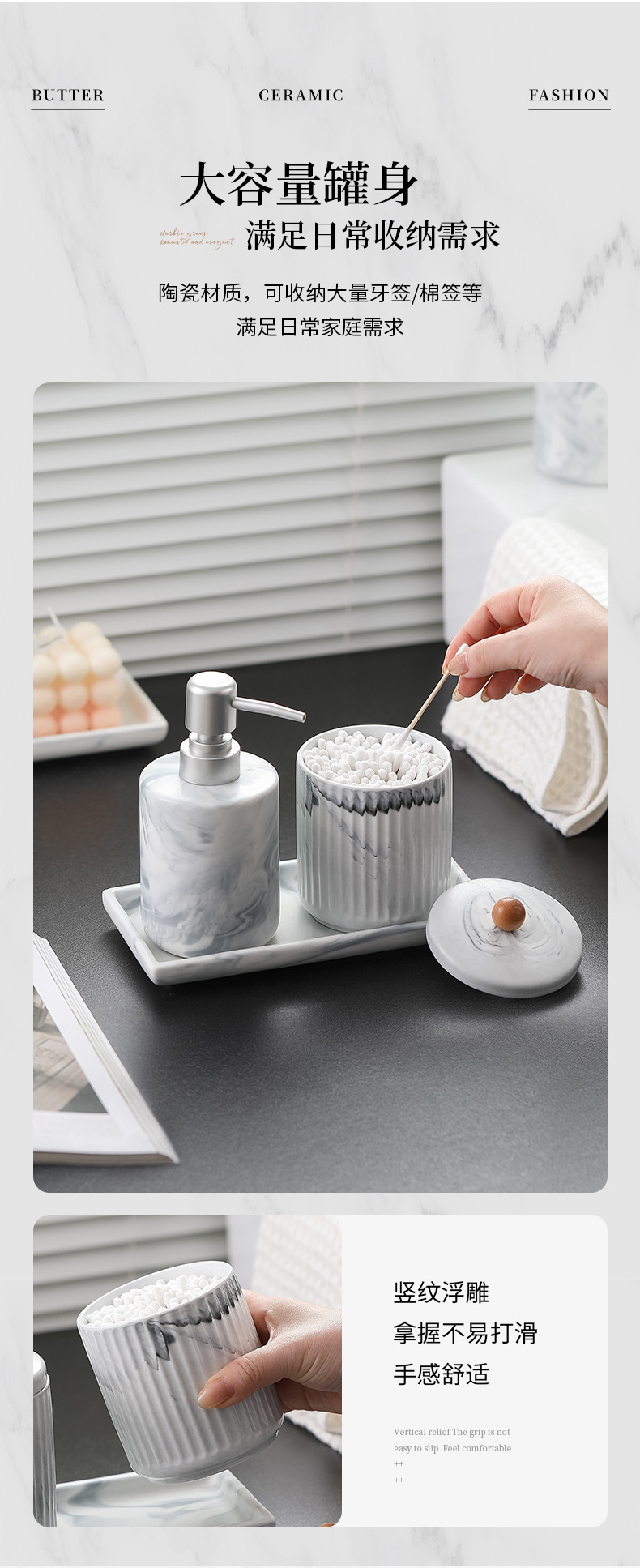 Botella de emulsión de cerámica tipo prensado desinfectante de manos botella de embalaje de baño de hotel botella de embalaje de algodón lata de lavado conjunto de bandeja