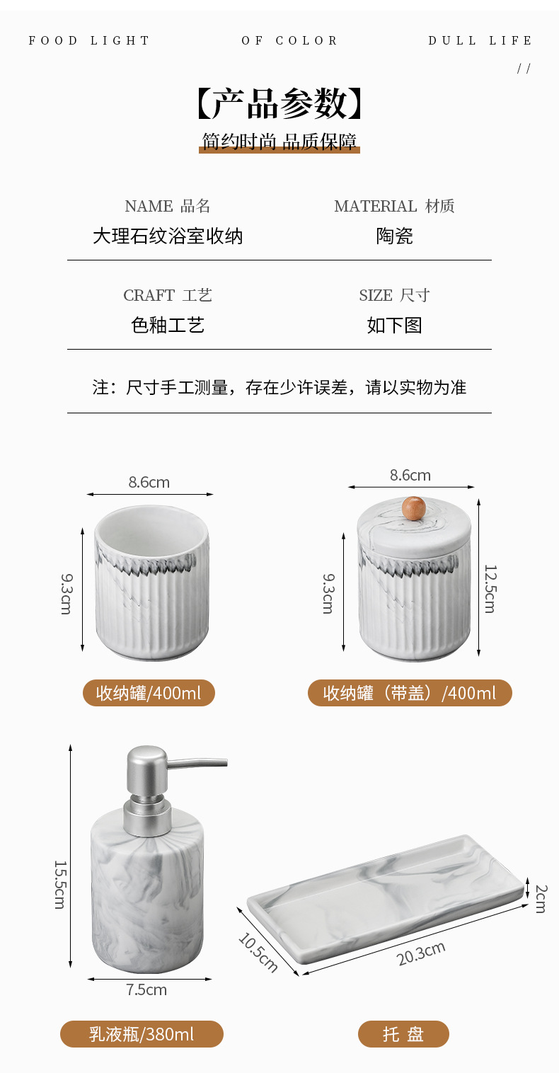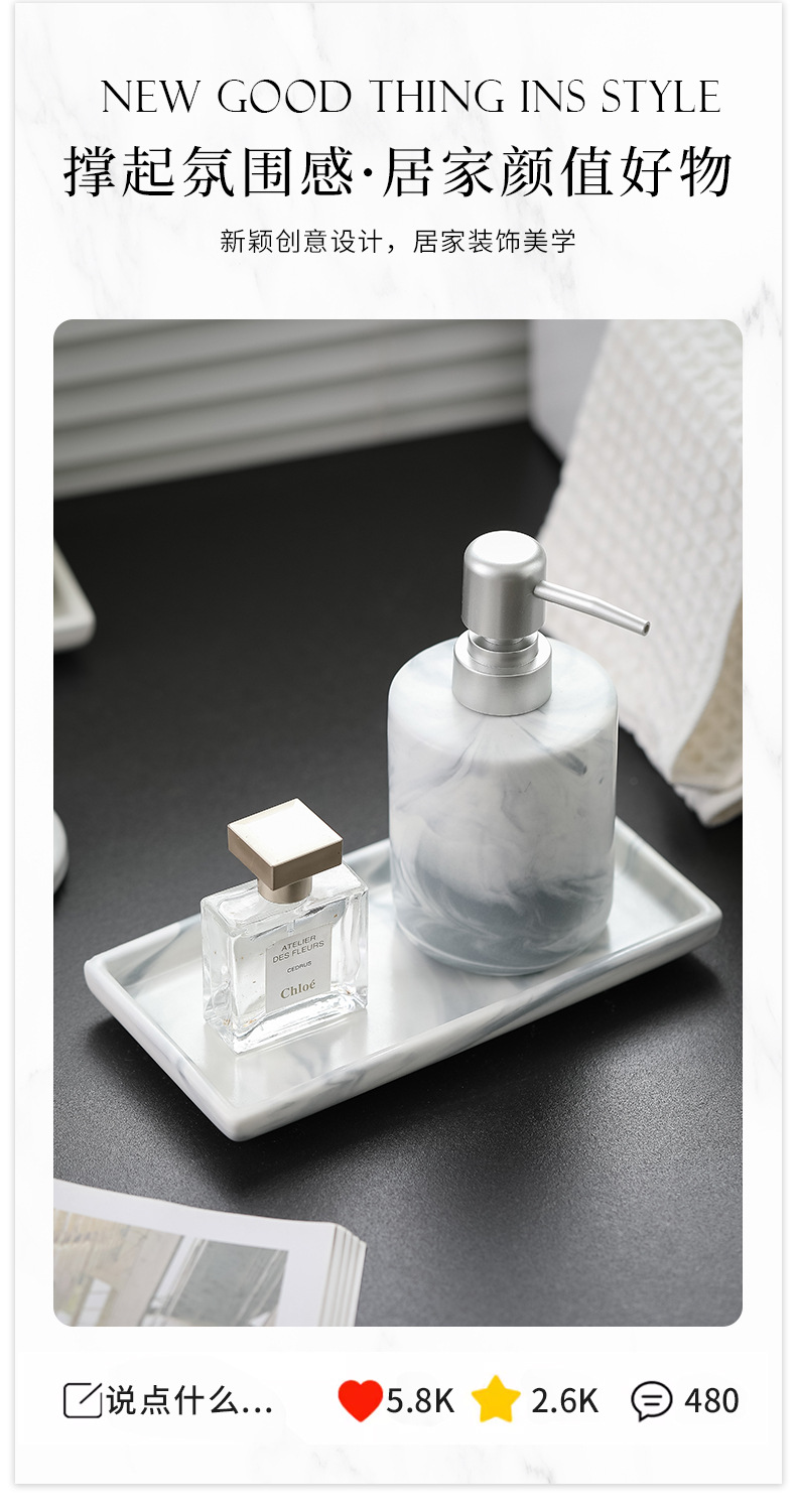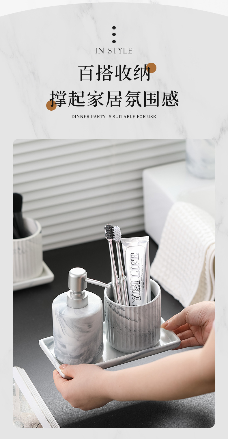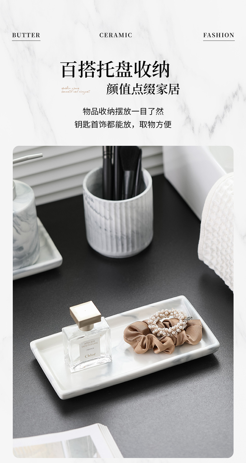 Botella de emulsión de cerámica tipo prensado desinfectante de manos botella de embalaje de baño de hotel botella de embalaje de algodón lata de lavado conjunto de bandeja