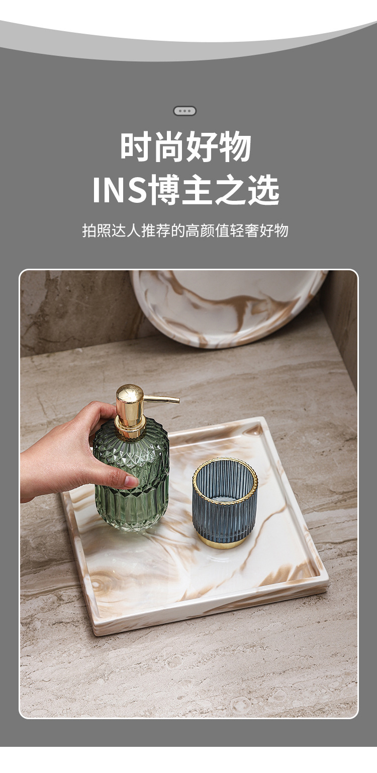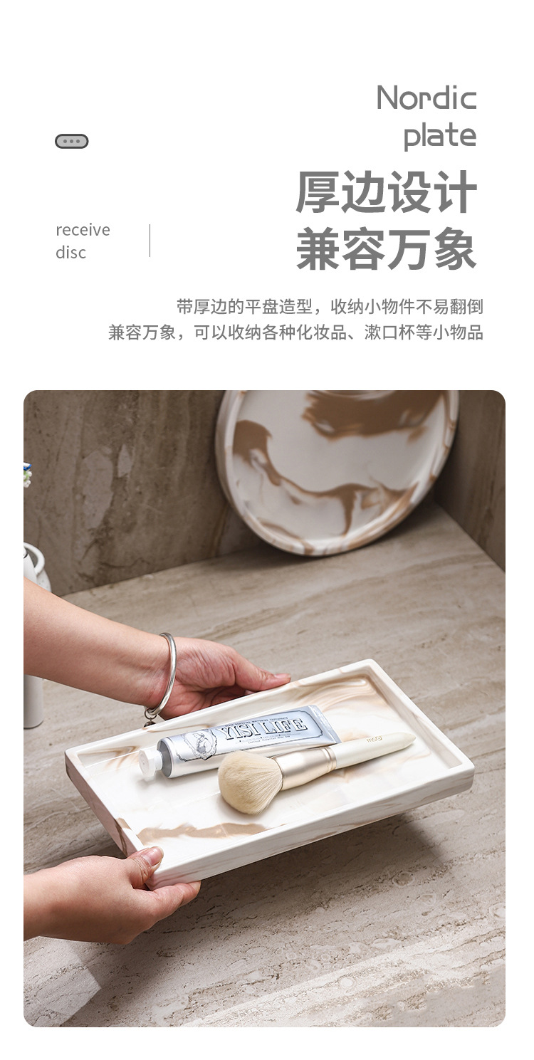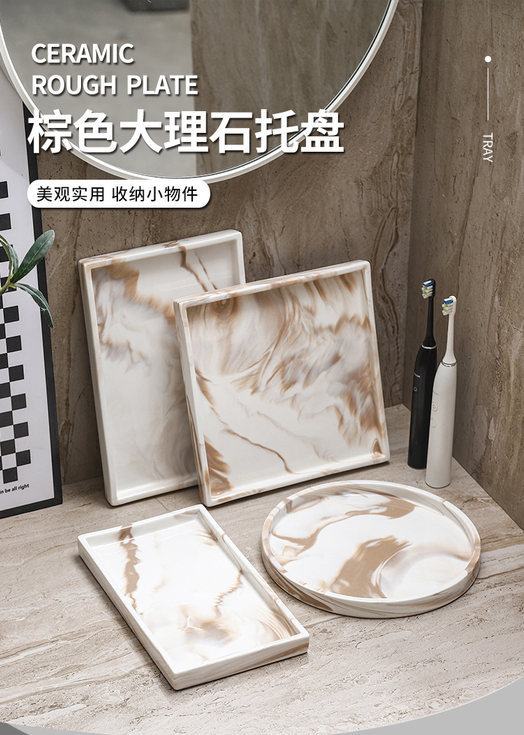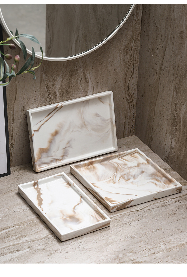 Bandeja de cerámica de mármol marrón Estante de baño Estante de almacenamiento de tocador de hotel Bandeja de encimera de maquillaje