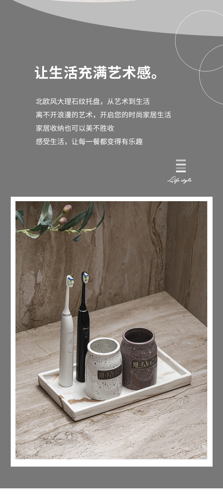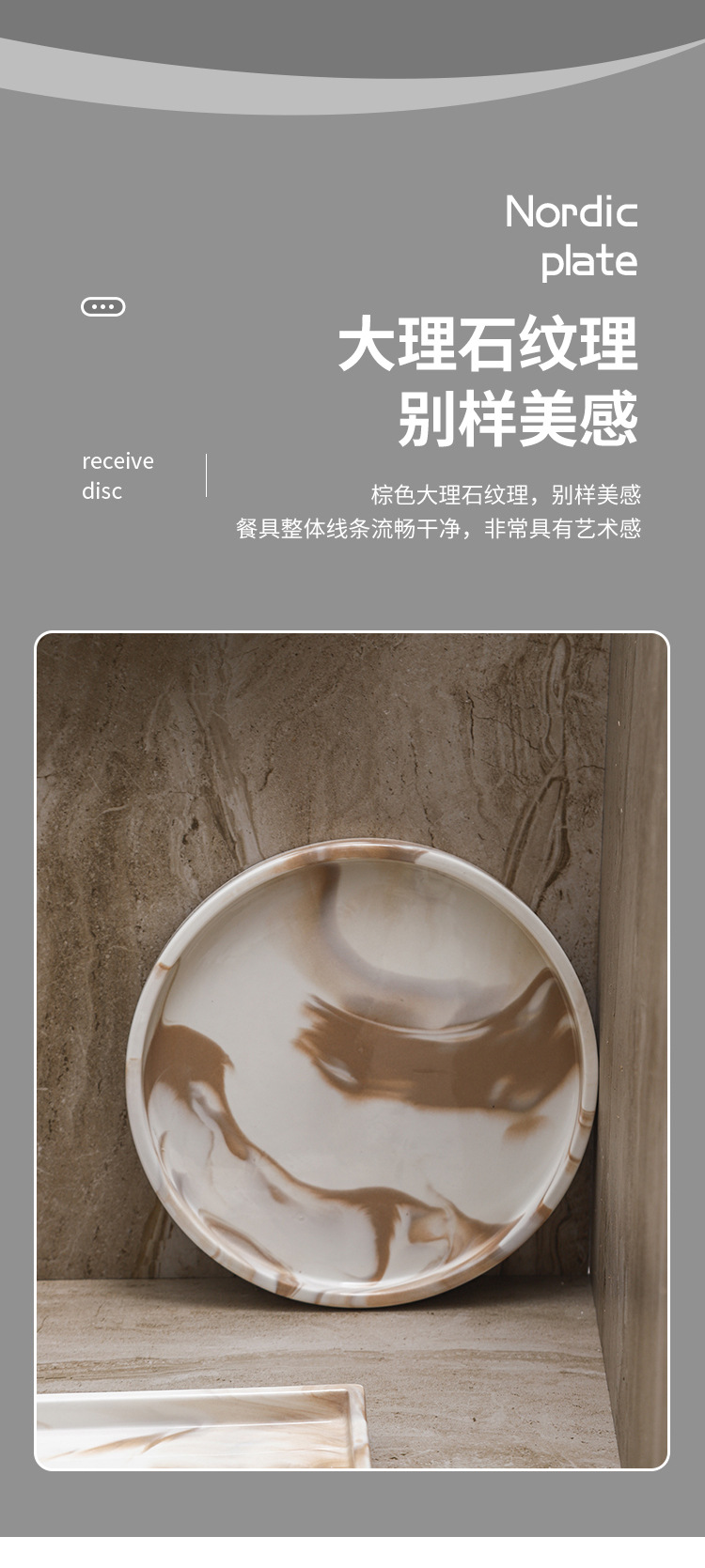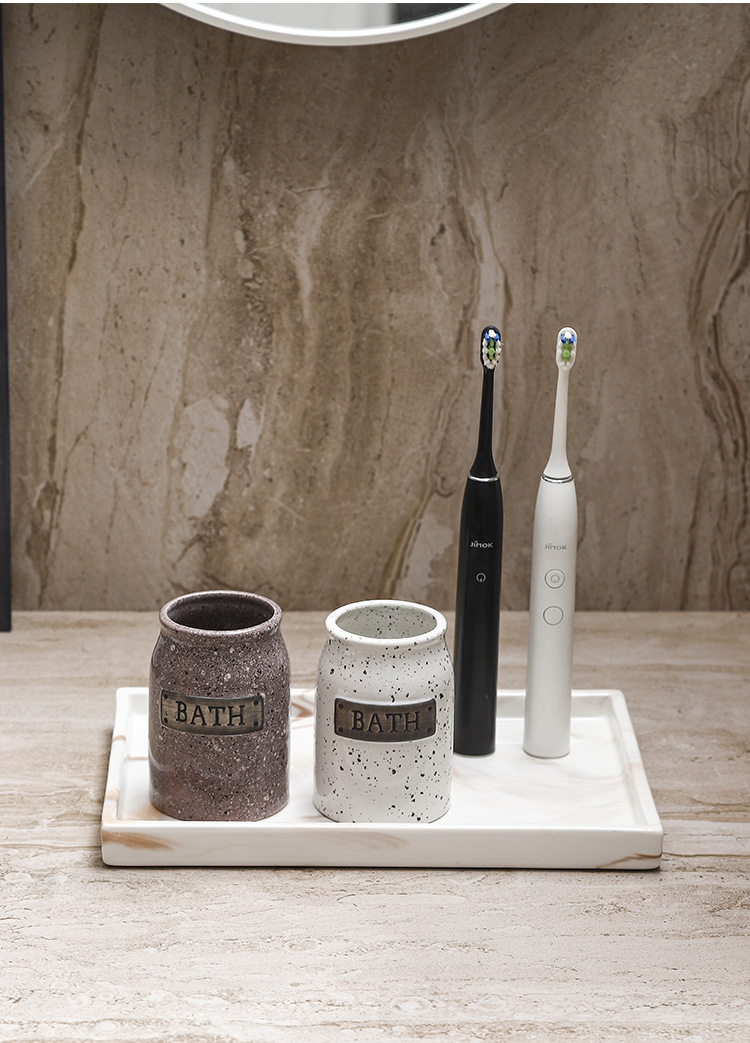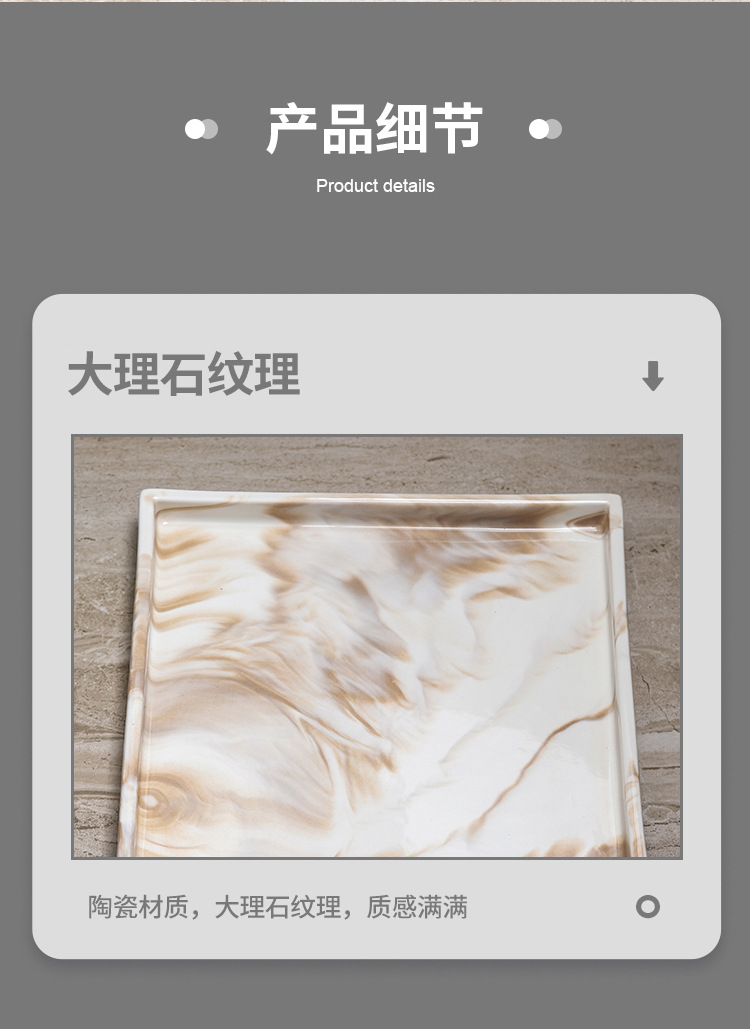 Bandeja de cerámica de mármol marrón Estante de baño Estante de almacenamiento de tocador de hotel Bandeja de encimera de maquillaje