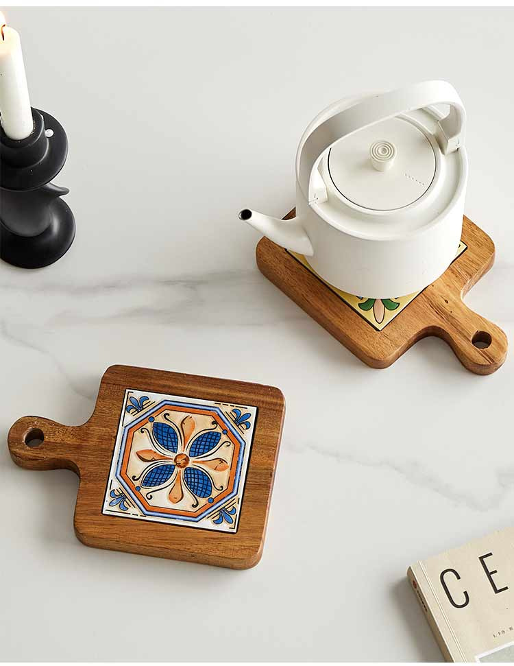 Alfombrilla para ollas con mango de azulejos florales de estilo japonés, almohadilla de aislamiento térmico, alfombrilla antiescaldaduras, posavasos, almohadilla de aislamiento térmico para ollas de sopa y cazuelas domésticas, alfombrilla de madera con aislamiento térmico.