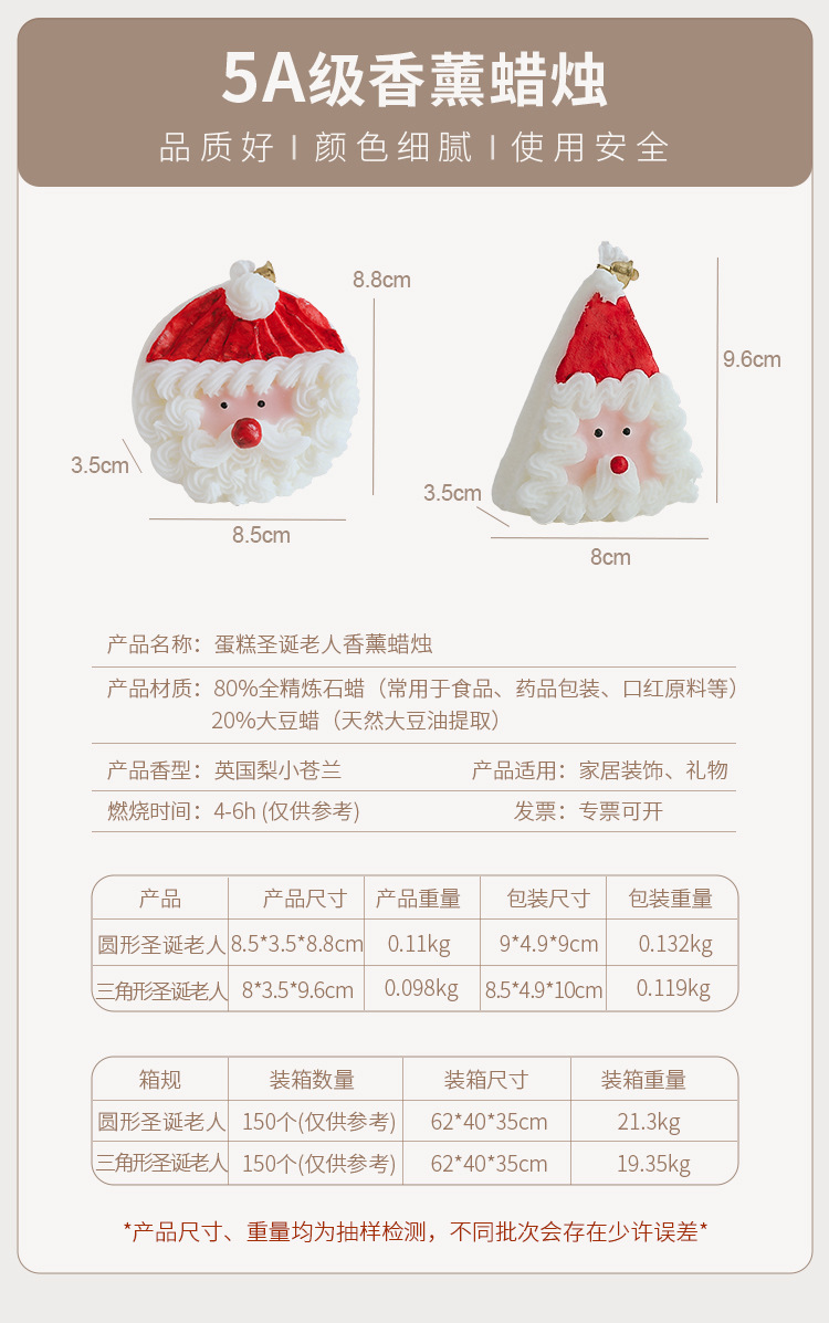 Navidad pastel de vela para el anciano, vela de perfume, regalo de Navidad, cera de estilo hecha a mano
