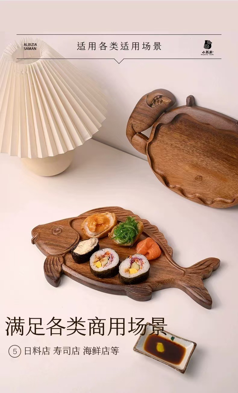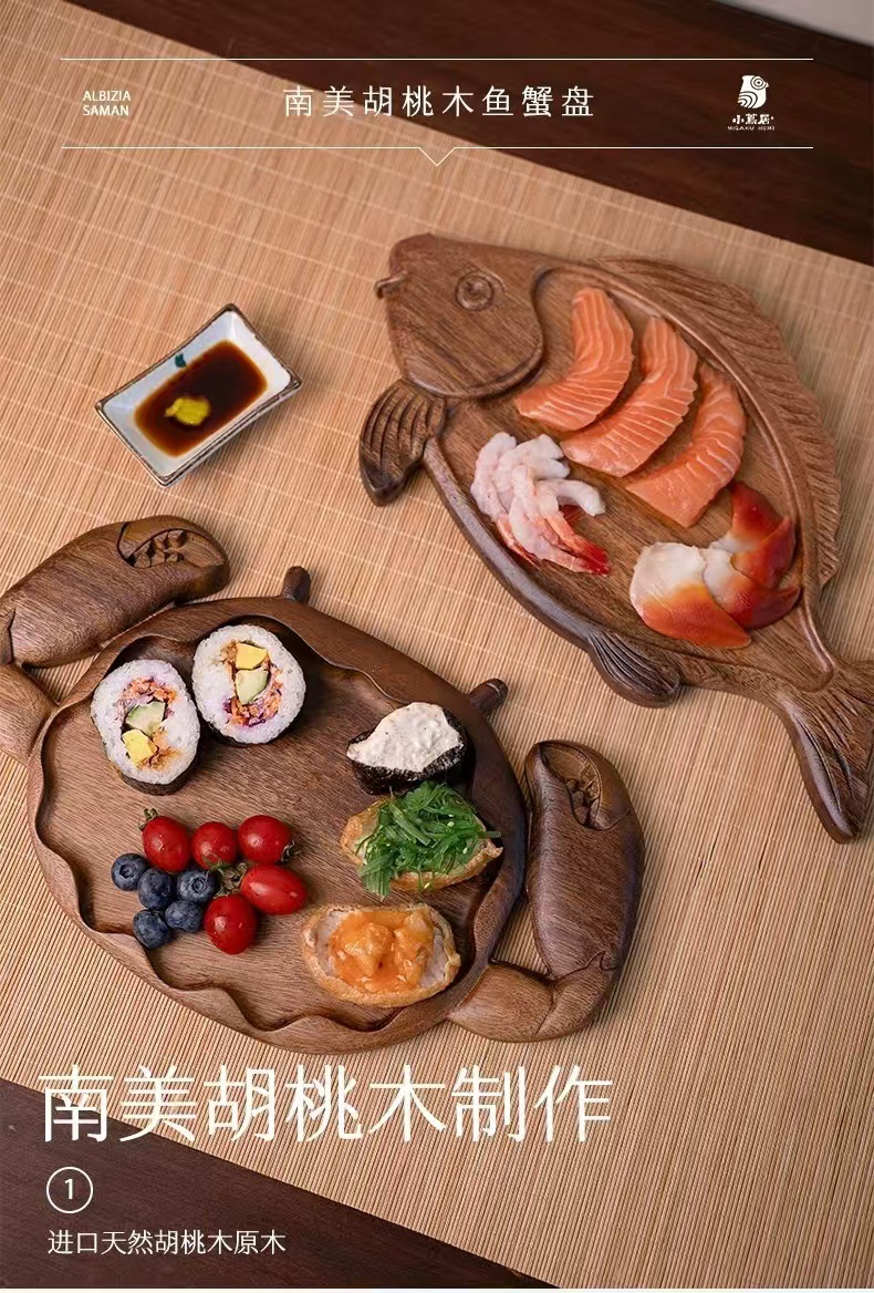 | Color | Bandeja de pescado de madera de nuez sudamericana, bandeja de cangrejo de madera de nuez Sudamericana |