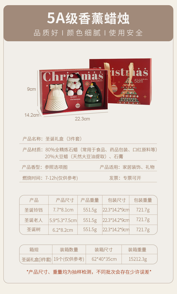 | Producto | Juego de caja de regalo de velas de aromaterapia de souvenirs navideños |