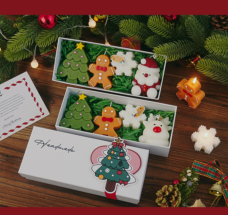 Caja de regalo con velas aromáticas navideñas, diseño artesanal y creativo, regalo ideal con fragancia festiva