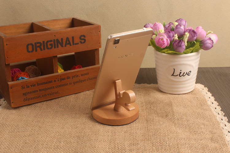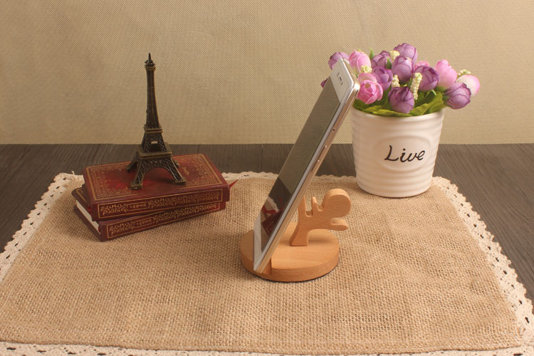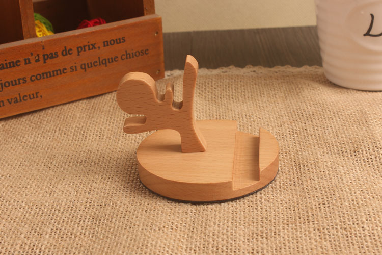 Multi-funcional de madera sólida teléfono móvil soporte perezoso creativo personaje de dibujos animados Kung Fu teléfono móvil de madera sólida