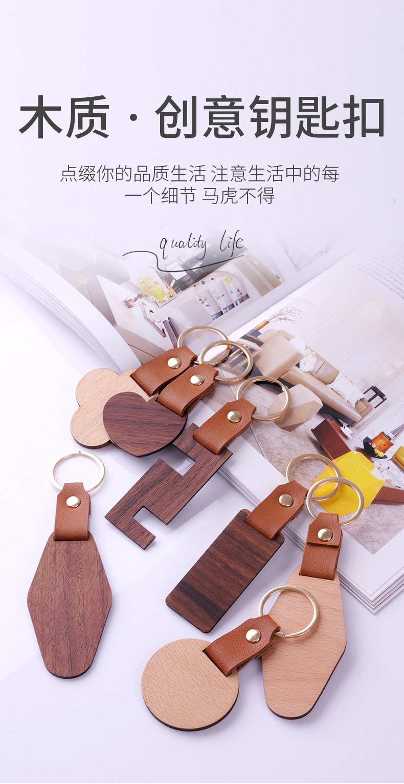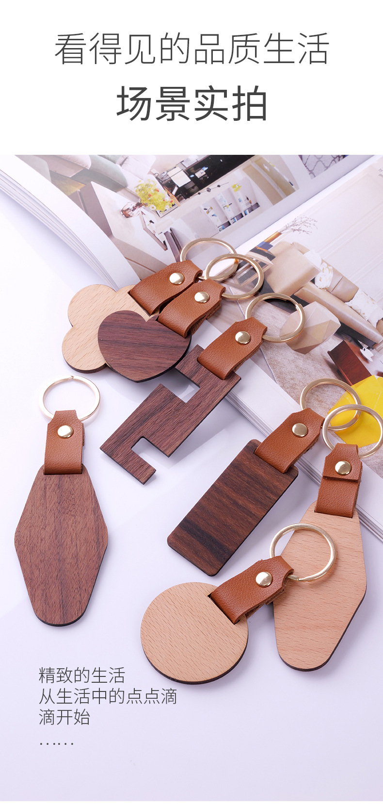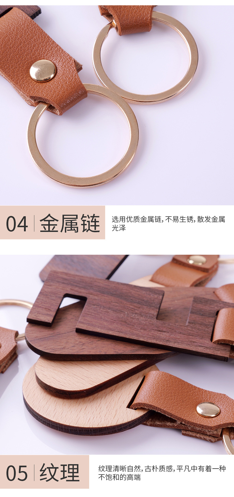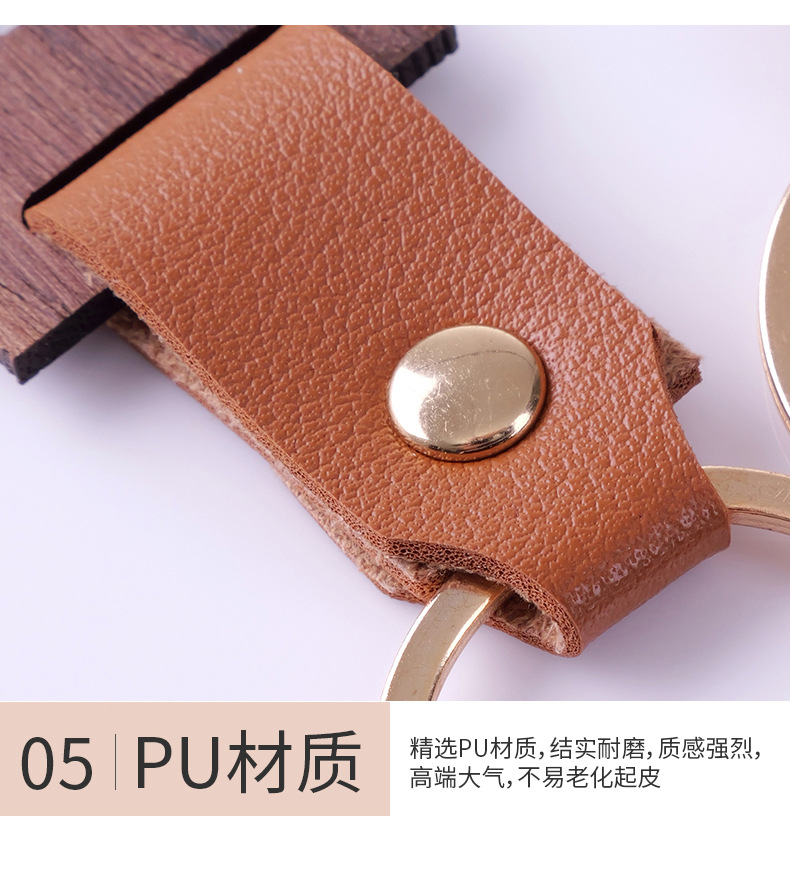 En stock B & B creativo de cuero llavero de madera pareja llavero creativo coche colgante