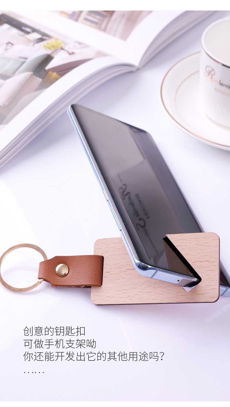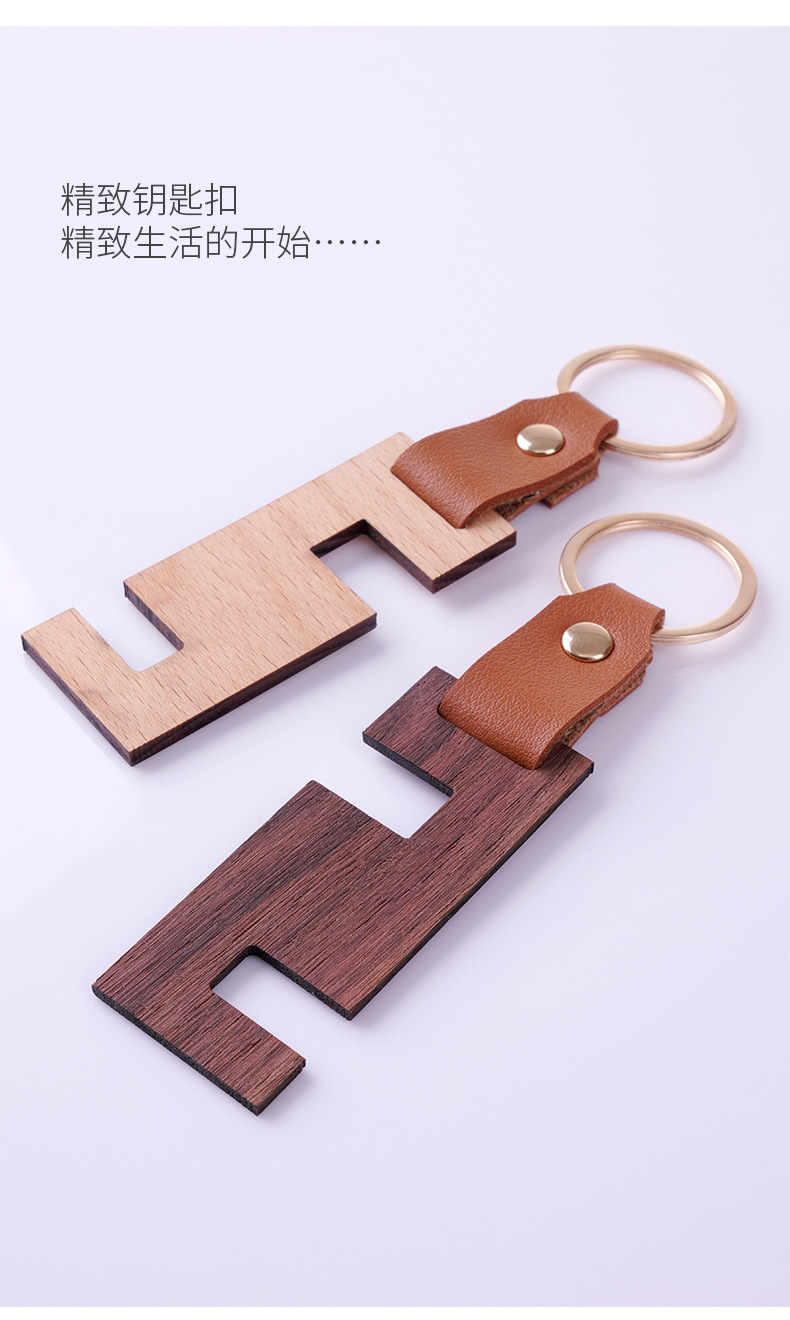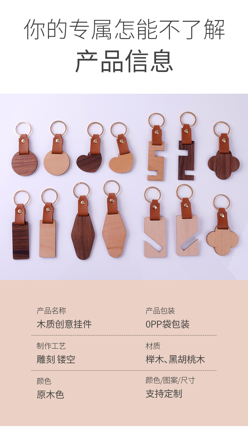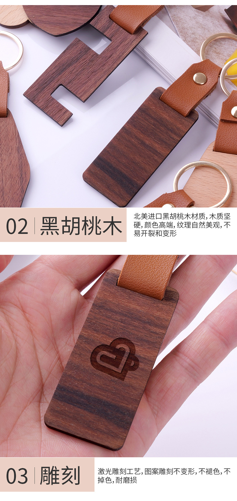 En stock B & B creativo de cuero llavero de madera pareja llavero creativo coche colgante