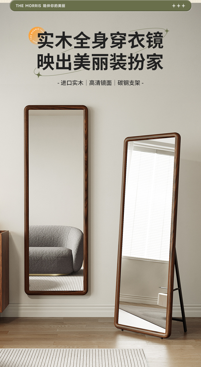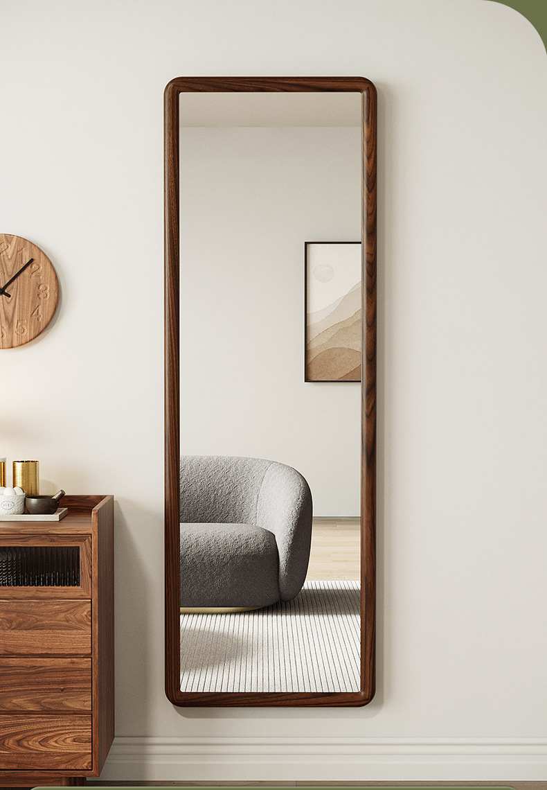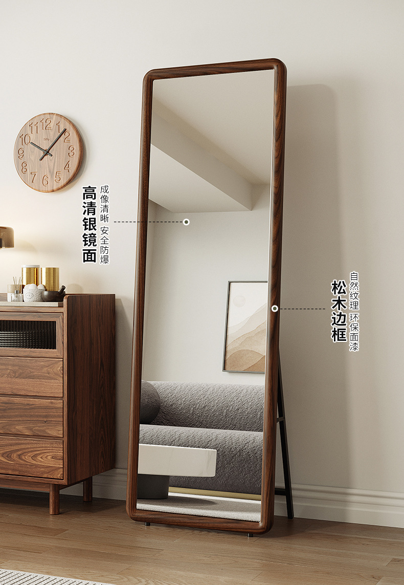 Espejo de cuerpo entero de madera maciza nórdica, espejo de piso para el hogar, espejo de dormitorio para niñas, espejo de cuerpo entero para colgar en la pared de la sala de estar, espejo de prueba de celebridades de Internet