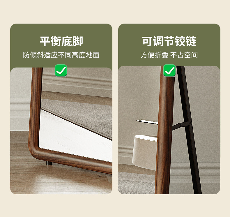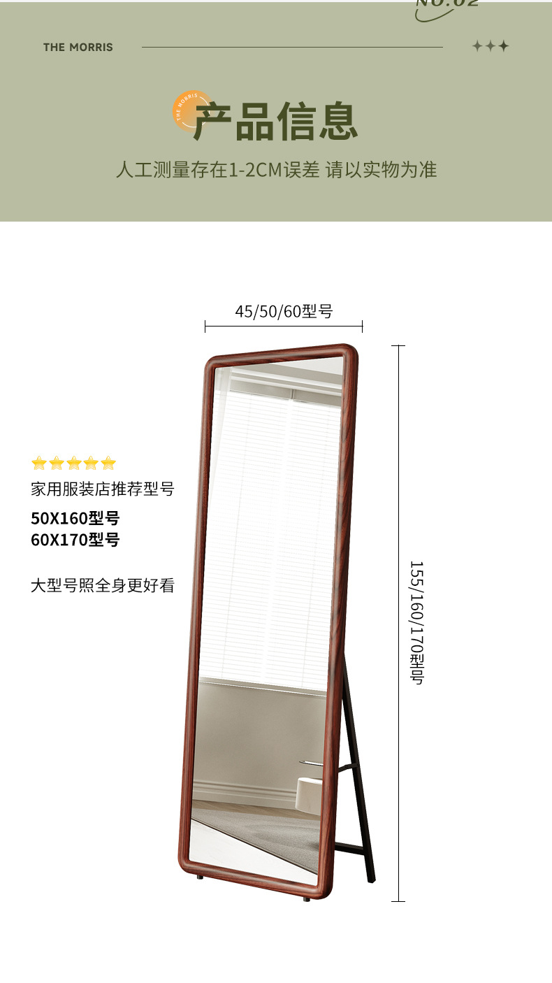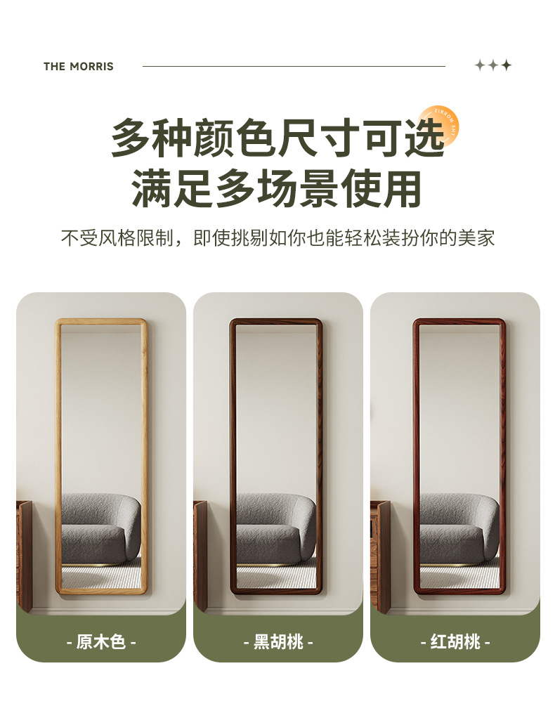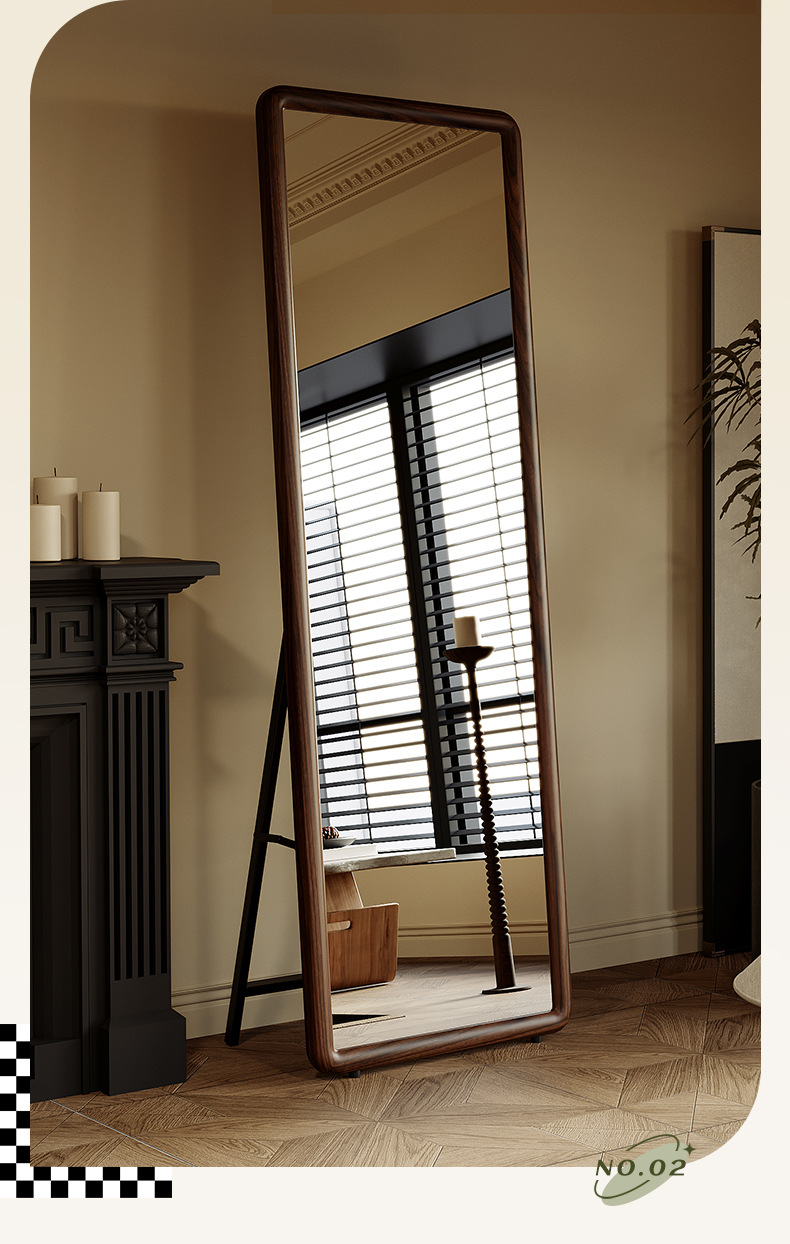Espejo de cuerpo entero de madera maciza nórdica, espejo de piso para el hogar, espejo de dormitorio para niñas, espejo de cuerpo entero para colgar en la pared de la sala de estar, espejo de prueba de celebridades de Internet
