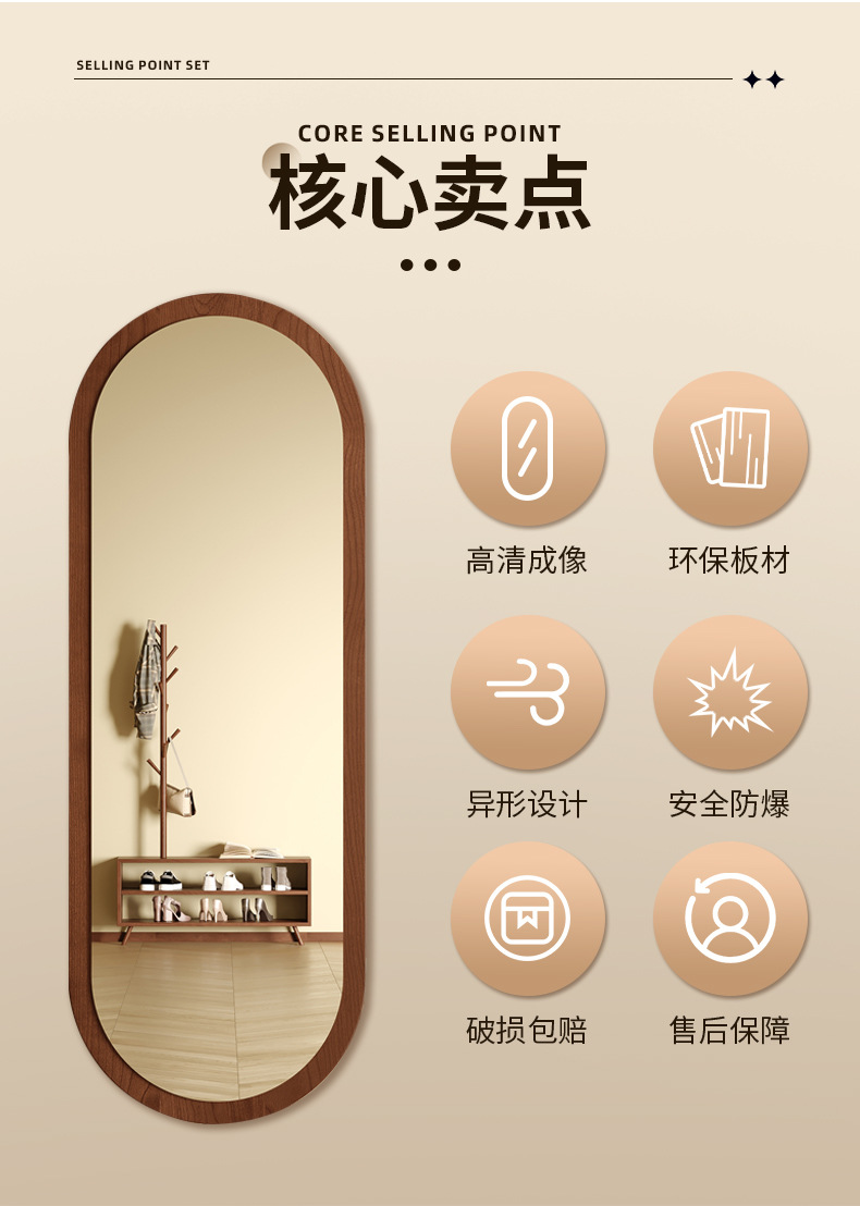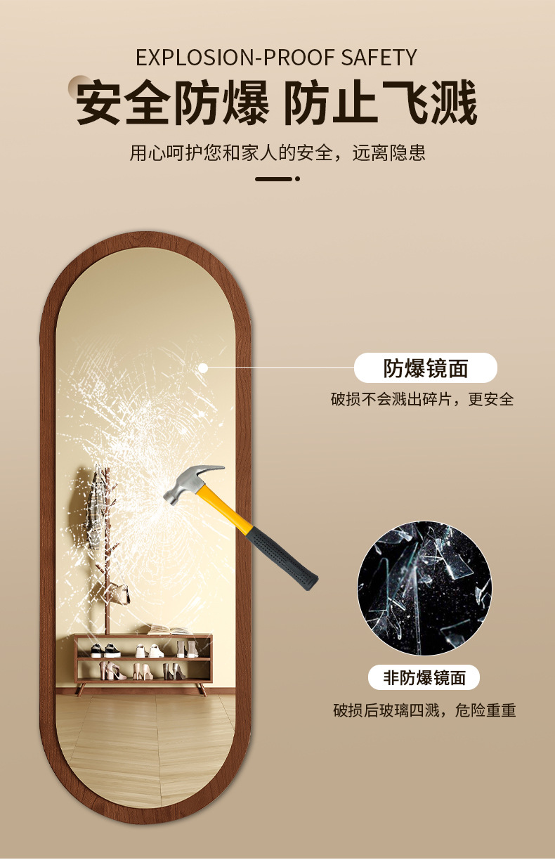 Espejo de pared de todo el cuerpo minimalista hogar dormitorio colgado de pared de pared de espejo de vestir, espejo de prueba de deformación, espejo de vestir, espejo grande
