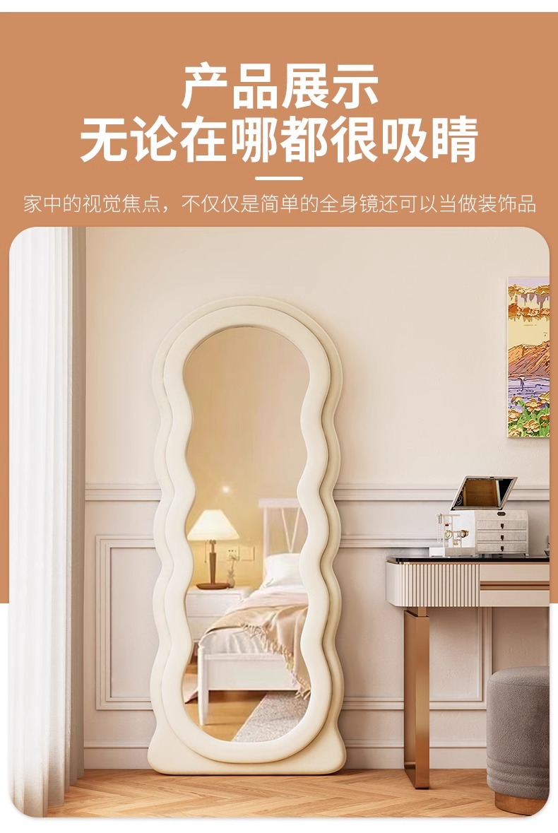 Red de Internet Espejo de cuerpo entero Espejo de piso doméstico Dormitorio de niña Espejo de cuerpo entero de lujo ligero