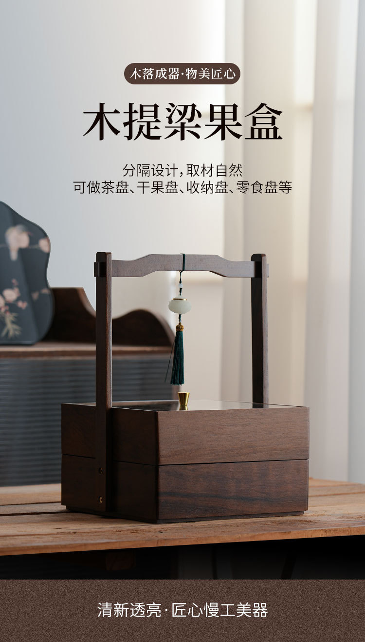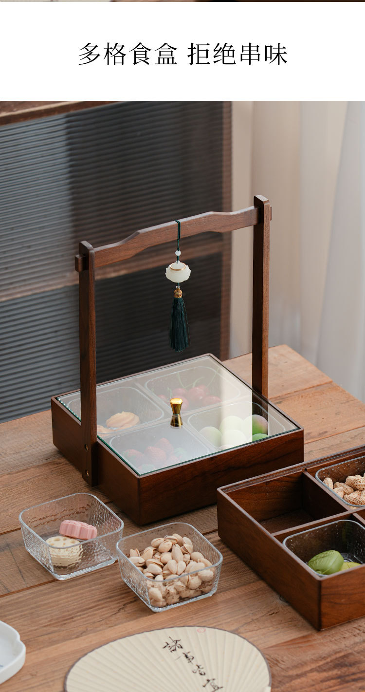 Nuevo estilo chino de nueces de madera seca bandeja de frutas casera sala de estar mesa de té semillas de melón dulces caja de nueces caja de almacenamiento de madera sólida