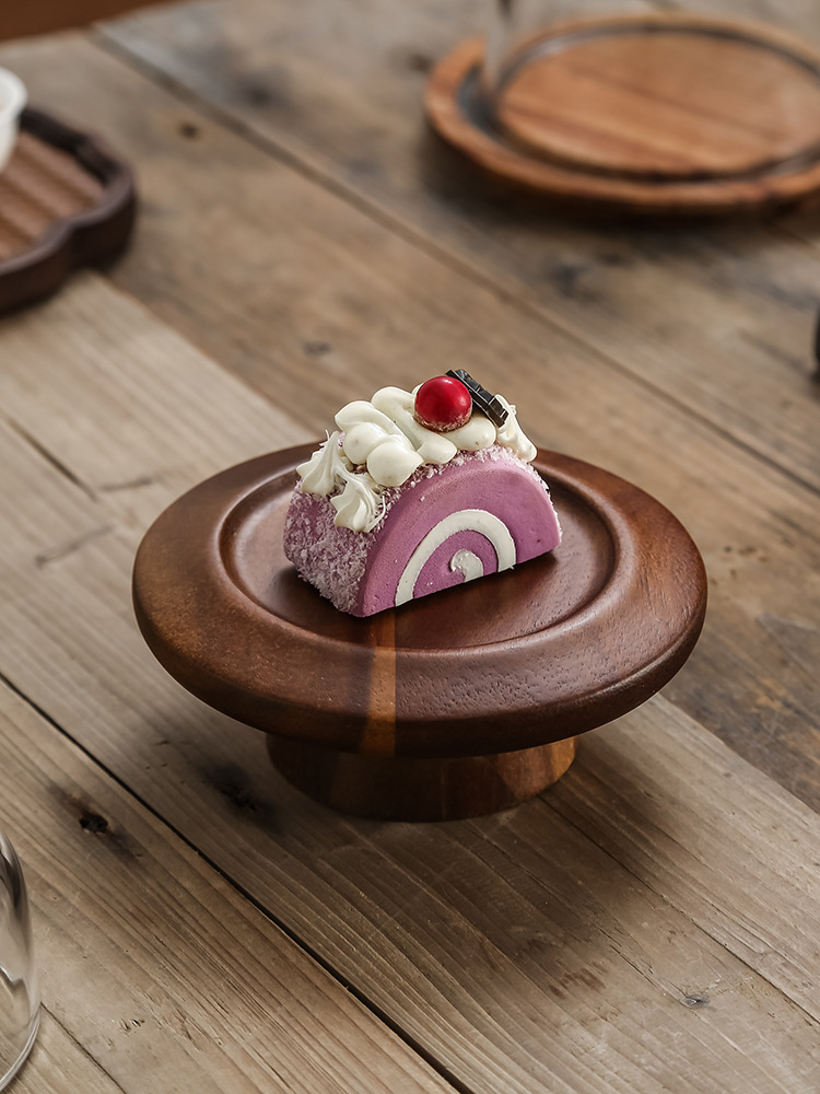 Acacia pastel de madera mini pie alto estante de exhibición de postres de postres de hotel de postres de restaurante de platos de distribución transfronteriza